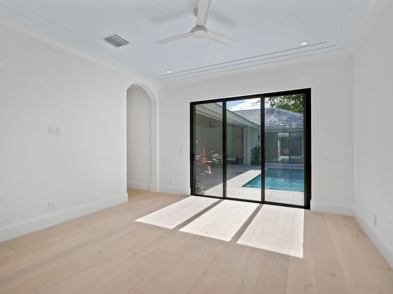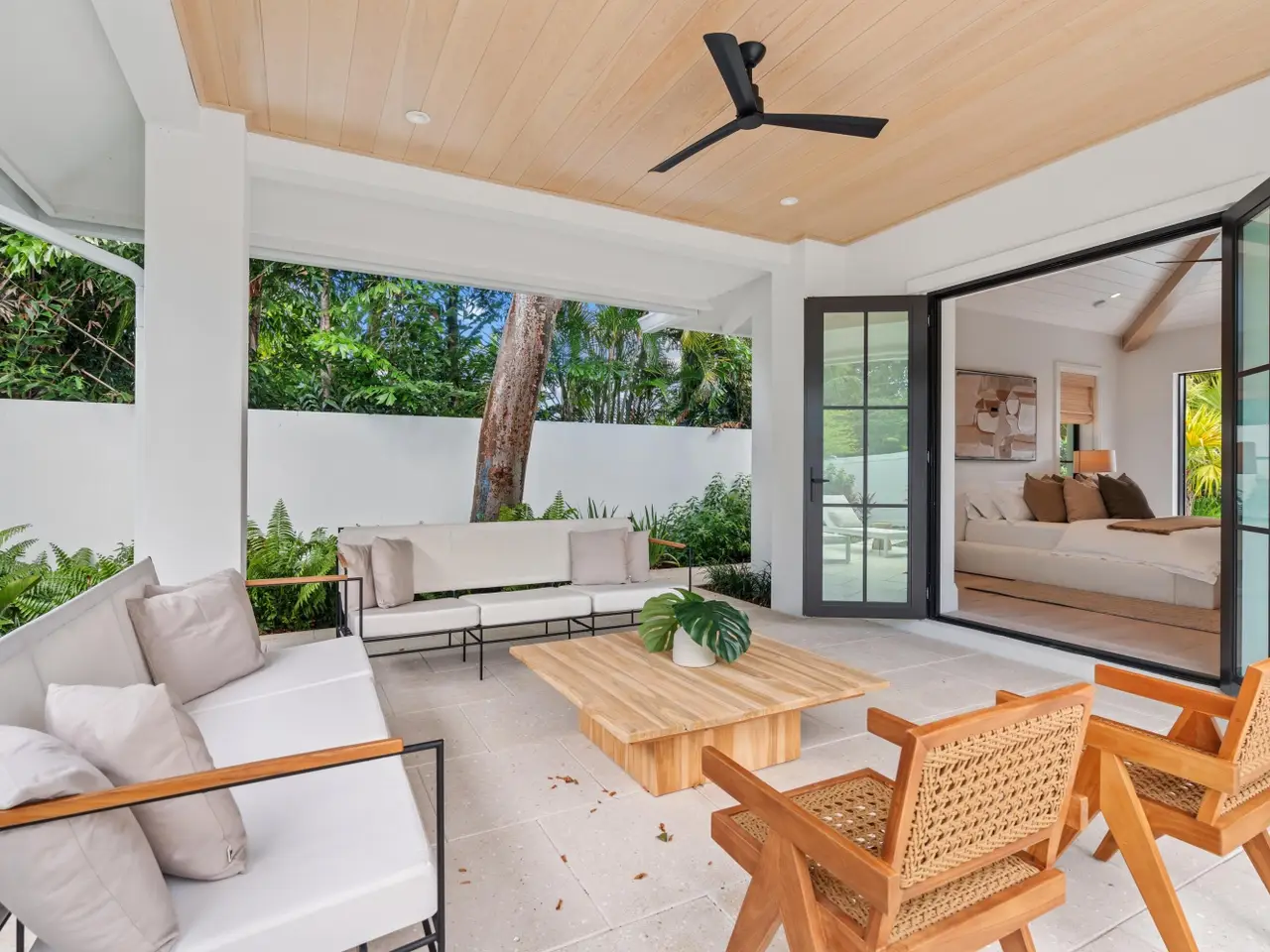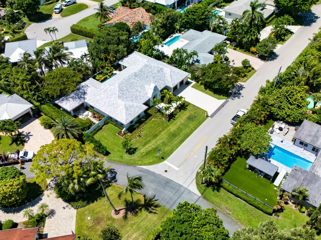 On a prime corner lot in Delray Beach's coveted Lake Ida enclave, this chic 2025-built contemporary residence offers an open floorplan great room, topped by a beamed vaulted ceiling, accessing the pool loggia and summer kitchen; four bedrooms with the primary bedroom opening to a private covered patio, a pocket office; and a cook-island kitchen with two-tone cabinetry, quartz counters and Thermador appliances.