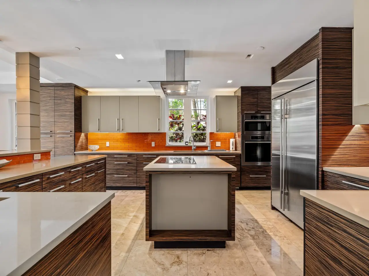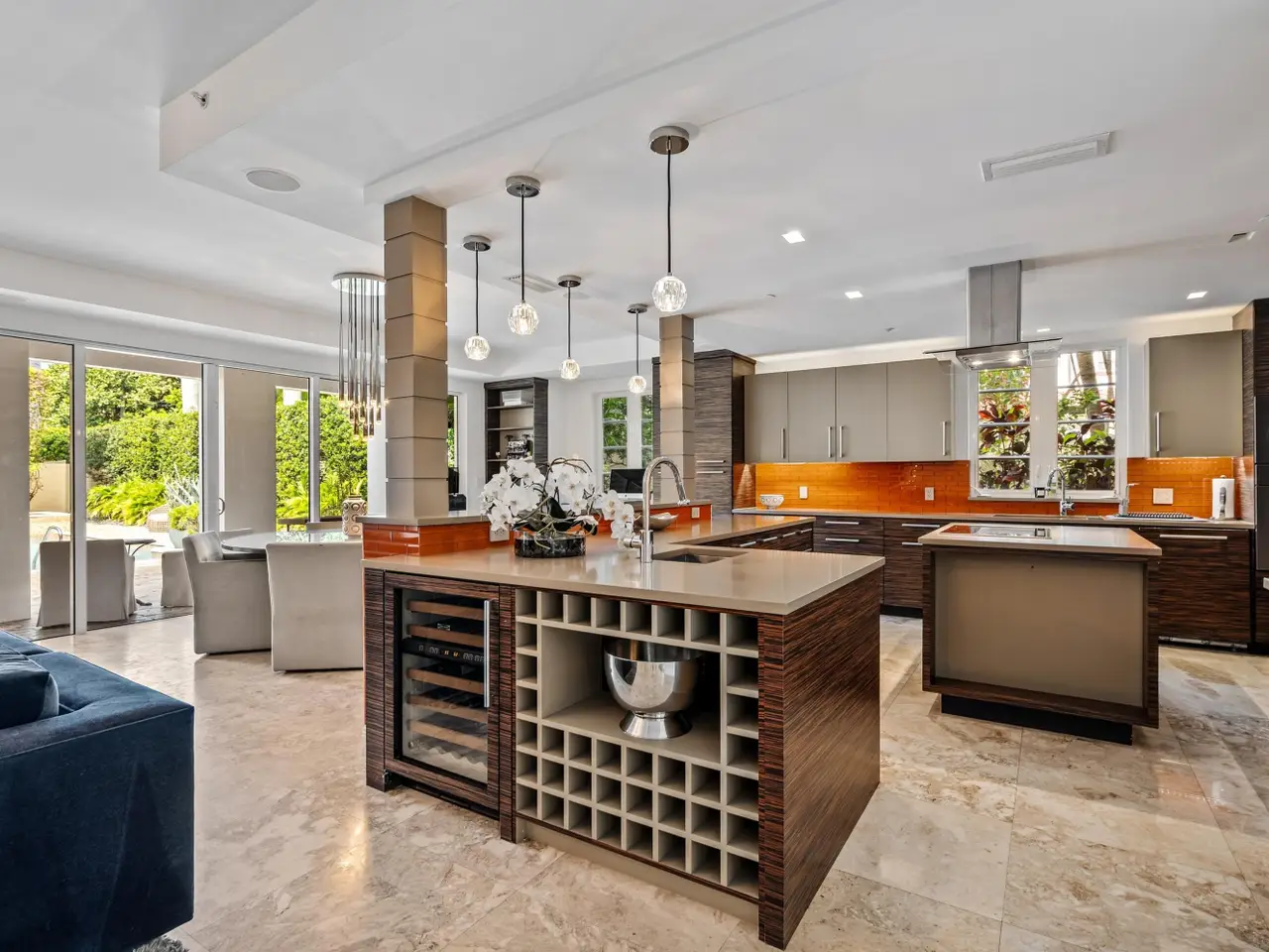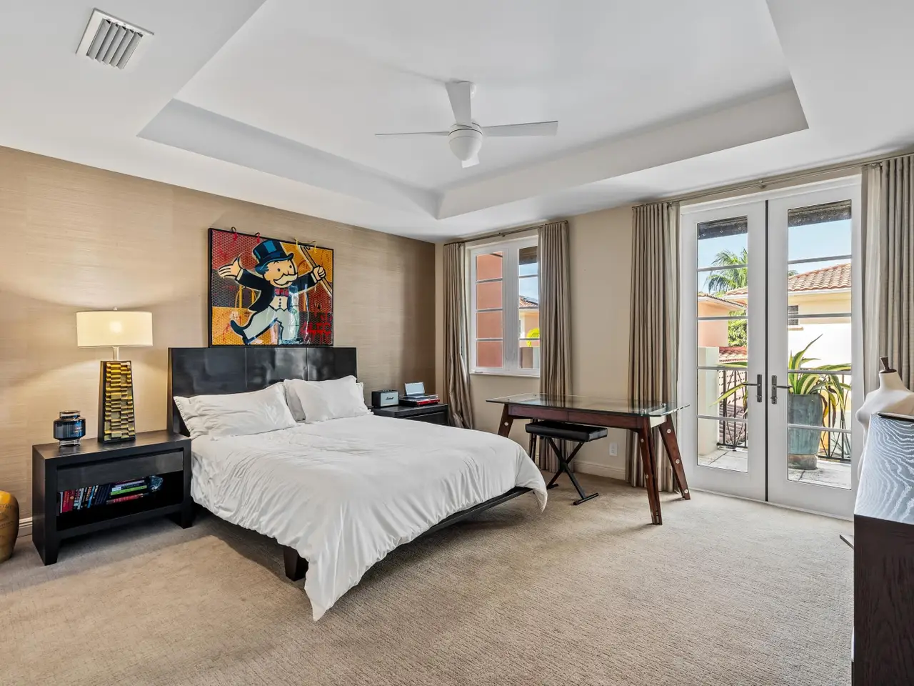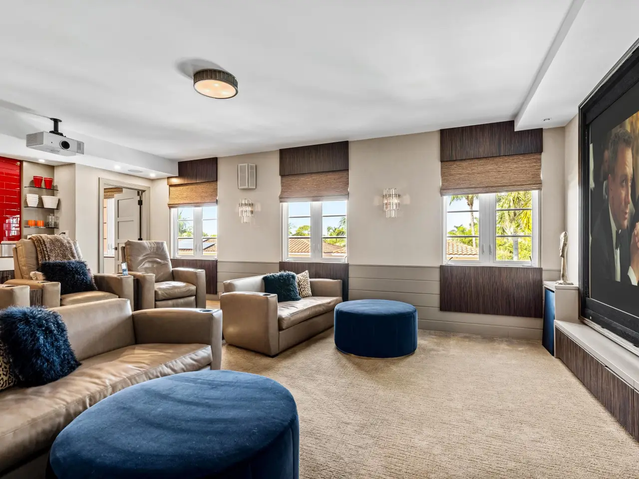 Palm Trail, Delray Beach, Florida. On tree-lined Palm Trail, across from the Intracoastal Waterway's shore, this is one of just six courtyard townhomes in an exclusive enclave offering resort-style living close to the beach, minutes from famous Atlantic Avenue's bistros and boutiques. Going beyond every expectation, this luxury townhome is an exquisite showplace by Leighton Design Group. Casual elegance is expressed with sophisticated modern ease in select finishes and bespoke elements that come together in a calm neutral palette with a textural look and touches of subtle glamour. Creating an estate-like environment in the Mediterranean-inspired architectural design, this light-filled end-position townhome opens to loggias around the private, tropically landscaped courtyard.