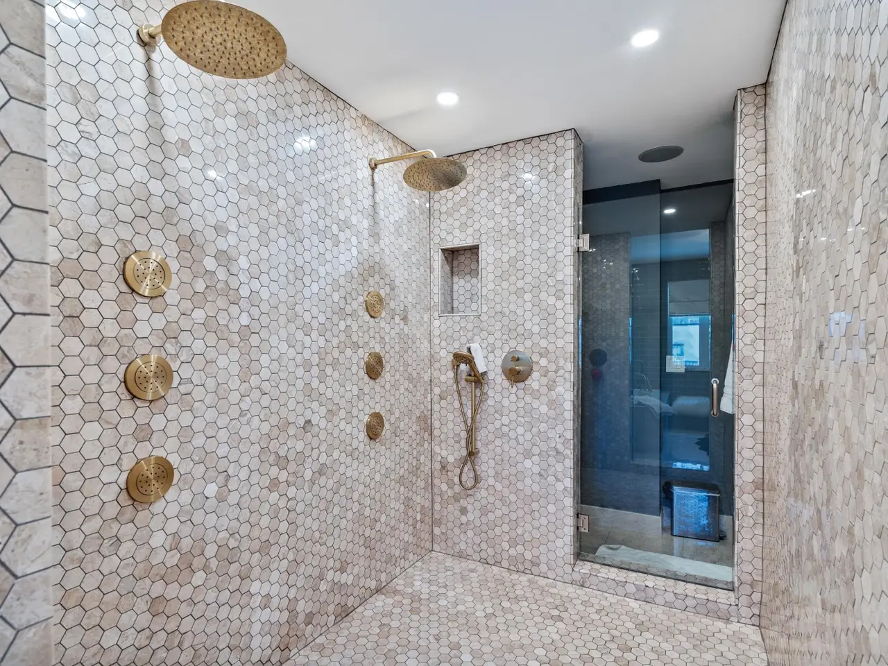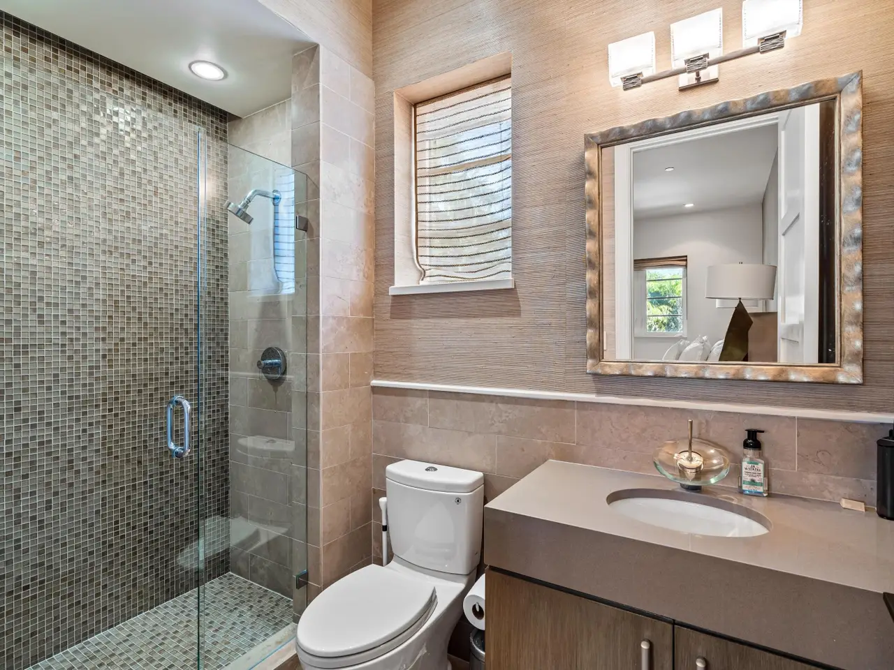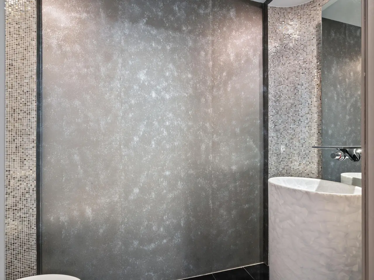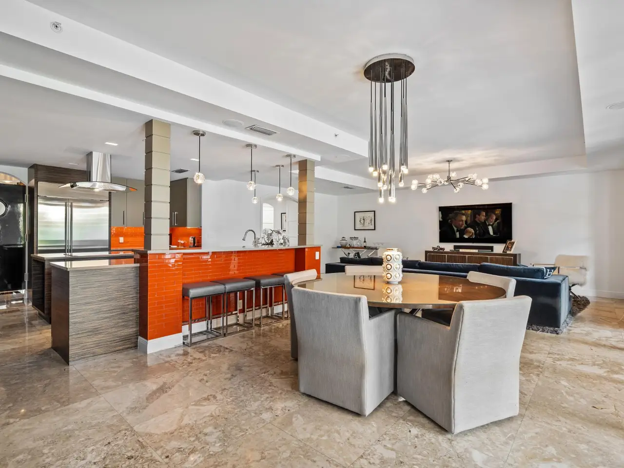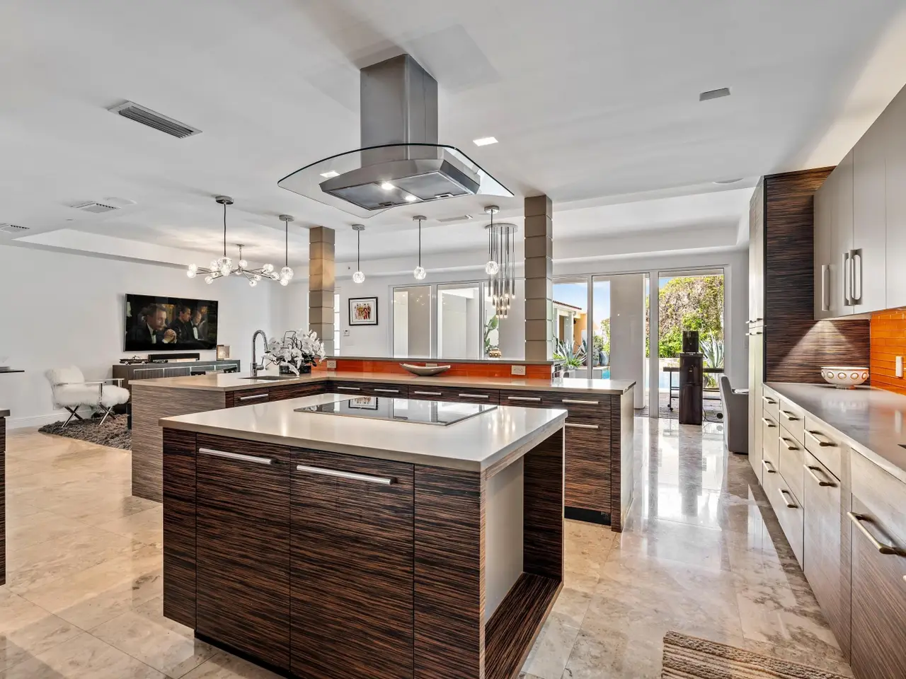 Palm Trail, Delray Beach, Florida. On tree-lined Palm Trail, across from the Intracoastal Waterway's shore, this is one of just six courtyard townhomes in an exclusive enclave offering resort-style living close to the beach, minutes from famous Atlantic Avenue's bistros and boutiques. Going beyond every expectation, this luxury townhome is an exquisite showplace by Leighton Design Group. Casual elegance is expressed with sophisticated modern ease in select finishes and bespoke elements that come together in a calm neutral palette with a textural look and touches of subtle glamour. Creating an estate-like environment in the Mediterranean-inspired architectural design, this light-filled end-position townhome opens to loggias around the private, tropically landscaped courtyard.