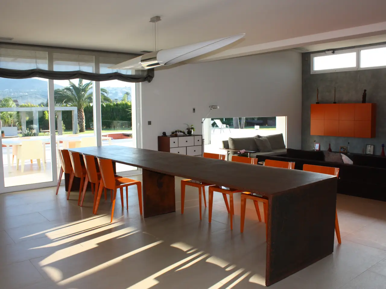 Stunning modern design villa located on a huge plot of 10,000 m2 in the prestigious area of Tosalet, Denia. This impeccable villa built in 2006 was designed incorporating modern architectural features with local traditional materials, such as coughing and slate masonry, mixed with large panoramic windows, ensuring the property a great lighting and offers magnificent views over the large green gardens. The house itself consists of three bedrooms, four bathrooms, a large semi-open floor and a magnificently equipped kitchen with living/dining room, many covered and uncovered terraces and a huge swimming pool. Other extras of the property include a children's play area, a modern roundabout, a huge games room, a separate laundry area, garage with automatic doors, ethnic design features such as a huge glass lobby and a charming wooden cottage for guests. An impressive work of modern art that should not be lost.
