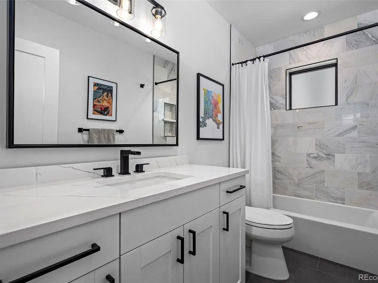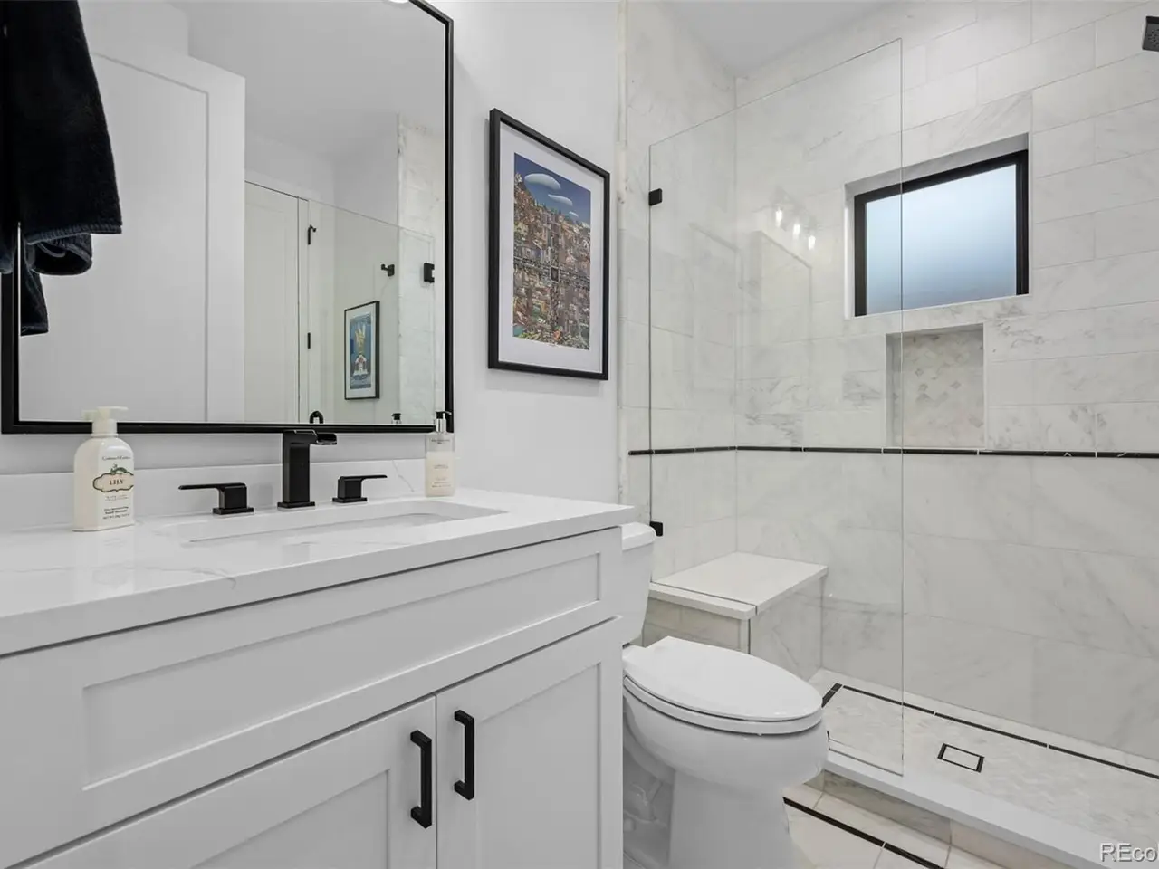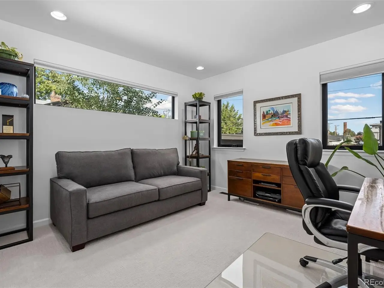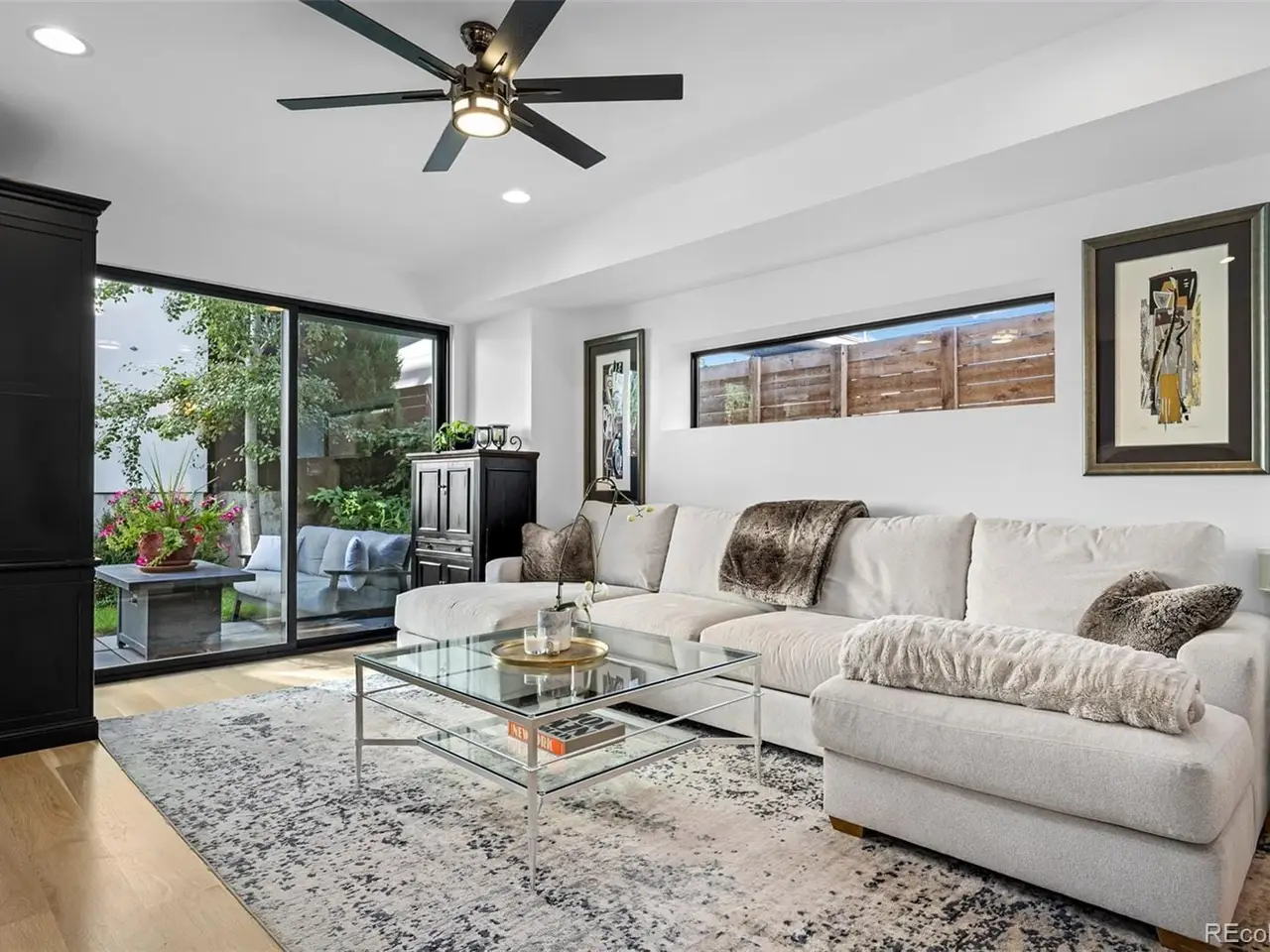Tucked into one of Denvers most coveted neighborhoods, this home is a rare retreat that blends privacy, sophistication, and accessibility. Built in 2020, this five-bedroom, four-bathroom home spans more than 3,200 square feet of refined living space, offering both tranquility and the vibrancy of LoHi just beyond the front door. The main floor showcases an ideal layout with effortless flow between living, dining, and entertaining spaces. At its center, a chefs kitchen boasts an oversized quartz island, professional-grade appliances, and designer lighting. The living room, anchored by a sleek gas fireplace, opens through sliding glass doors to a lush backyard with mature trees, water feature, and stone patio perfect for quiet evenings or lively gatherings. A main-level bedroom or office with full bath provides flexibility. Upstairs, the primary suite is a private sanctuary, complete with vaulted ceilings, a sunlit terrace amongst the trees, and spa-inspired bath featuring dual vanities, soaking tub, and walk-in shower. A boutique-style custom closet elevates the retreat, while two additional bedrooms, a full bath, and laundry complete the upper level. The expansive rooftop deck redefines outdoor entertaining with a kitchenette, six-burner gas grill, hot tub, and over 800 sq ft of space. Dine under custom shade sails, watch the city lights from the lounge and fire pit, or unwind in the hot tub with sweeping Denver skyline views. The finished basement extends the lifestyle experience with a theater, rec room, full bathroom, and bedroom currently curated as a fitness space. A detached two-car garage provides storage and convenience. The roof of the garage also features a 6.2kW solar system that is fully owned and saves drastically on energy costs. Balancing serenity with city living, this Highlands residence is a lush, private oasis just minutes from Denver's acclaimed dining, shopping, and nightlife.