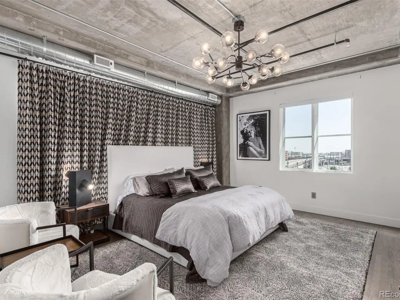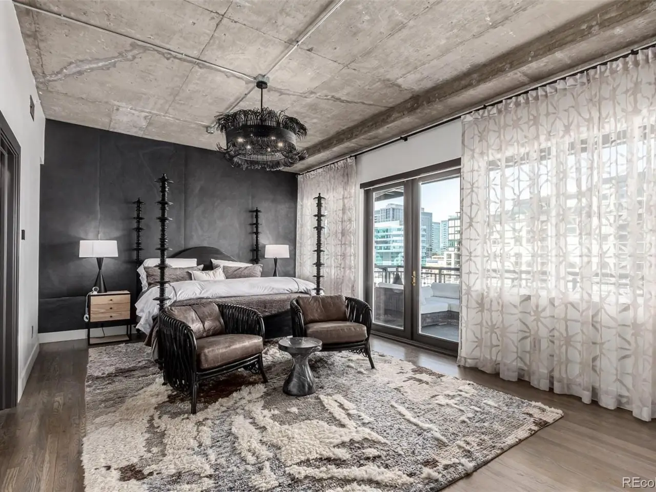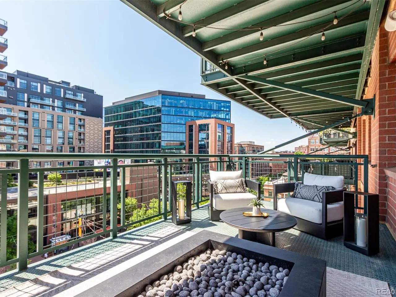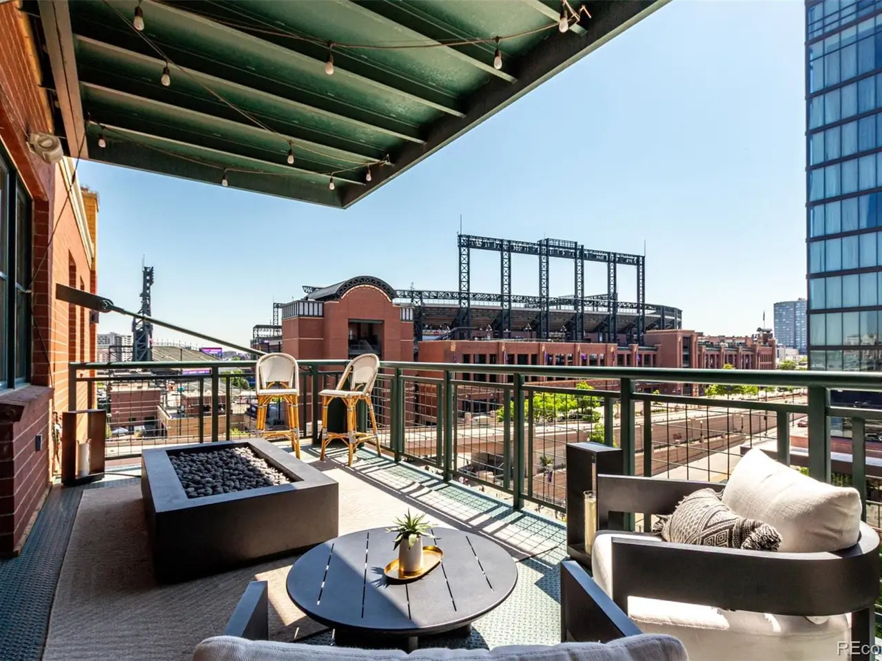 Emerge from the newly upgraded elevator into a private, light-filled entry with views of McGregor Square. This welcoming space includes custom cabinetry, a Murphy bed for guests, a large metal barn door for privacy, and chic dcor with designer lighting and furnishings. Just beyond, a stylish open office features a tufted chair, desk, and whimsical stool under a custom chandelier, with a nearby guest bath showcasing designer tile, wood and stone vanity, and Delta fixtures. The chefs kitchen impresses with a 7' x 7' butcher block island, aged black cabinetry, Sharp drawer microwave, two beverage fridges, and premium Thermador appliances. Burnt red subway tile, Tan Brown granite counters, glass display cabinets, and elegant lighting create a warm, functional space. Four hammered iron bar stools complete the look. Enjoy three balconies with stunning views. The 210 sq ft covered southeast balcony features a gas firepit, water spigot, and Restoration Hardware furniture. The northeast balcony is perfect for morning coffee or fireworks over Coors Field, while the northwest balcony, private to the primary suite, offers sunset and mountain glimpses. The dining area includes a charcoal wood table for eight, three custom chandeliers, and a full-height curio. The spacious living room offers a large L-shaped sofa, leather chairs, smart TV, and crystal chandelier. The guest bedroom features blackout drapes, king bed, smart TV, and adjacent steam bath. The primary suite includes a canopy bed, sitting area, walk-in closet, blackout shades, private balcony, and spa-like bath with Euro shower, double vanity, and in-suite laundry. Includes 2 tandem garage spaces, oversized storage, all in the heart of LoDonext to Coors Field, across from McGregor Square, and just 2 blocks to Union Station and all restaurants, culture and sporting venues that Downtown has to offer. AVAILABLE FURNISHED - MOVE RIGHT IN!