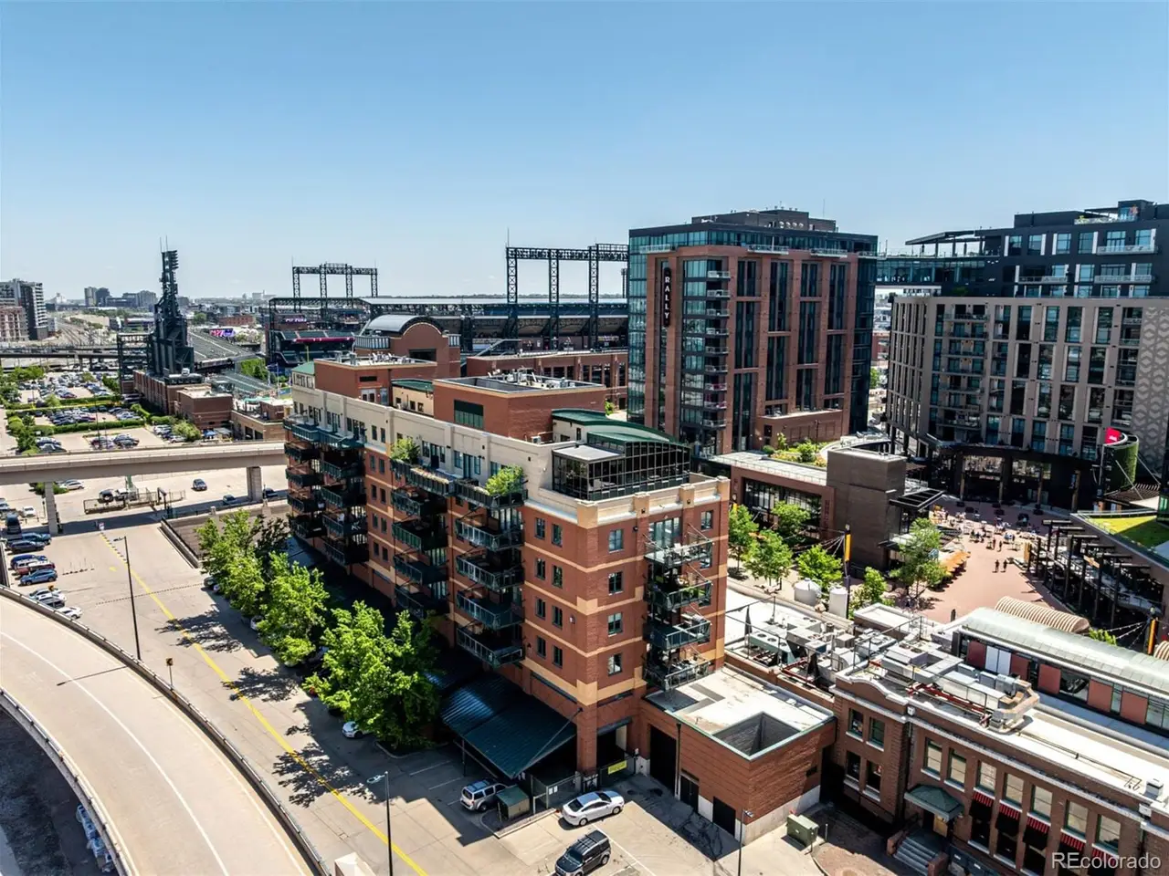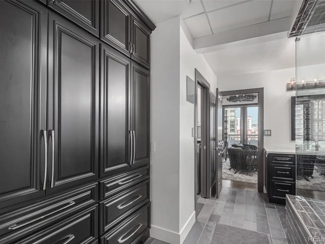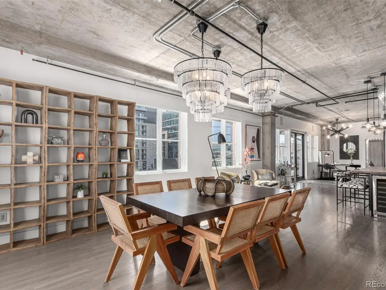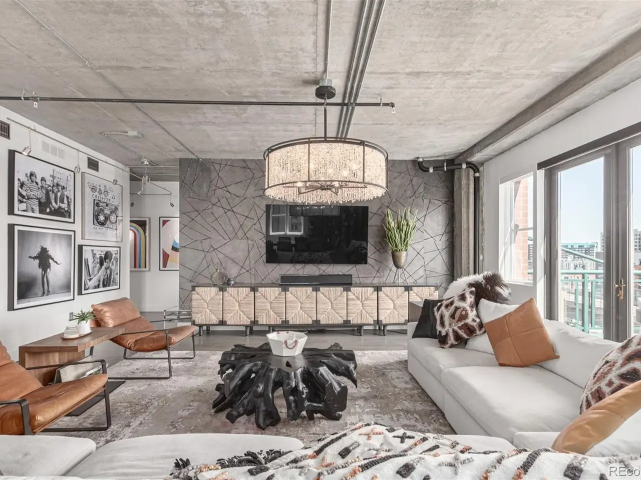Emerge from the newly upgraded elevator into a private, light-filled entry with views of McGregor Square. This welcoming space includes custom cabinetry, a Murphy bed for guests, a large metal barn door for privacy, and chic dcor with designer lighting and furnishings. Just beyond, a stylish open office features a tufted chair, desk, and whimsical stool under a custom chandelier, with a nearby guest bath showcasing designer tile, wood and stone vanity, and Delta fixtures. The chefs kitchen impresses with a 7' x 7' butcher block island, aged black cabinetry, Sharp drawer microwave, two beverage fridges, and premium Thermador appliances. Burnt red subway tile, Tan Brown granite counters, glass display cabinets, and elegant lighting create a warm, functional space. Four hammered iron bar stools complete the look. Enjoy three balconies with stunning views. The 210 sq ft covered southeast balcony features a gas firepit, water spigot, and Restoration Hardware furniture. The northeast balcony is perfect for morning coffee or fireworks over Coors Field, while the northwest balcony, private to the primary suite, offers sunset and mountain glimpses. The dining area includes a charcoal wood table for eight, three custom chandeliers, and a full-height curio. The spacious living room offers a large L-shaped sofa, leather chairs, smart TV, and crystal chandelier. The guest bedroom features blackout drapes, king bed, smart TV, and adjacent steam bath. The primary suite includes a canopy bed, sitting area, walk-in closet, blackout shades, private balcony, and spa-like bath with Euro shower, double vanity, and in-suite laundry. Includes 2 tandem garage spaces, oversized storage, all in the heart of LoDonext to Coors Field, across from McGregor Square, and just 2 blocks to Union Station and all restaurants, culture and sporting venues that Downtown has to offer. AVAILABLE FURNISHED - MOVE RIGHT IN!