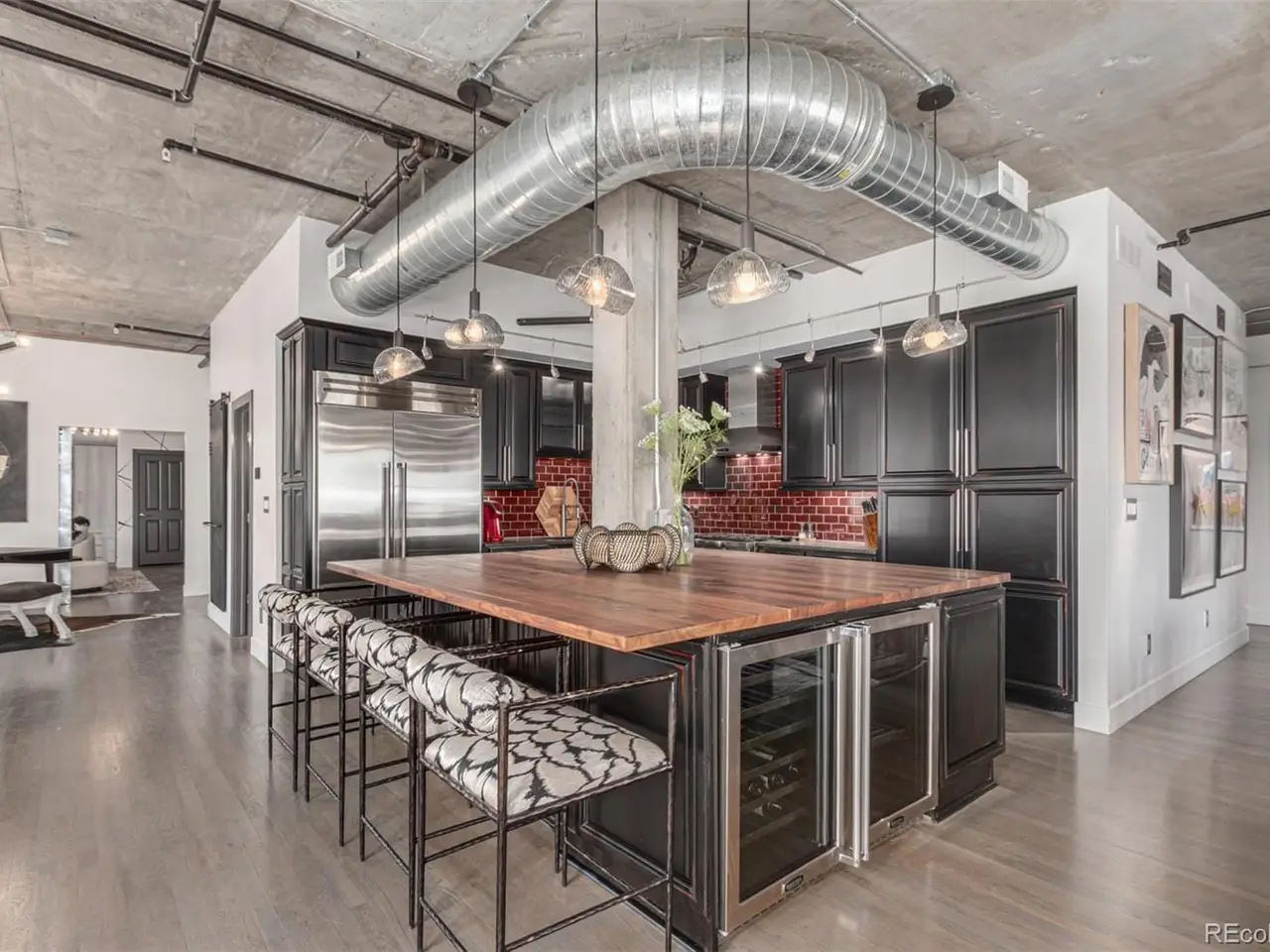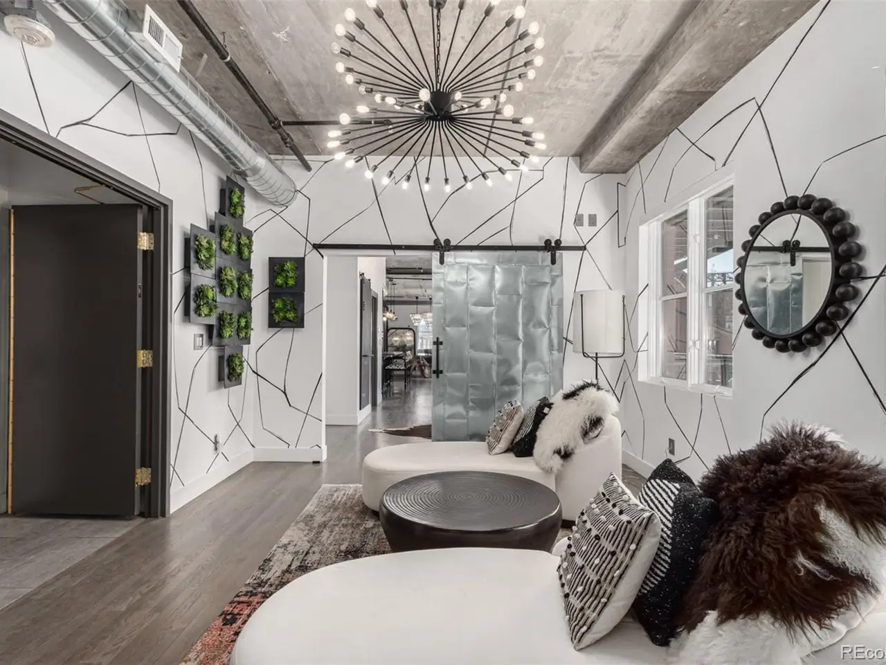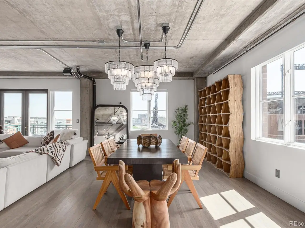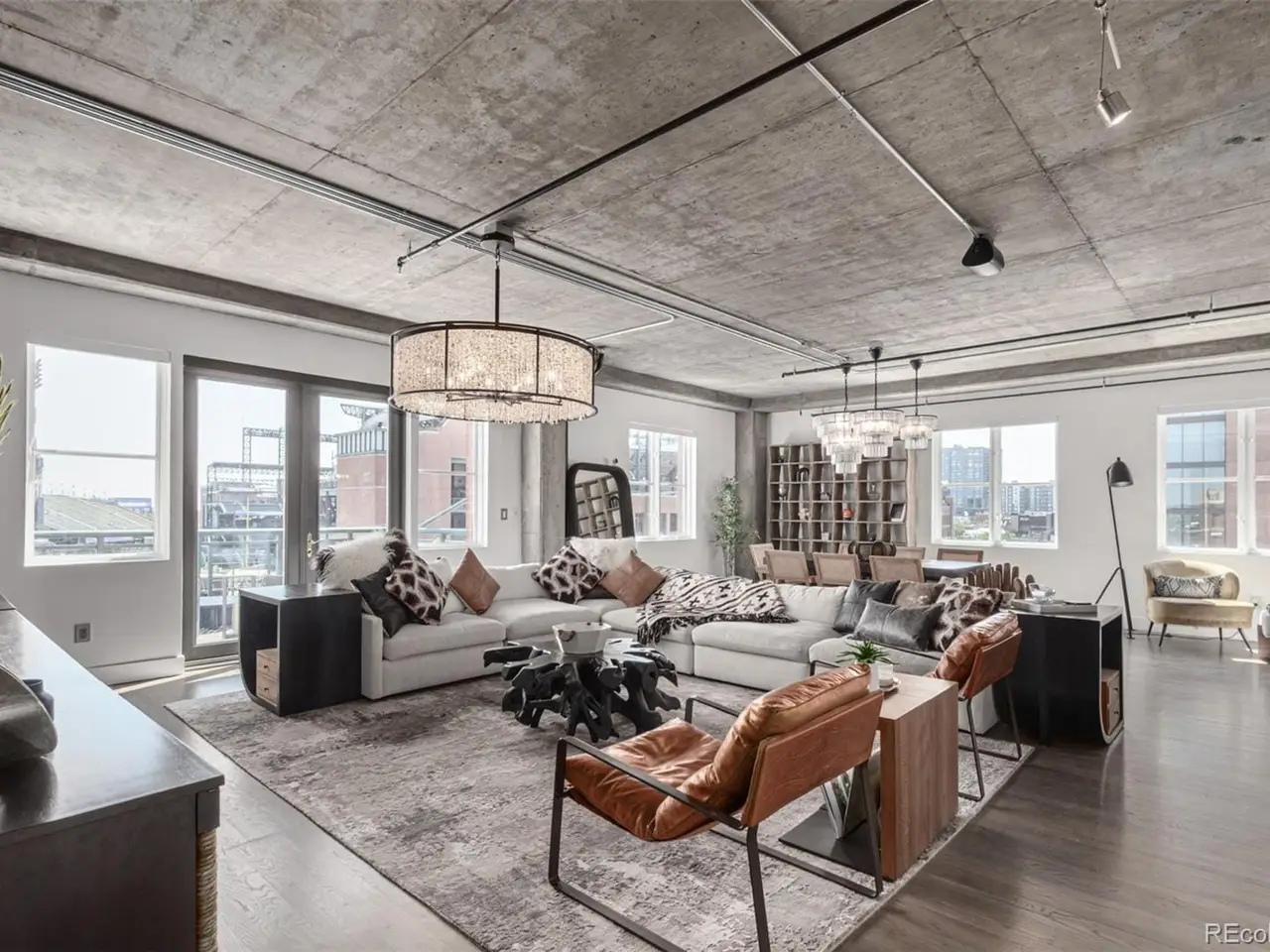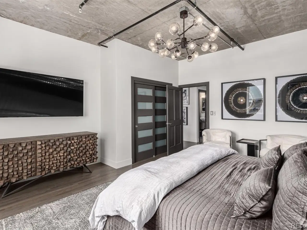 Emerge from the newly upgraded elevator into a private, light-filled entry with views of McGregor Square. This welcoming space includes custom cabinetry, a Murphy bed for guests, a large metal barn door for privacy, and chic dcor with designer lighting and furnishings. Just beyond, a stylish open office features a tufted chair, desk, and whimsical stool under a custom chandelier, with a nearby guest bath showcasing designer tile, wood and stone vanity, and Delta fixtures. The chefs kitchen impresses with a 7' x 7' butcher block island, aged black cabinetry, Sharp drawer microwave, two beverage fridges, and premium Thermador appliances. Burnt red subway tile, Tan Brown granite counters, glass display cabinets, and elegant lighting create a warm, functional space. Four hammered iron bar stools complete the look. Enjoy three balconies with stunning views. The 210 sq ft covered southeast balcony features a gas firepit, water spigot, and Restoration Hardware furniture. The northeast balcony is perfect for morning coffee or fireworks over Coors Field, while the northwest balcony, private to the primary suite, offers sunset and mountain glimpses. The dining area includes a charcoal wood table for eight, three custom chandeliers, and a full-height curio. The spacious living room offers a large L-shaped sofa, leather chairs, smart TV, and crystal chandelier. The guest bedroom features blackout drapes, king bed, smart TV, and adjacent steam bath. The primary suite includes a canopy bed, sitting area, walk-in closet, blackout shades, private balcony, and spa-like bath with Euro shower, double vanity, and in-suite laundry. Includes 2 tandem garage spaces, oversized storage, all in the heart of LoDonext to Coors Field, across from McGregor Square, and just 2 blocks to Union Station and all restaurants, culture and sporting venues that Downtown has to offer. AVAILABLE FURNISHED - MOVE RIGHT IN!