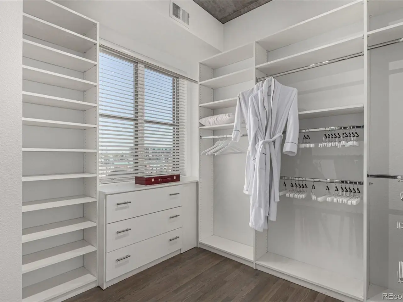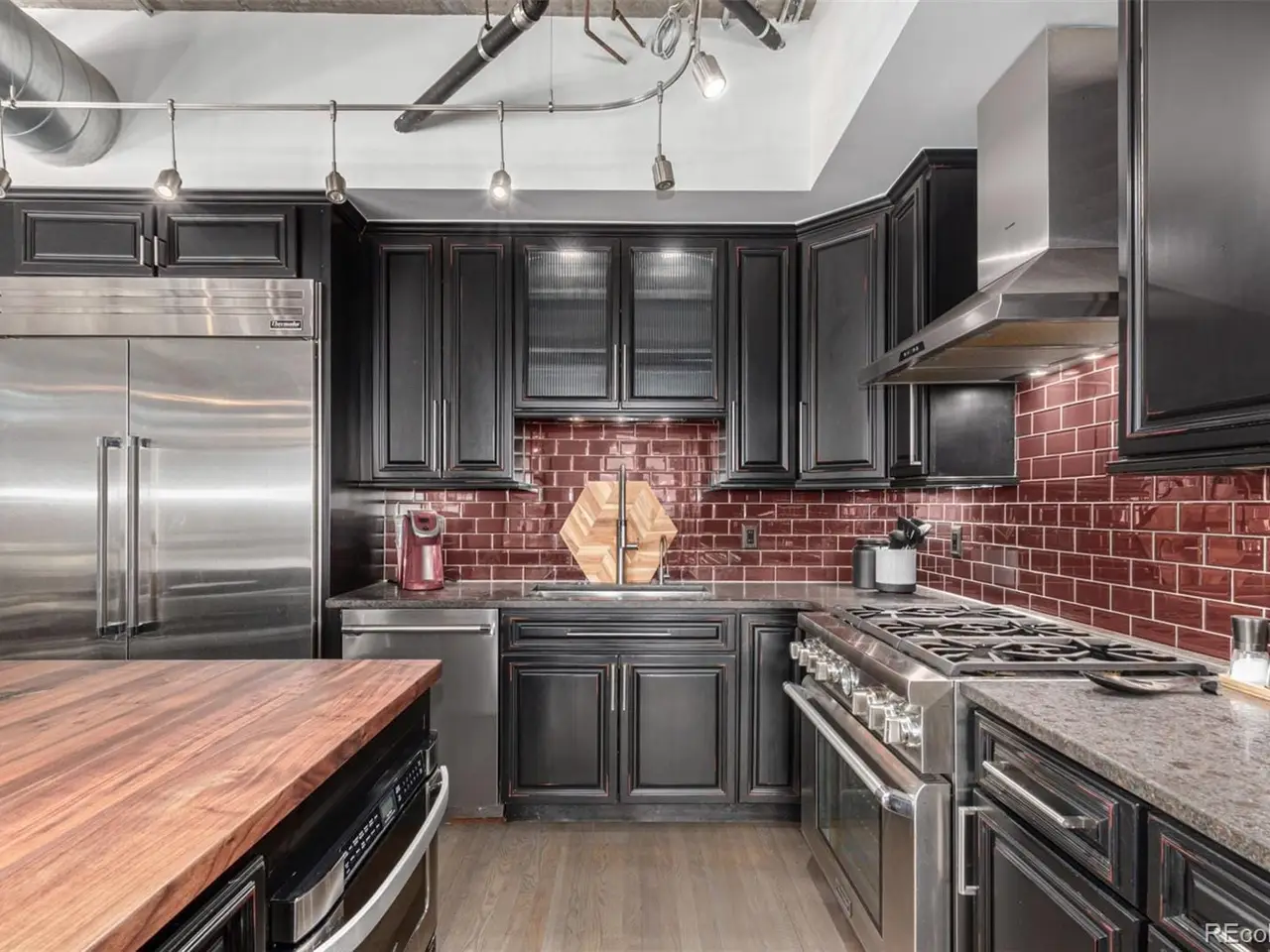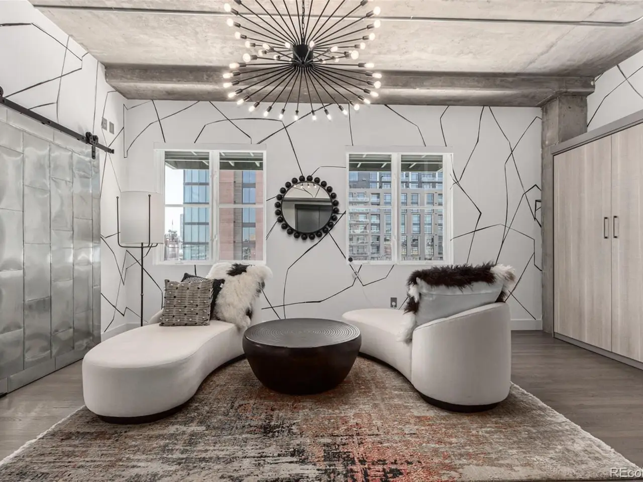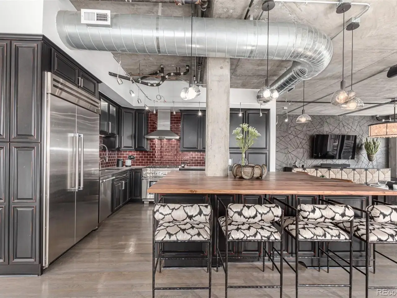 Emerge from the newly upgraded elevator into a private, light-filled entry with views of McGregor Square. This welcoming space includes custom cabinetry, a Murphy bed for guests, a large metal barn door for privacy, and chic dcor with designer lighting and furnishings. Just beyond, a stylish open office features a tufted chair, desk, and whimsical stool under a custom chandelier, with a nearby guest bath showcasing designer tile, wood and stone vanity, and Delta fixtures. The chefs kitchen impresses with a 7' x 7' butcher block island, aged black cabinetry, Sharp drawer microwave, two beverage fridges, and premium Thermador appliances. Burnt red subway tile, Tan Brown granite counters, glass display cabinets, and elegant lighting create a warm, functional space. Four hammered iron bar stools complete the look. Enjoy three balconies with stunning views. The 210 sq ft covered southeast balcony features a gas firepit, water spigot, and Restoration Hardware furniture. The northeast balcony is perfect for morning coffee or fireworks over Coors Field, while the northwest balcony, private to the primary suite, offers sunset and mountain glimpses. The dining area includes a charcoal wood table for eight, three custom chandeliers, and a full-height curio. The spacious living room offers a large L-shaped sofa, leather chairs, smart TV, and crystal chandelier. The guest bedroom features blackout drapes, king bed, smart TV, and adjacent steam bath. The primary suite includes a canopy bed, sitting area, walk-in closet, blackout shades, private balcony, and spa-like bath with Euro shower, double vanity, and in-suite laundry. Includes 2 tandem garage spaces, oversized storage, all in the heart of LoDonext to Coors Field, across from McGregor Square, and just 2 blocks to Union Station and all restaurants, culture and sporting venues that Downtown has to offer. AVAILABLE FURNISHED - MOVE RIGHT IN!