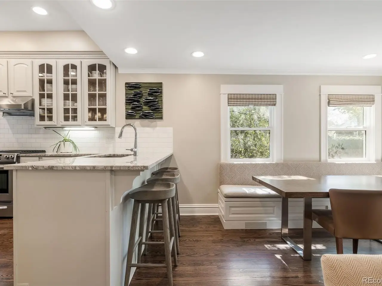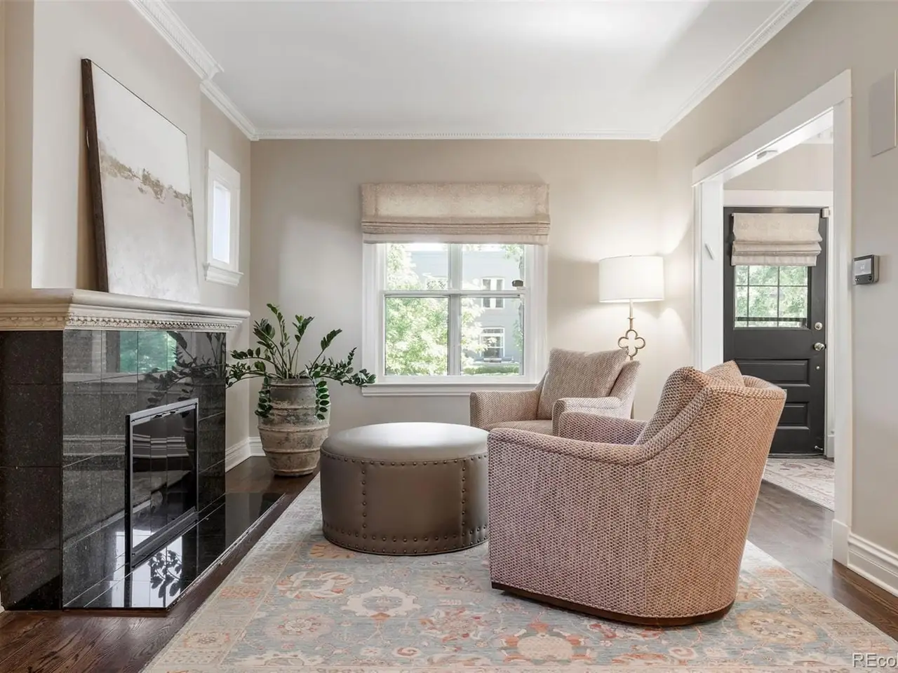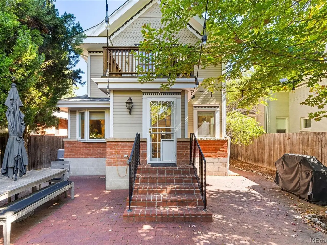Built in 1913, this updated residence combines historic charm with modern upgrades throughout. Warm and inviting, the front porch opens into a welcoming foyer with a beautiful, classic staircase, a generous living room featuring a gas fireplace, as well as a spacious dining room with bay window. Rich in character with a fresh, modern style, the interior is filled with sunshine and accented by gorgeous hardwood floors, crown molding, high ceilings, plus a new powder room with designer wallpaper on the main level. The heart of the home is the great room, the perfect gathering place where hosting friends and family is a breeze. Open to a well-equipped kitchen, highlighted by attractive white cabinetry, stainless steel appliances, breakfast bar and adjacent breakfast area with built-in banquette seating. The mudroom offers a bench and built-in cabinetry, and leads outdoors to a delightful brick-pavered patio and private, treed backyard. Upstairs, the primary suite is a cozy retreat with a sky-lit vaulted ceiling, private balcony overlooking the yard, walk-in closet and new en suite bath with radiant floor heat. Two additional bedrooms are found on the second floor, each with a walk-in closet, plus a lovely full bath. Huge laundry room and ample storage are located on the lower level. Offering a rare chance to own a piece of Denver's vibrant culture within the East Seventh Avenue Historic District, this home is just minutes to nearby parks, Denver Botanic Gardens, Downtown, as well as the world-class dining and shopping of Cherry Creek.