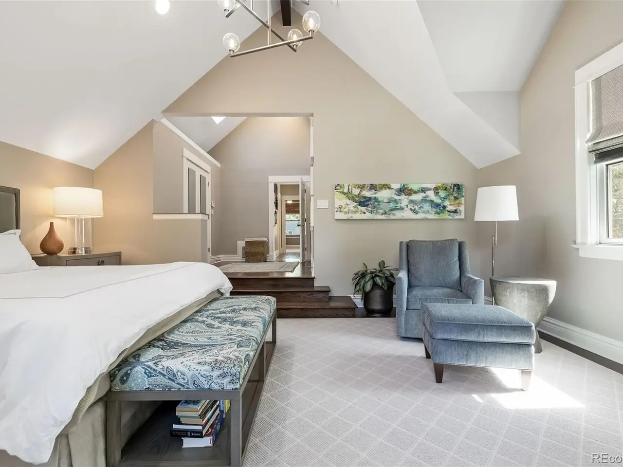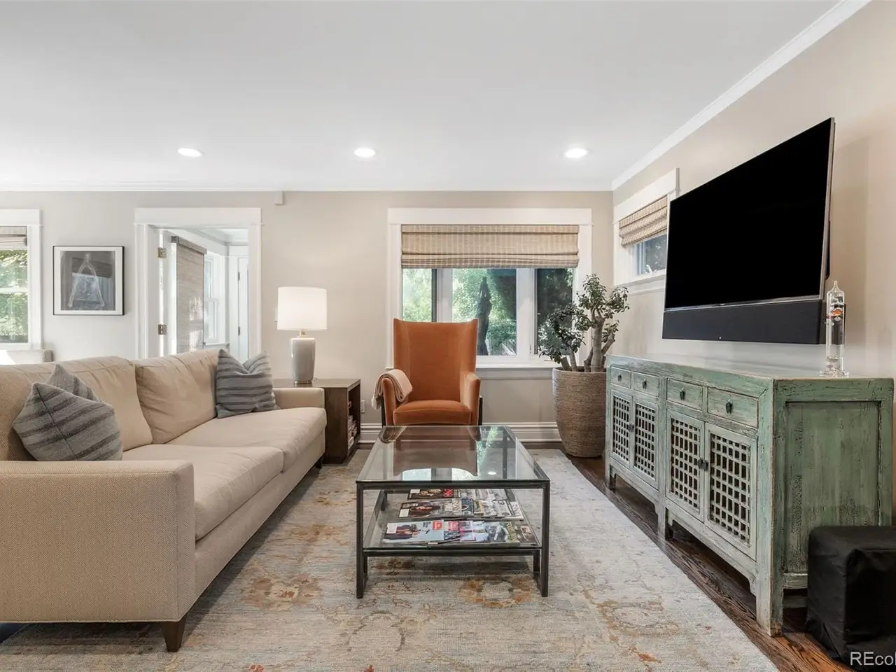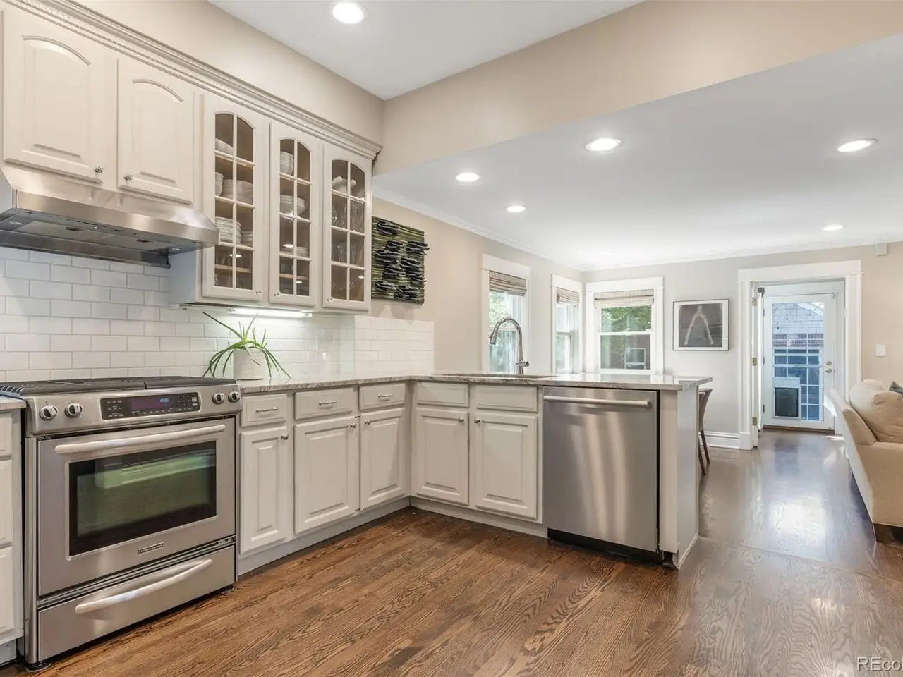 Built in 1913, this updated residence combines historic charm with modern upgrades throughout. Warm and inviting, the front porch opens into a welcoming foyer with a beautiful, classic staircase, a generous living room featuring a gas fireplace, as well as a spacious dining room with bay window. Rich in character with a fresh, modern style, the interior is filled with sunshine and accented by gorgeous hardwood floors, crown molding, high ceilings, plus a new powder room with designer wallpaper on the main level. The heart of the home is the great room, the perfect gathering place where hosting friends and family is a breeze. Open to a well-equipped kitchen, highlighted by attractive white cabinetry, stainless steel appliances, breakfast bar and adjacent breakfast area with built-in banquette seating. The mudroom offers a bench and built-in cabinetry, and leads outdoors to a delightful brick-pavered patio and private, treed backyard. Upstairs, the primary suite is a cozy retreat with a sky-lit vaulted ceiling, private balcony overlooking the yard, walk-in closet and new en suite bath with radiant floor heat. Two additional bedrooms are found on the second floor, each with a walk-in closet, plus a lovely full bath. Huge laundry room and ample storage are located on the lower level. Offering a rare chance to own a piece of Denver's vibrant culture within the East Seventh Avenue Historic District, this home is just minutes to nearby parks, Denver Botanic Gardens, Downtown, as well as the world-class dining and shopping of Cherry Creek.