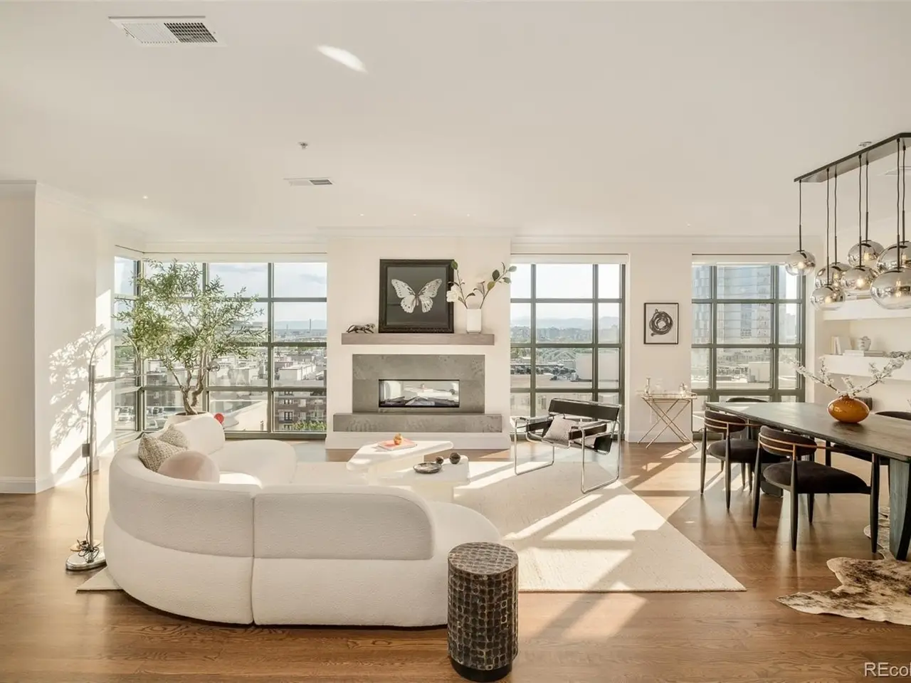 Discover the defining factors of Luxury within this stunning remodeled 8th floor corner 2 bed 3 bath condominium at Riverfront Tower. This modern architectural gem provides a balance of urban city life, a central point for cultural experiences such as sole stirring symphonies, major league sporting events, Michelin starred restaurants and world class retail shops, with the tranquility of nearby green spaces and majestical City and Mountain views from its floor to ceiling windows integrating the exterior within the interior and enjoy a spacious balcony with a built-in gas line and water tap. Adjacent to Commons Park and the North Platte River with 28 miles of trails. Marvel at the expansive great room showcasing a sleek electric Evonik fireplace encased in stone abreast of dining, and the gourmet kitchen having high end appliances of Bosch, KitchenAid and Wolfe to enjoy your creations while entertaining from the expansive center island capped in Caesar stone with a central sink. Relax in the flex space “snug” and enjoy a game or use this as an office. The deliberate design of this floor plan is wonderful for entertaining. Retire to the primary suite, greeted by an antechamber and expansive walk-in closet with a stunning newly remodeled spa-inspired 5-piece bathroom featuring a freestanding soaking tub and an oversized glass shower. This incredible condominium continues to be complimented having Second bedroom with custom built-in drawers, a separate closet with a beautifully remodeled ensuite and positioned down the hall for perfect privacy this residence includes a third bath for visiting guests. A one-of-a-kind residence that has been elegantly remodeled from door handles to directional button spotlights having nothing unturned blending luxurious finishes with timeless comfort. Secure your favorite autos in the two deeded tandem parking spots with an ample storage unit. Moments from Union Station across the Millennial bridge under the clock-tower you'd be home!