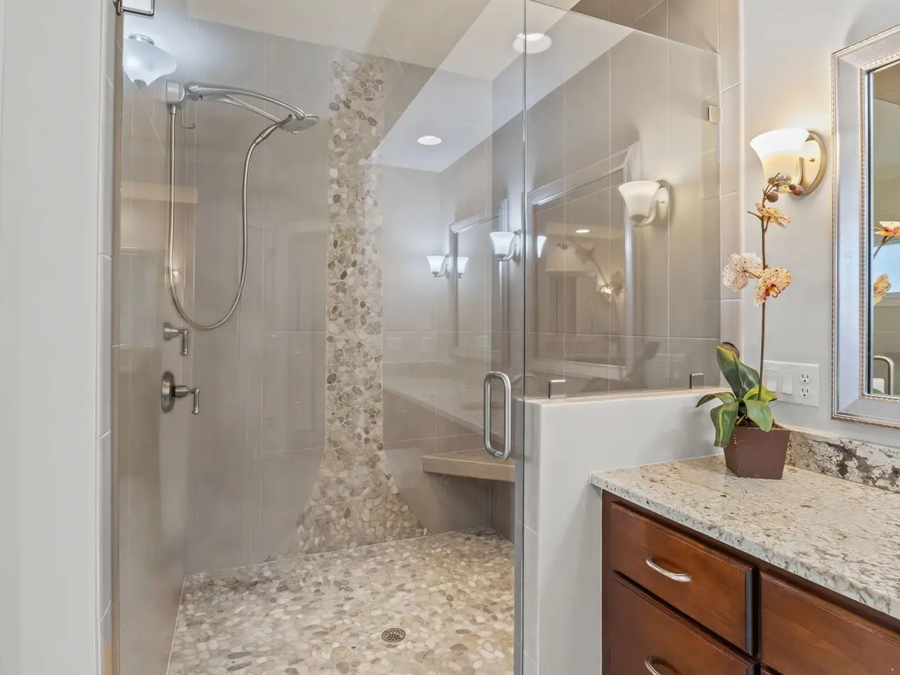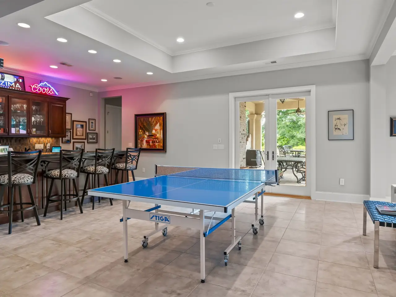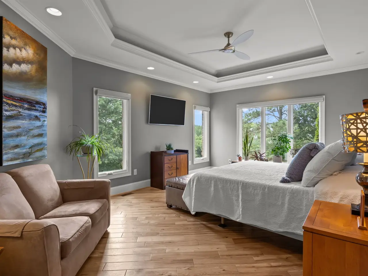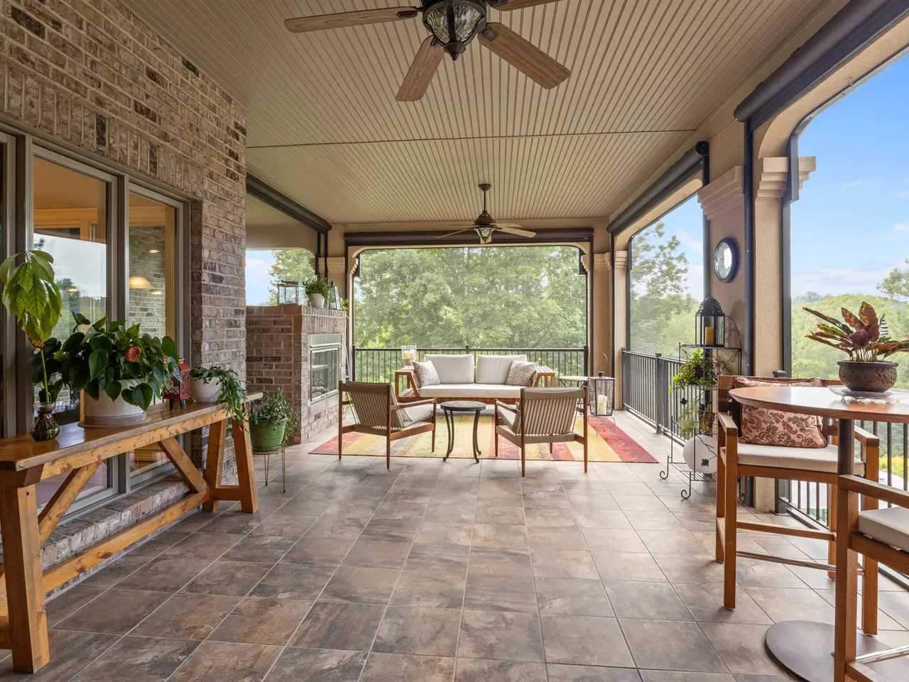 Perched on an elevated lot with views of 8th fairway at Verdict Ridge Golf Course, this stunning retreat blends timeless elegance with resort-inspired living. Step inside a sunlit main level where the spacious kitchen flows into the family room perfect for entertaining with tranquil golf course vistas. An elevator provides access throughout, while the primary suite offers a spa-style bath and dual walk-in closets. The laundry room doubles as a workspace. The office & the fireside sitting room add charm. Car lovers will enjoy the 3-car garage with epoxy floors and workshop space. Outside, your private oasis awaits complete with a heated salt water pool, covered patio, screened-in porch with fireplace & lush landscaping ideal for relaxing under the stars. The finished walk-out basement features 3 guest rooms, 2 full baths, full kitchen and bar, game/family room and generous storage. With striking curb appeal and refined design throughout this is a paradise you'll never want to leave!