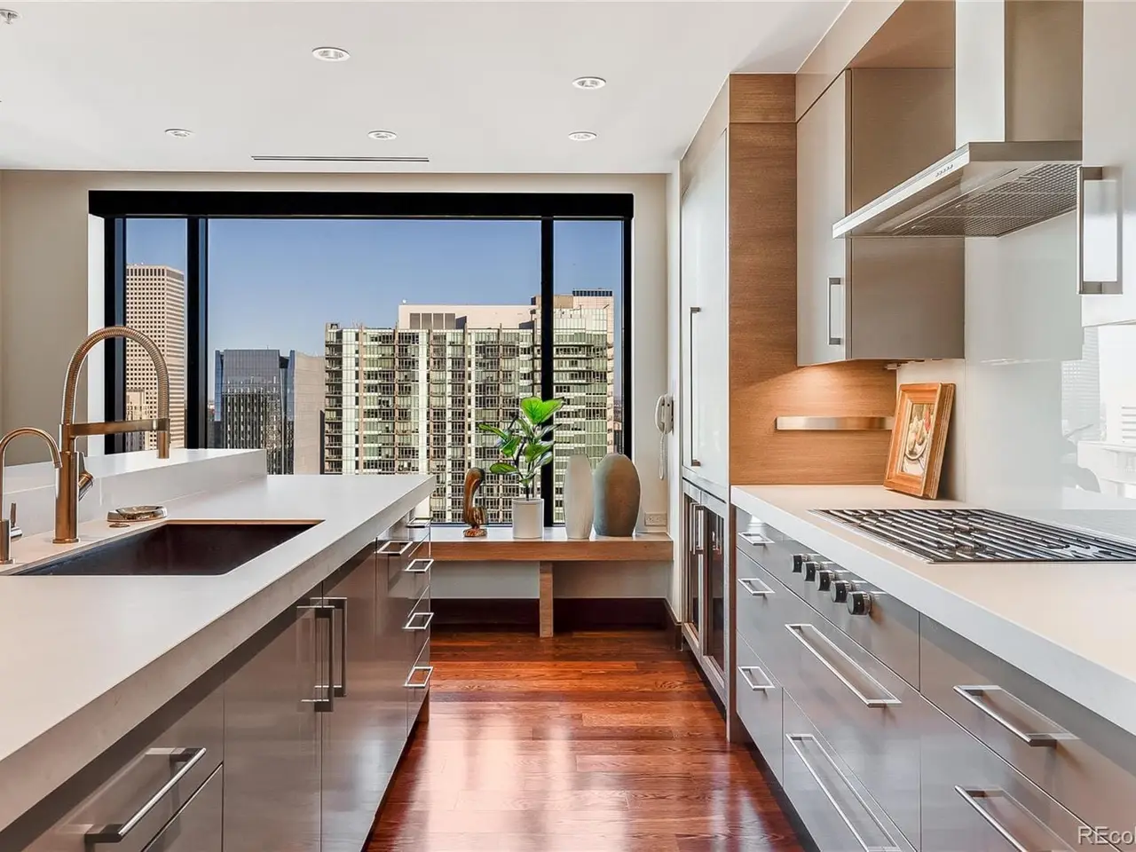 Elevated luxury awaits in this sophisticated, updated residence on the 33rd floor of the iconic Four Seasons Private Residences in the heart of downtown Denver. Occupying a full quarter of the floor, this expansive condo blends modern elegance with breathtaking views of the city skyline. Inside, sleek lines and exquisite finishes define the open-concept living space, offering seamless flow and endless possibilities for personalization. The gourmet kitchen is a showstopper, featuring high-end appliances, custom cabinetry, wine refrigerator, and a spacious walk-through pantry that also houses full-sized laundry and generous storage. Designed for both comfort and entertaining, the home includes an integrated entertainment system and a private balcony outfitted with heaters, perfect for enjoying the cityscape in any season. The serene primary suite offers spectacular views, a luxurious en-suite bath with double vanity and built-in cabinetry, and thoughtful privacy from the rest of the home. Two additional en-suite bedrooms are ideally separated for guests or office space. Enjoy the ease of two deeded parking spaces in a secure garage and indulge in world-class Four Seasons amenities, including 24-hour concierge, room service menu, valet, access to the pool, fitness center and spa and so much more. This is city living at its most refined - welcome to a life of everyday luxury.