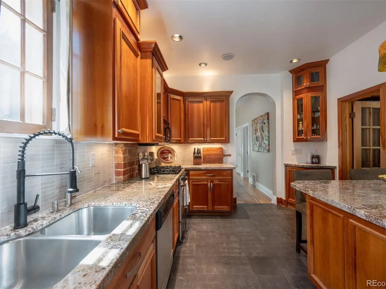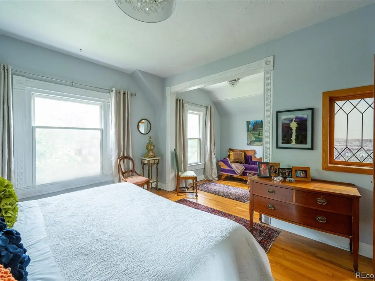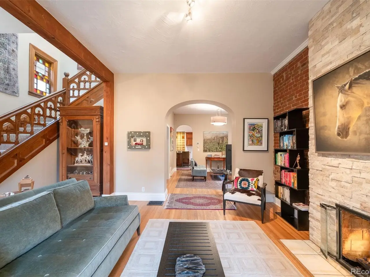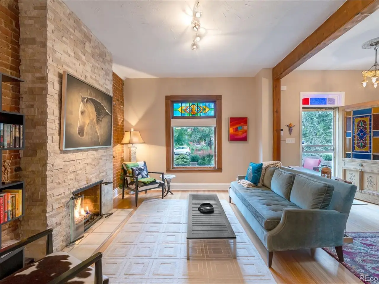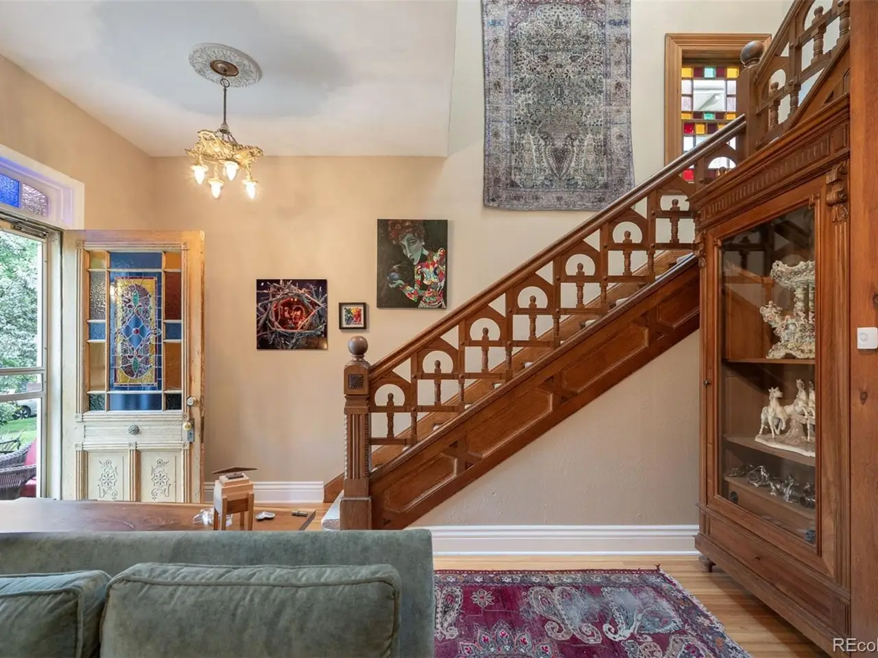 Rare opportunity just half a block from the Denver Botanic Gardens! Enjoy a stunning home on a truly one-of-a-kind block where being neighborly is at the heart of this community with neighbors regularly hosting front porch gatherings, sharing that one ingredient you forgot from the store and organizing neighborhood events -- this block is something special. This charming four-bedroom, two-bathroom single-family home is truly one-of-a-kind, blending historic character with modern updates. From the moment you enter, you’ll be captivated by its stained-glass windows, ornate staircase, and period details that tell a story of timeless craftsmanship. The living room offers a warm welcome with a cozy gas fireplace, ideal for hosting guests or enjoying a quiet evening. The spacious primary bedroom provides flexibility for a sitting area or the addition of a large closet, while two upstairs bedrooms and a convenient main floor bedroom give plenty of space for family or visitors. The kitchen boasts a microwave, oven, refrigerator, new backsplash, and a fresh coat of paint for a clean, updated look. Every corner of this home is filled with thoughtful details that make it stand out. Outside, you'll find your private, fully fenced backyard retreat with lush perennial landscaping and a deck perfect for entertaining or relaxing. The one-car garage, once a carriage house, carries its own history and offers the potential to be converted into a two-car garage. Perfectly situated near Cheesman Park, the Denver Botanic Gardens, and popular dining, shopping, and cultural attractions, this home offers both character and convenience in one of Denver’s most iconic neighborhoods and blocks.