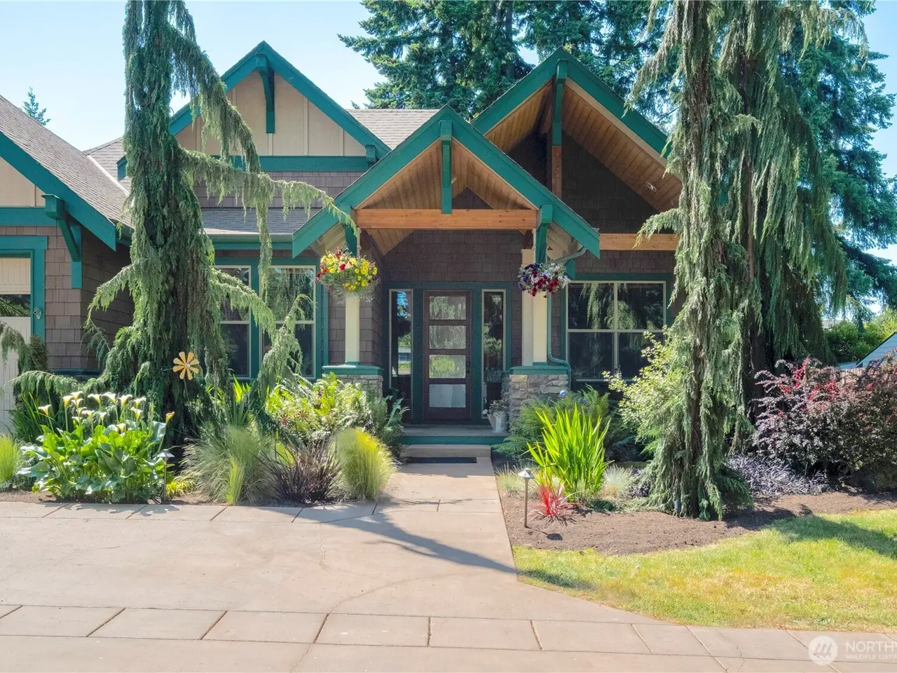 Don't miss this private lodge style sanctuary! The flat almost 1/2-acre lot with private drive & gated entry boasts a one-story 2014 custom-built home that is a car collector's dream! It has an oversized 3-car attached garage + 4-car detached shop w/1/2 bath & 10' doors for your RV/boat. The home has a grand covered entry that leads to sizable foyer w/adjacent office, vaulted ceilings & an open great room w/gas fireplace, dining area, & cook's kitchen. The luxurious primary suite features a spa-style bath. Step outside to the 422+ SF covered patio w/fireplace, built-in BBQ & TV wiring. Fenced yard w/fruit trees and a garden of raised beds- your urban farm to table awaits! Mature landscaping throughout. Sewer connected. Minutes from I-5 and 509.