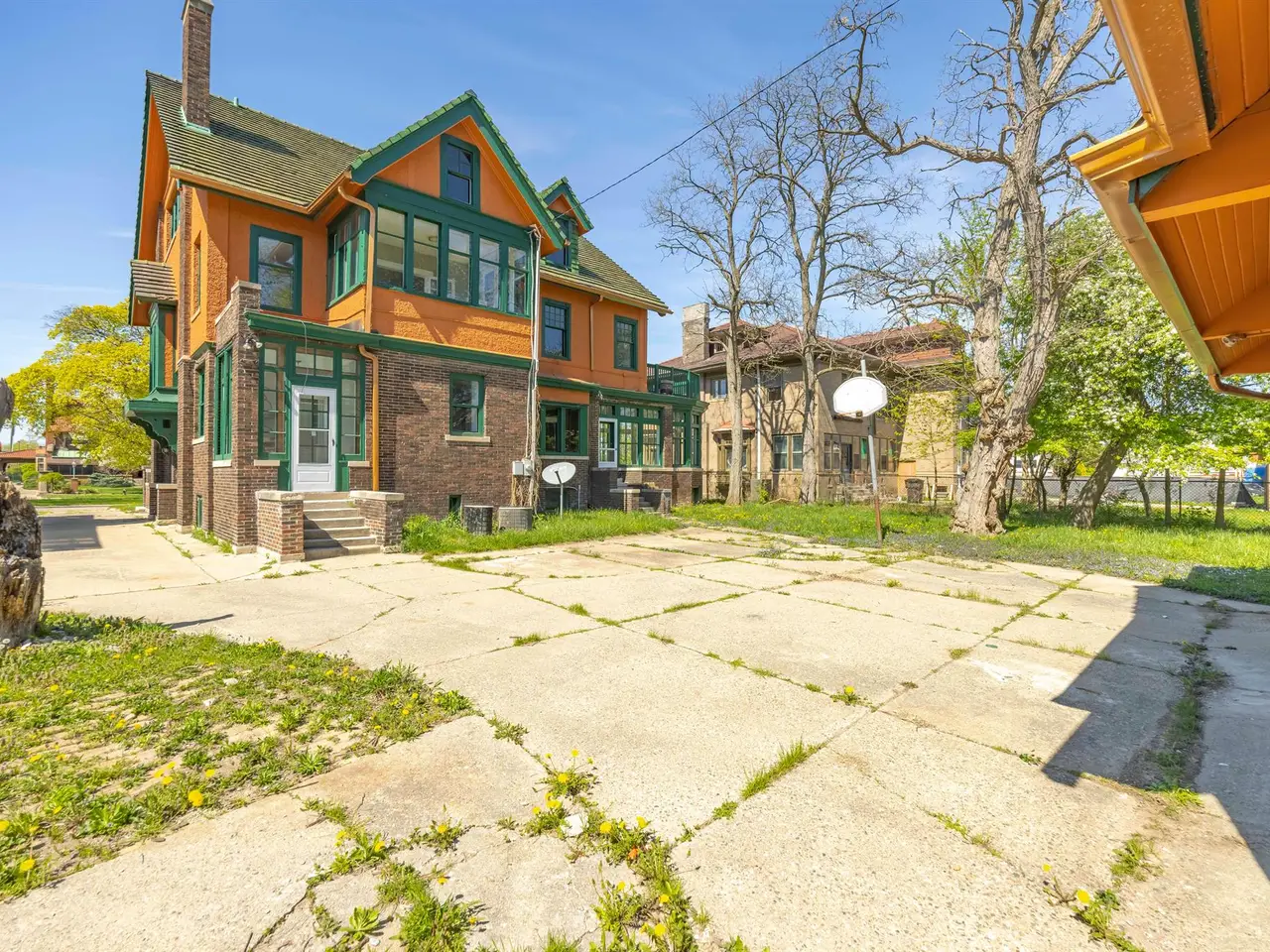 Welcome to this 1913-built, Tudor-inspired, 6-bedroom home on 0.31 acres—known as the Albert J. Dunneback House. Located in Detroit’s prestigious Arden Park–East Boston Historic District, this neighborhood is renowned for its grand early-20th-century estates built during Detroit’s industrial boom—once home to auto pioneers like John Dodge and J.L. Hudson. Blending timeless character with modern convenience, the home offers gracious living spaces suited for both intimate gatherings and grand entertaining. Upon entry, you're welcomed by original hardwood flooring that continues throughout the entire residence. The main level features both original and updated fireplaces in the living and family rooms—ideal for fireside chats, a home office, or memory-making moments. A spacious dining room and adjoining sunroom provide additional areas for hosting and everyday enjoyment. The kitchen has been updated with new granite countertops, while the bathrooms shine with crisp white marble and tile. Historic charm remains in details like the preserved stairwell and trim, while contemporary finishes and fresh paint bring new life to each space. The second and third floors offer a peaceful retreat, featuring six bedrooms, three full baths, and another sunroom perfect for a morning breakfast nook. The full basement provides generous storage and includes a built-in safe room with its original 1913 door. Outside, the iconic green terracotta roof tiles have been meticulously refurbished to match the original design—a rare and defining feature of this historic home. All this, just minutes from downtown Detroit’s renowned dining, theaters, and cultural venues. With ample space and one-of-a-kind character, this home offers the opportunity to create your own legacy. Make this Southeast Michigan estate a lasting part of yours.
