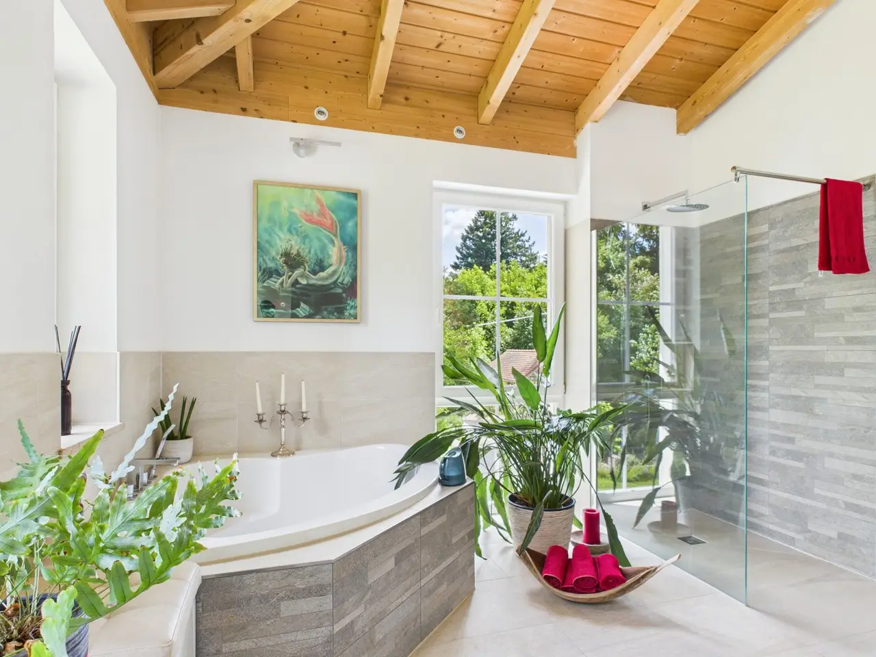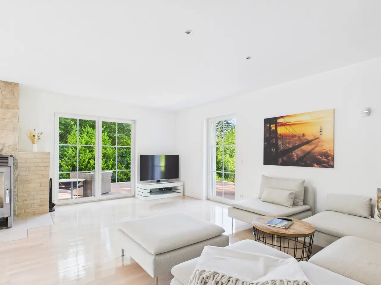 Rarity in a dream location: Exclusive property with main house, guest house and rustic log cabin A top-class retreat on the edge of the forest - live, receive and celebrate at the highest level Welcome to a unique ensemble that leaves nothing to be desired. This extraordinary property awaits you in an absolute dream location, nestled in the idyllic tranquillity of a well-tended plot on the edge of the forest. Here, modern living comfort, generous development possibilities and rustic charm combine to form a harmonious whole. The main house - modern living comfort at the highest level Built in 2013, the main house impresses with its clear architecture, high-quality materials and well thought-out interior design. Light-flooded rooms, a spacious eat-in kitchen, exclusive bathrooms and state-of-the-art building technology offer a home that makes no compromises. An oasis of well-being for discerning residents. The guest house - perfect for family, friends or vacation guests The separate guest house is fully equipped and offers everything your heart desires on a comfortable 31 square meters. Whether for visiting family and friends or as a retreat - guests will find absolute privacy and comfort here. The natural stone hut - rustic charm for unforgettable hours A highlight of the property is the rustic natural stone party hut with wood-burning stove. With a stylish bar, cozy furnishings and plenty of space, it invites you to celebrate, relax and enjoy yourself. Perfect for sociable evenings, small parties or simply to celebrate life at its best. The property - a paradise on the edge of the forest The property is situated on a spacious and lovingly maintained plot of land that borders directly on the forest. Nature and elegance come together here: a green oasis that offers absolute peace and privacy. Whether you enjoy nature, relax outdoors or entertain guests - this place will delight you. The location - exclusivity meets nature A location that is rarely found: quiet, private and yet very well connected. The woodland grounds create a unique atmosphere, while the proximity to infrastructure and leisure facilities makes life here so comfortable. Conclusion: A property that tells stories and will write new ones This extraordinary property is more than just a home - it is a lifestyle. A place for people who seek and appreciate something special. Are you ready to fall in love? Arrange a viewing now and experience this hideaway for yourself!