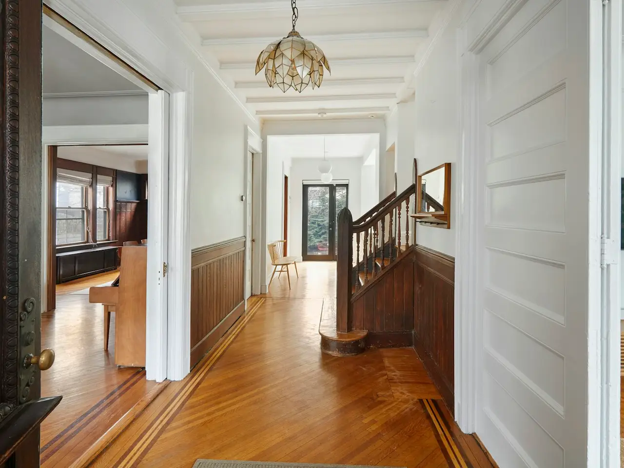 Discover the perfect blend of historic charm and thoughtful renovation in this rare 7-bedroom, three full bath, and quarter-bath Victorian-style detached home in the heart of Ditmas Park. Set on a peaceful, tree-lined block, this generously sized property sits on a 50" x 100" lot, with the home itself measuring 32" x 36', offering incredible space both inside and out. A gracious front porch welcomes you in. Inside, timeless architectural features like wood paneling, oversized pocket doors, and original wainscoting are beautifully preserved, adding warmth and texture throughout the home. The true centerpiece is the renovated chef's kitchen, thoughtfully extended to include a striking wall of atrium windows that allow in gentle natural light and offer views of the enormous backyard - a wonderful oasis for entertaining, play, or gardening. The kitchen features high-end appliances, custom cabinetry, and durable concrete slab floors that continue through the main level. This home offers seven bedrooms, providing flexibility for sleeping quarters, guest accommodations, or dedicated work-from-home spaces. There are three full bathrooms thoughtfully placed throughout the house, along with a convenient quarter bath. The fully finished, oversized basement is ready to be tailored to your needs, whether you envision a recreation area, studio, home office, or additional storage space. A spacious laundry room is equipped with a washer and dryer, and two dedicated parking spaces complete the picture of practicality and comfort. The home is thoughtfully designed to offer both light-filled gathering spaces and tranquil areas for rest and retreat. The atrium-enhanced kitchen and main living areas bask in natural light throughout the day. Solidly built with strong bones and modernized with care, this home is move-in ready and offers unmatched space, comfort, and versatility- all in one of Brooklyn's most beloved neighborhoods.