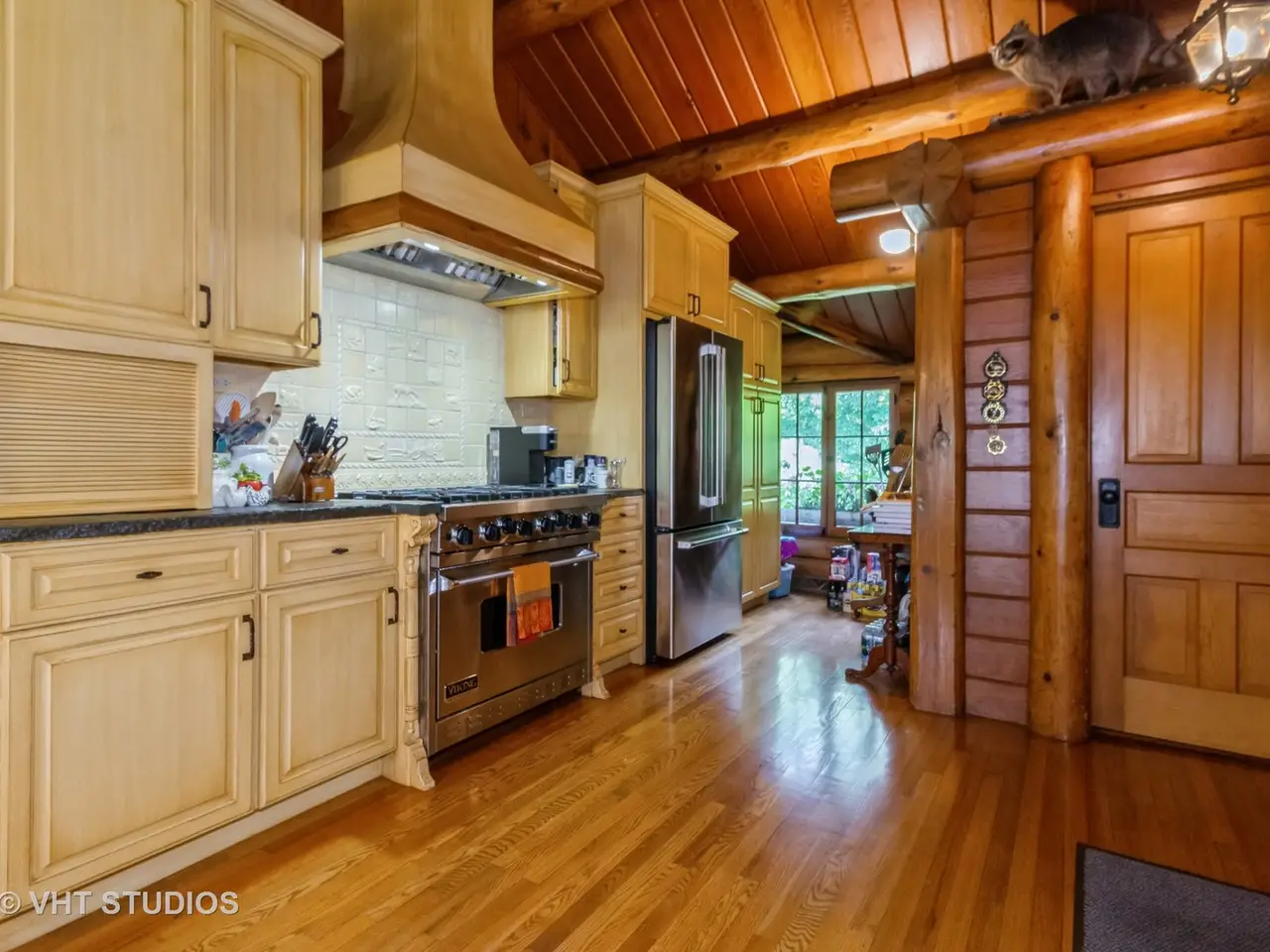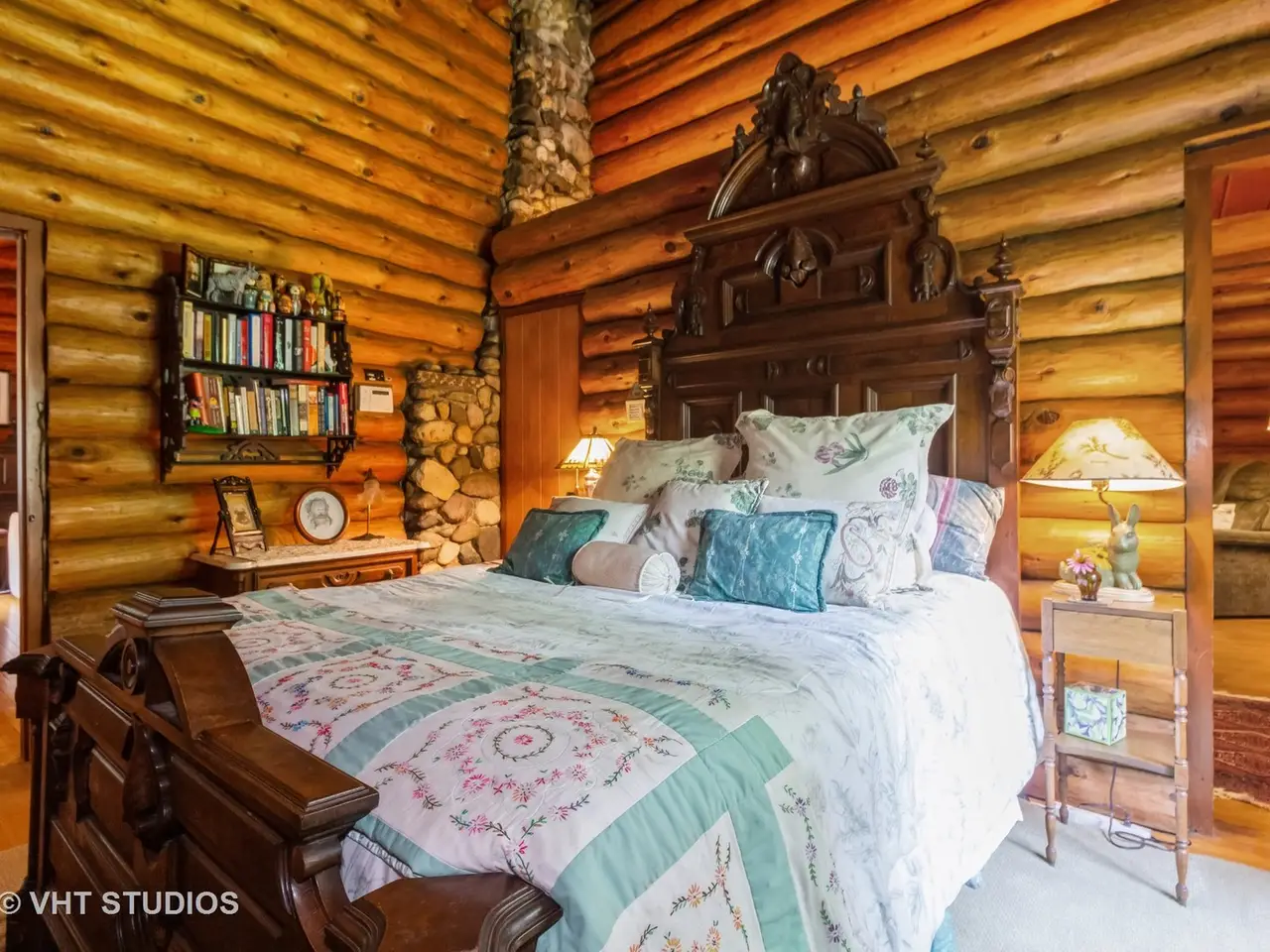 Historic 1925 White Pine Log Cabin on 16 acres along the Rock River. Great panoramic river views from the property. Home has been expanded and modernized to today's needs. Separate artist's studio included in the 2 car garage structure. Storybook setting lovingly landscaped. Great get-away home for the urban resident--Easy access to toll road and short distance to shopping and restaurants. Try paddling your own canoe in the Rock River! This is a must see property.