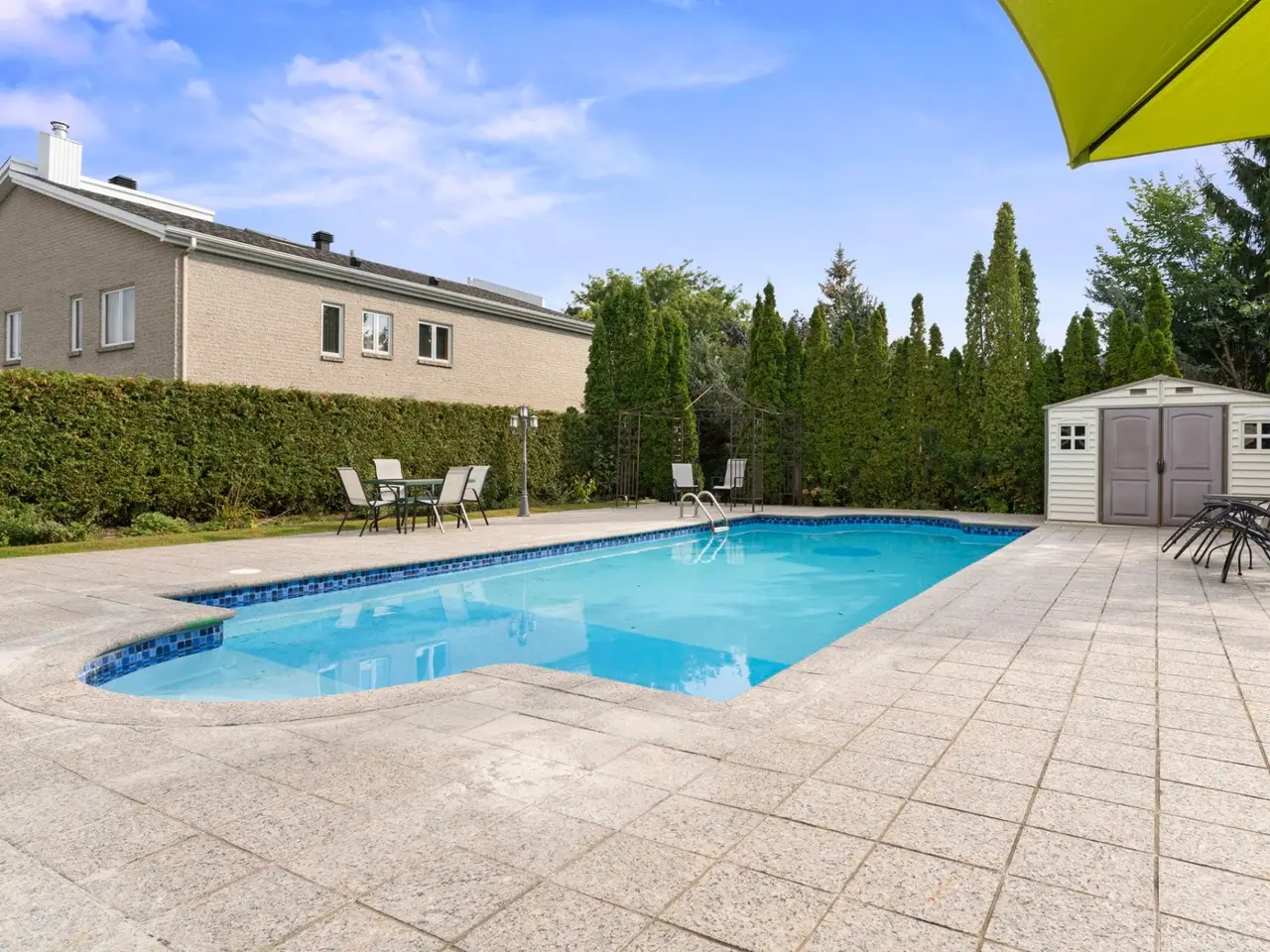 First time on the market in nearly 40 years, spacious 4+1 bedroom home, perfectly situated on a sprawling south-west facing 12,150 sq. ft. double lot. This property boasts a classic kitchen that seamlessly flows into a sun-lit 3-season solarium, perfect for relaxing and entertaining. The backyard is your very own private oasis with an oversized inground 43'x16' saltwater pool with an outdoor shower, bordered by mature hedges for complete privacy. Enjoy a fully finished basement with an additional bedroom, bathroom and wine cellar. Includes an energy-efficient geothermal system ensuring exceptional comfort throughout the year. Don't delay!