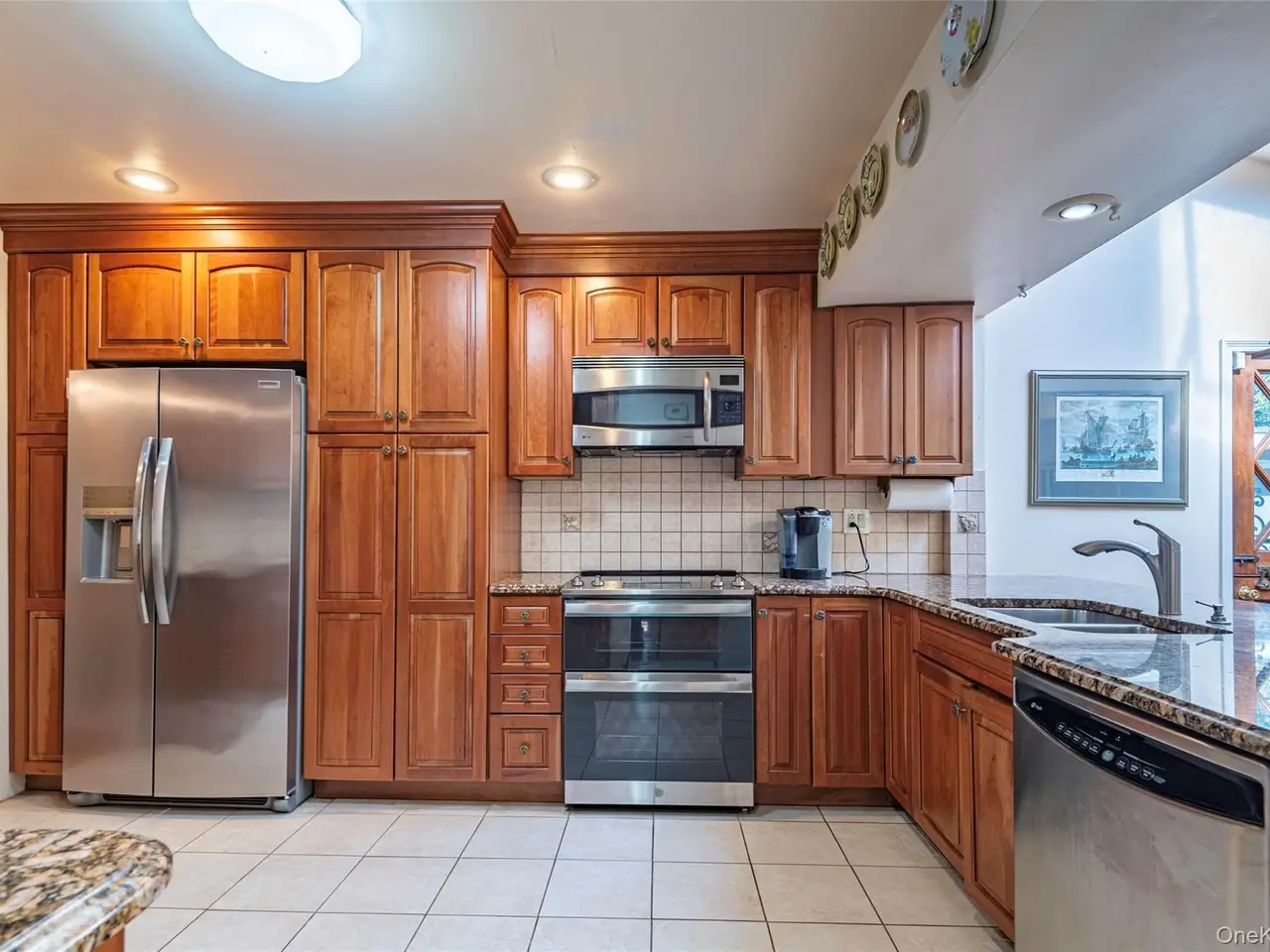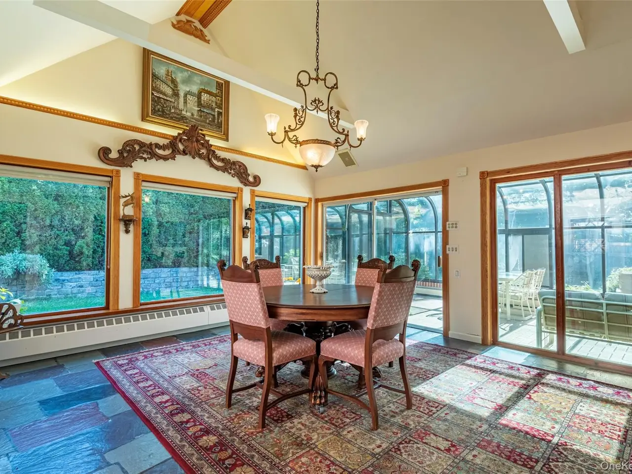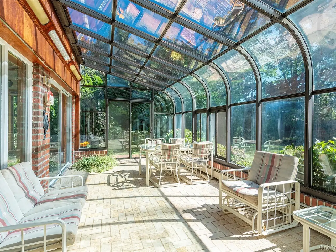 Welcome to this exceptional and spacious single-family home located in the heart of Douglaston, Queens, offering rare country-style living on a quiet, tree-lined private road. Beautifully maintained and set on an large 126 x 95 landscaped lot with a serene waterfall, this unique corner property overlooks the protected Alley Pond, ensuring permanent privacy and unobstructed views. Fence all around. The open-concept first floor features a generous living room with a fireplace, a large kitchen with granite countertop and stainless steel appliances. Kitchen has a skylight and breakfast area, a formal dining room ideal for entertaining, a family room with cathedral ceilings, a full bathroom, and a bedroom, along with a legal sun-filled four-season Florida room. Upstairs boasts an oversized primary bedroom, two additional bedrooms, walk-in closet and a full bathroom. The full basement includes a laundry room, boiler room, storage, and a partially finished area. An additional legal brick outbuilding offers versatile use as a shed, workshop, summer kitchen, or BBQ area. It has two car garage with a garage opening and additional 5 cars parking. Conveniently located near public transportation including local and express buses and the LIRR (just 20 minutes to Manhattan). You are also just minutes from major highways (LIE and Cross Island Pkway) and it's making this location ideal for those on the go. It is close to schools, parks, shopping, and houses of worship—this rare gem truly must be seen to be appreciated.