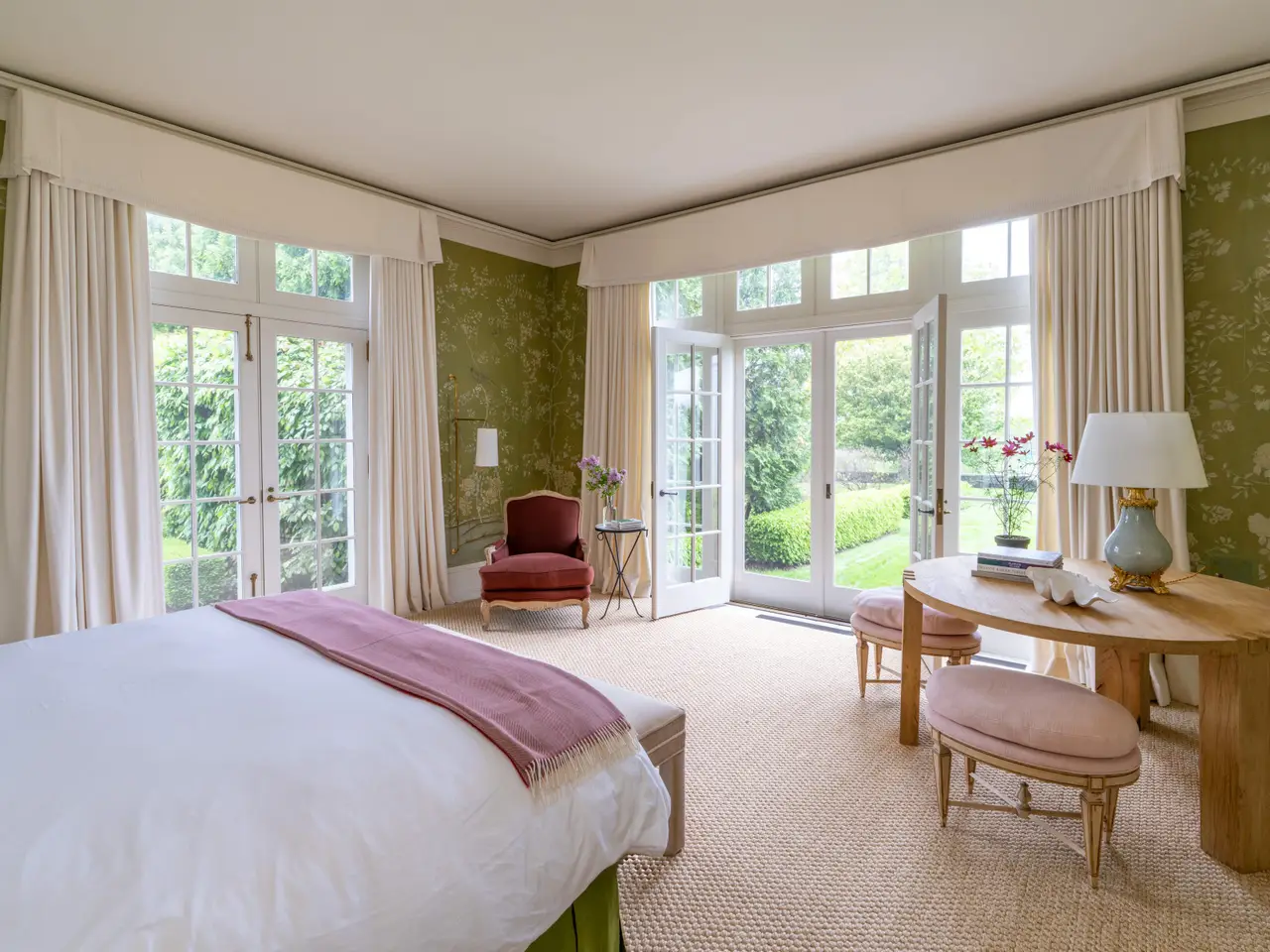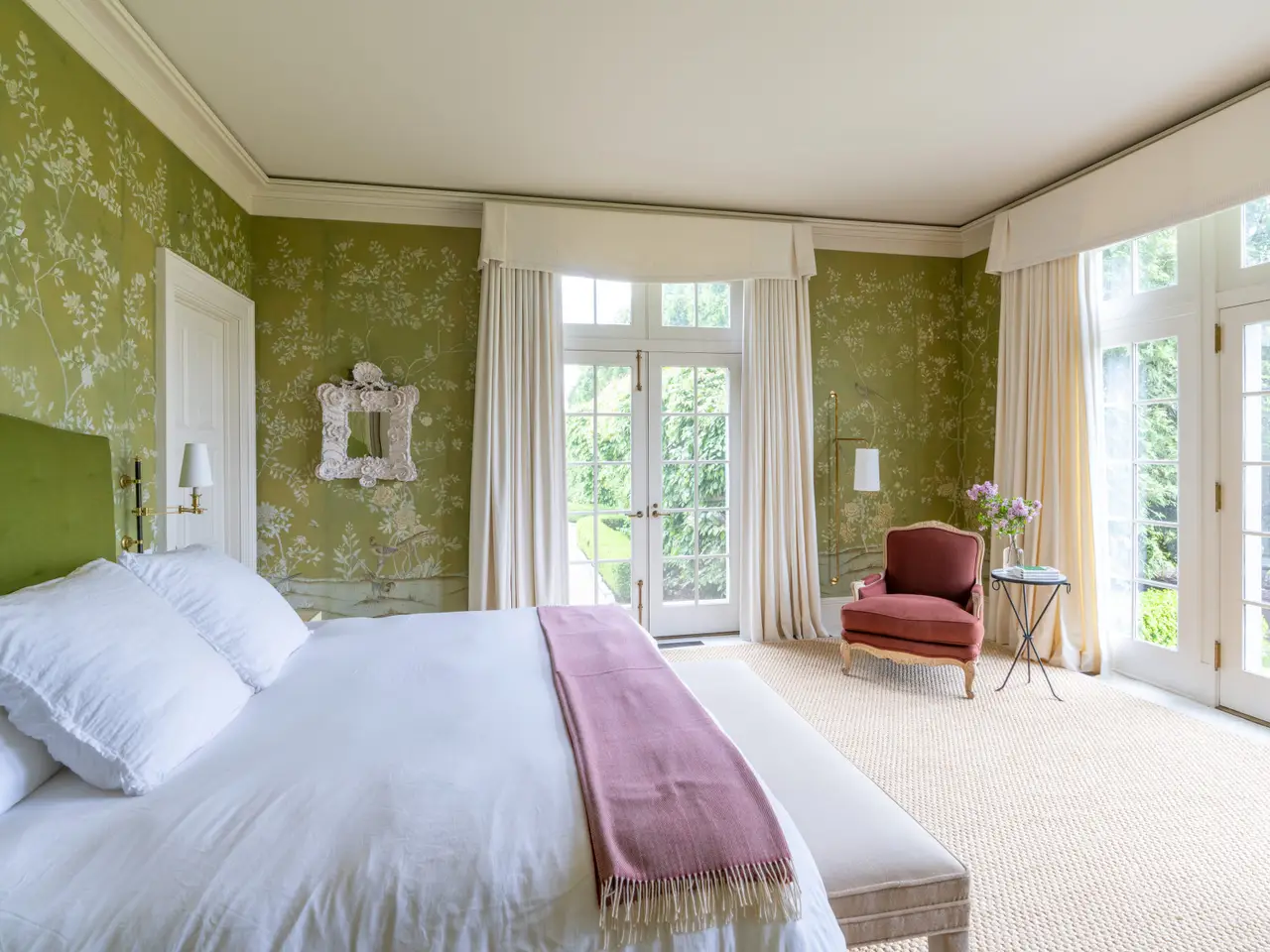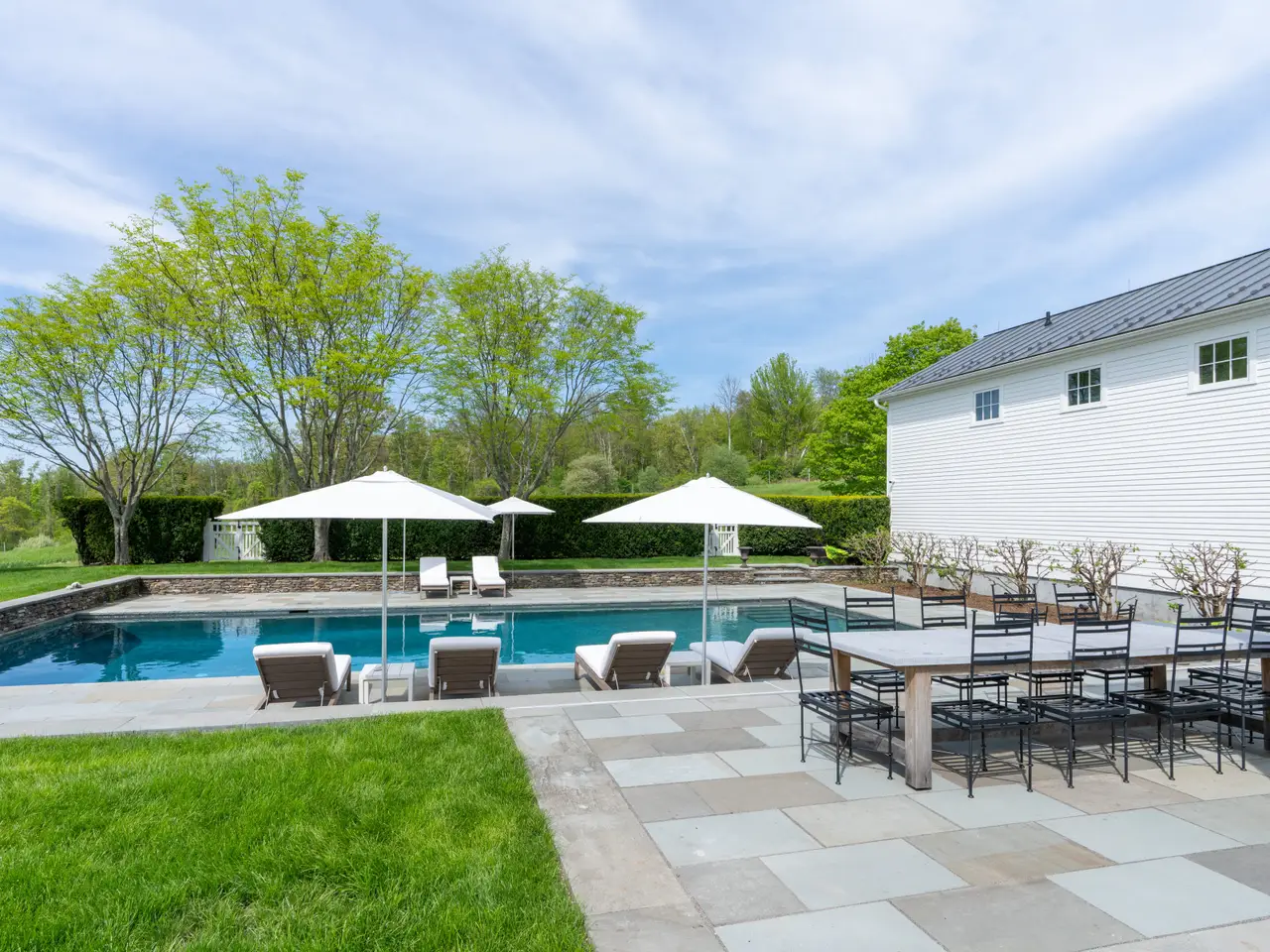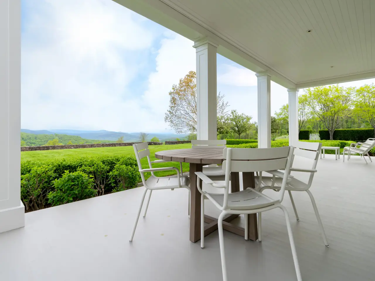 Privately sited at the end of a tree-lined drive, this architectural estate enjoys panoramic views over the Hudson Valley and Catskill Mountains. Designed by AD100 architect Gil Schafer, with landscape architecture by Warren Byrd, the home is a Greek Revival masterpiece that blends timeless elegance with modern sophistication. As featured in Elle Decor, the interiors showcase meticulous craftsmanship and richly layered detail. A dramatic double-height entry gallery centers around a sculptural spiral staircase, offering a striking introduction to the home. From there, a 36 x 24-foot great room unfolds with 11-foot-plus ceilings, two wood-burning fireplaces, and French doors leading to an expansive covered porch that captures stunning sunset views. The kitchen is outfitted with top-of-the-line appliances, hand-hewn beams, dual pantries, and an inviting lounge area, perfect for gathering and entertaining. A large-scale wet bar connects the kitchen and great room, while the adjacent dining area opens to a beautifully landscaped pool terrace. A heated breezeway leads to private guest quarters, offering two en-suite bedrooms and a comfortable sitting room. In the west wing, a richly paneled library with fireplace sits beside the serene primary suite, which includes dual dressing rooms, luxurious bathrooms, and views of an English garden and the rolling landscape beyond. Upstairs, two additional bedroom suites each feature private sitting areas and discreet breakfast bars, creating refined and restful retreats. An extraordinary offering where architectural pedigree, design excellence and natural beauty converge.