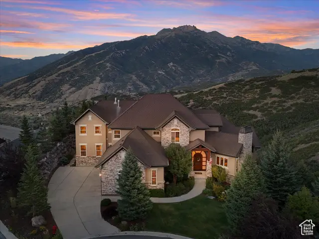 Nestled in the heart of SunCrest, this 5-bedroom, 4-bathroom home stretches across 8,499 square feet of mountain living on a .76-acre lot. You couldn't build this kind of home, on this kind of lot, for this kind of price in today's market. Not even 20 years old, it captures everything SunCrest is known for: fresh air, miles of hiking and biking trails, wide-open space, and views that make you stop mid-sentence. Four decks wrap around the exterior, offering front-row seats Lone Peak, Timpanogos sunrises and twinkling city lights at night. And with a brand-new roof just installed, you get peace of mind to match all that curb appeal. Inside, the main level is all about ease and elegance. It offers true main-floor living with two full bedroom suites. The primary retreat includes a private deck, spa-like ensuite with a walk-in shower, jetted tub, dual vanities, and a roomy walk-in closet. On the opposite side of the main level, a second bedroom also features its own ensuite. Perfect for guests, multigenerational living, or long-stay visitors. The kitchen, dining, and family room flow together seamlessly, making it ideal for both daily life and entertaining. Real hardwood floors, tall ceilings, and windows that frame mountain views add warmth and light throughout. Add in a formal living room, an office with fireplace, and main-floor laundry, and you've got the ideal daily setup. Details like plantation shutters and crown molding add charm and polish throughout. Upstairs, you'll find three additional bedrooms, two bathrooms, a second family room, a game area, and a second laundry room so there's no hauling baskets between floors. The basement is unfinished but well on its way. It features 9- to 11-foot 6-inch ceilings, framing in place, and roughed-in plumbing, and may even qualify as partially finished. The original plans (included) call for 2 full bathrooms, 2 bedrooms, a theater room, laundry, and a wide open family room. Whether you follow the original layout or bring your own vision to life, you'll appreciate the full walkout design and the wraparound deck that steps down to the lower level grassed yard. SunCrest continues to be one of Utah's best-kept secrets, and this home reflects the very best of it. The HOA includes internet, cable, a community clubhouse with a pool and gym, and events that make the neighborhood feel like home. A home this size, on a lot this rare, in a setting this special? That's not just a listing. It's a rare find that actually lives up to the phrase.