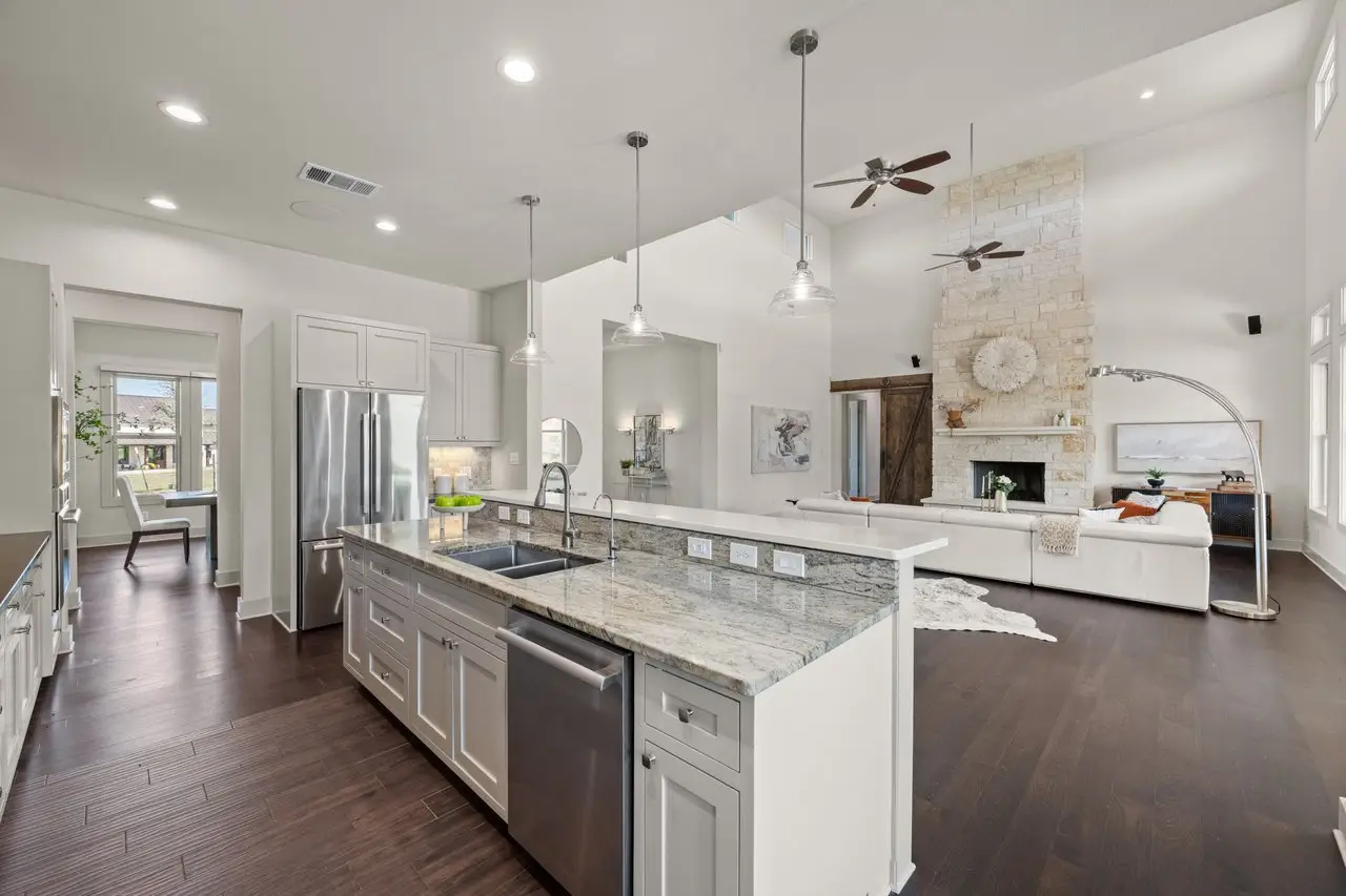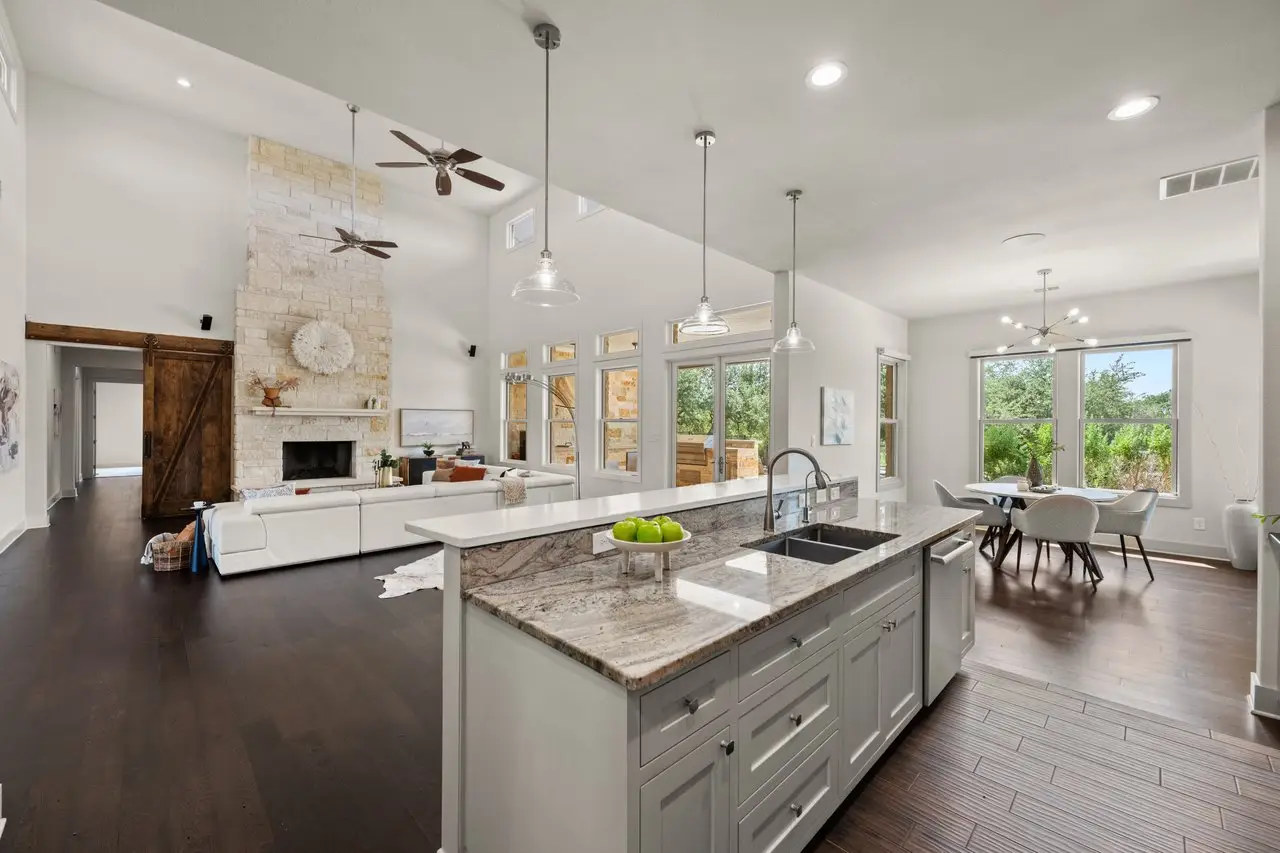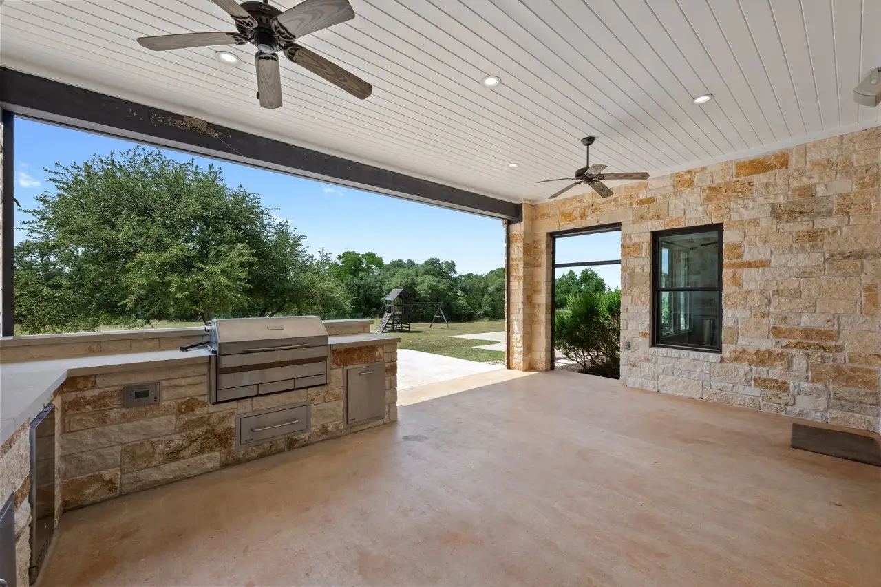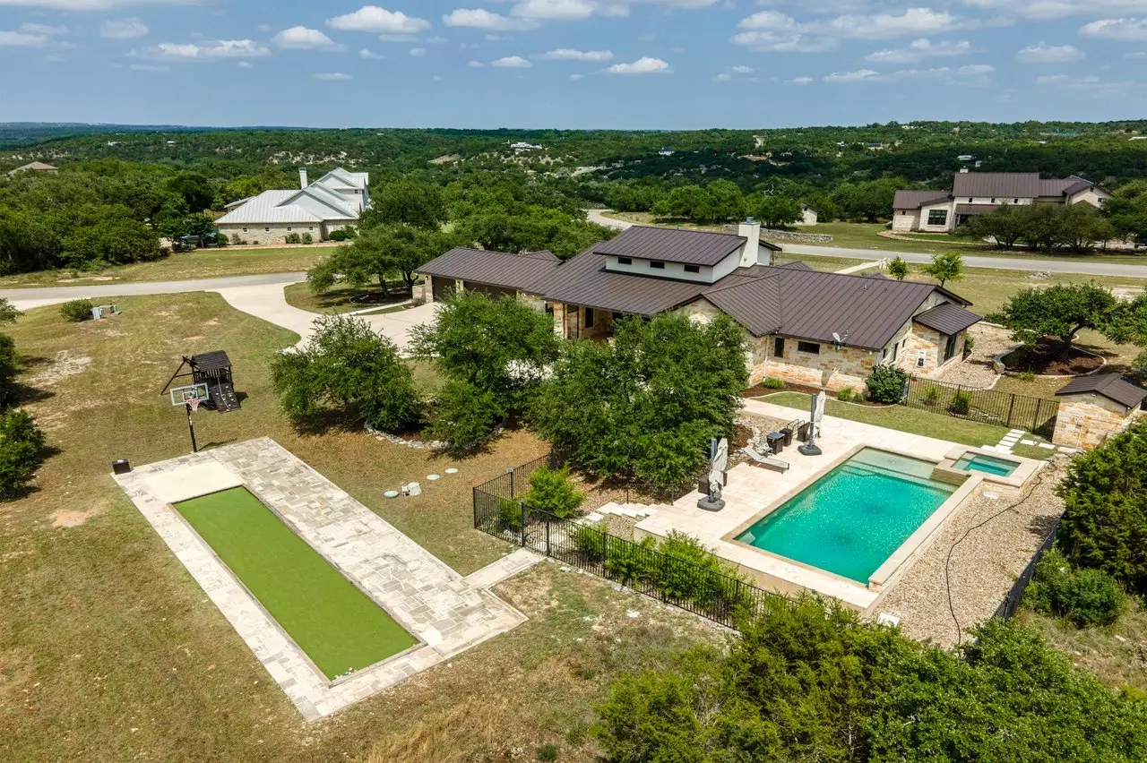 Situated on 2.4 acres in the serene Vineyard neighborhood, this stunning one-story Texas limestone home with a sleek metal roof exudes curb appeal on a corner lot. An oversized driveway leads to a three-car garage, complemented by a practical Generac generator, tankless water heater, well, and water storage tank. The backyard oasis features a sparkling pool and spa, outdoor kitchen, pizza oven, bocci ball pad, basketball court, and playground—perfect for entertaining. Overlooking the picturesque Texas Hill Country and Driftwood Winery, this home offers tranquility with easy access to Austin and San Antonio. Inside, a grand limestone fireplace anchors the open living area with soaring vaulted ceilings and huge windows flooding the space with light. The private master suite boasts a spa-like bath with a soaking tub, sparkling shower, and backlit mirrors. Each bedroom includes an en-suite bath and walk-in closet. The gourmet kitchen shines with a coffee bar and oversized pantry. Automated lighting, both interior and exterior, can be controlled from home or remotely. Located in the acclaimed Dripping Springs ISD, this home sits between the quaint towns of Dripping Springs and Wimberley, known for their charming downtowns, boutique shops, and vibrant community events. Enjoy the best of Hill Country living with urban amenities just a short drive away. www.3400tuscany.com