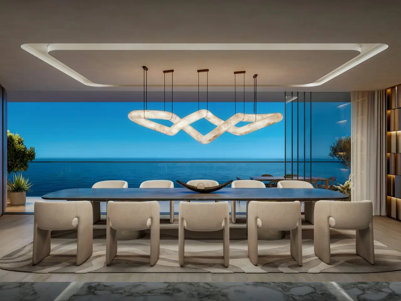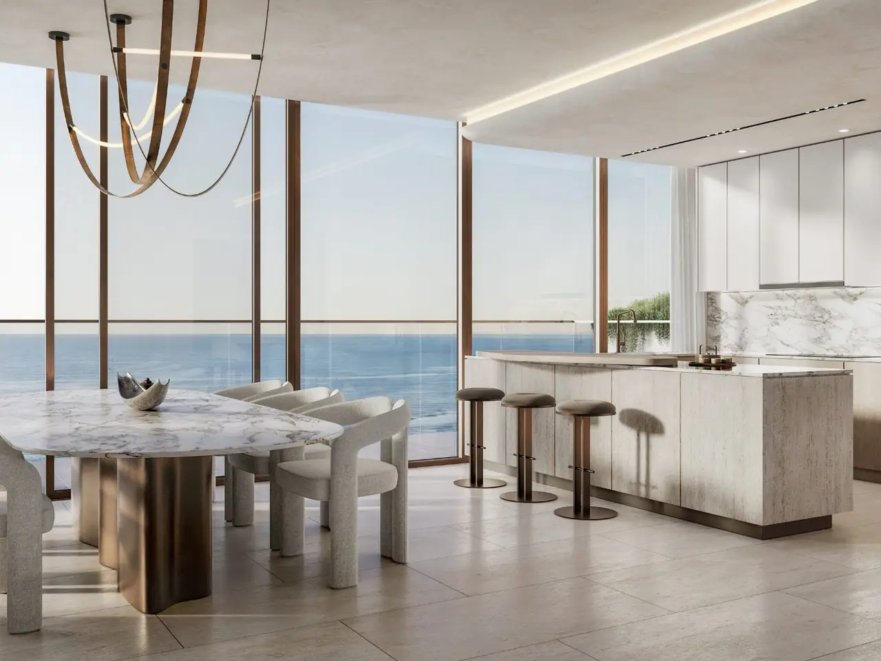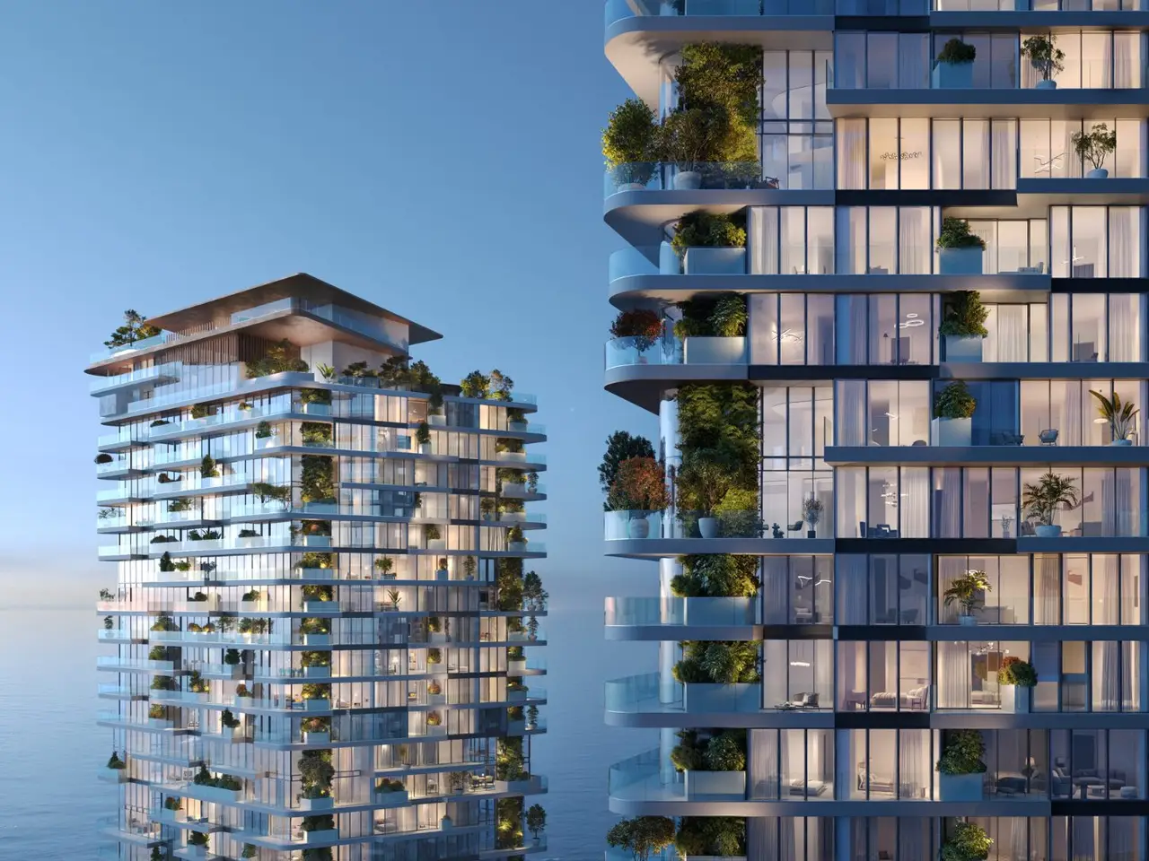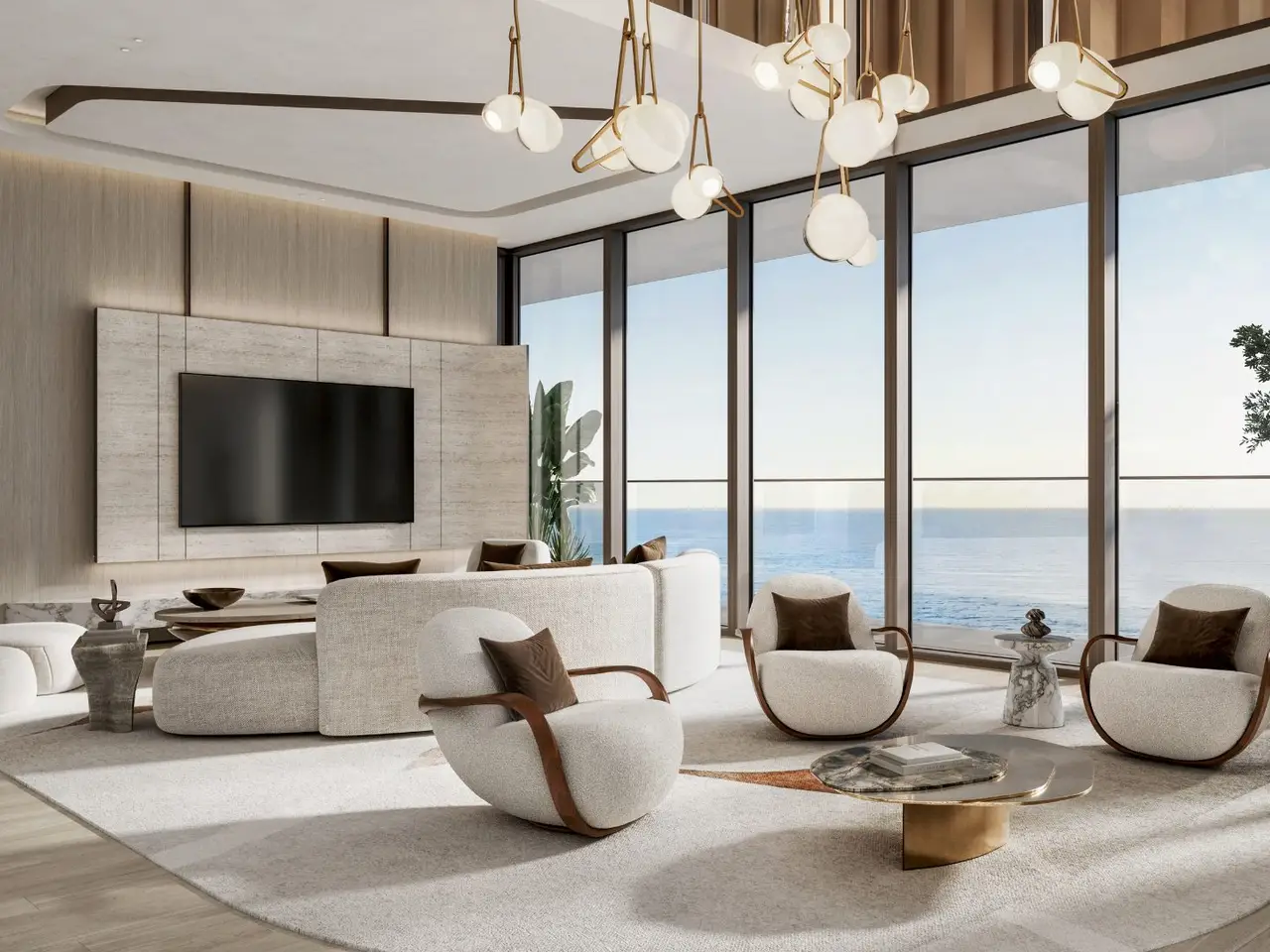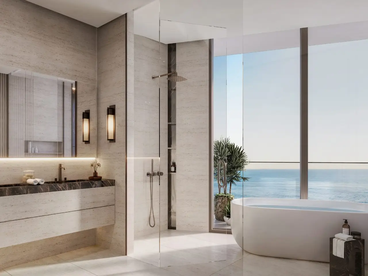 - Floor-to-ceiling glass façades offering uninterrupted sea and skyline views