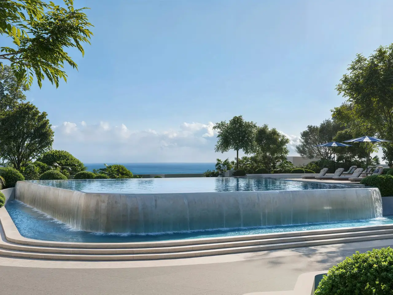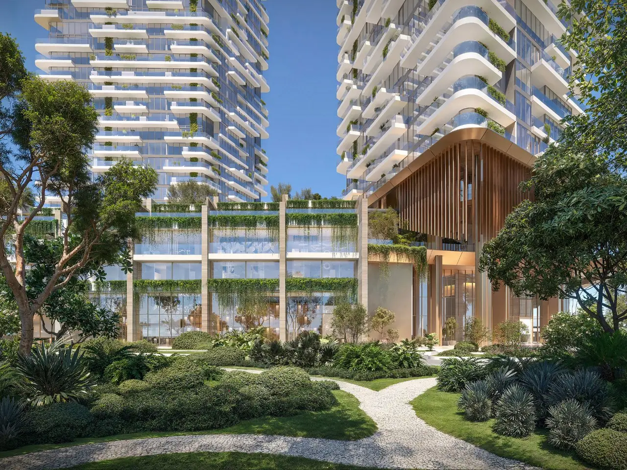 - Landscaped podium gardens, sky lounges, and private cabanas
