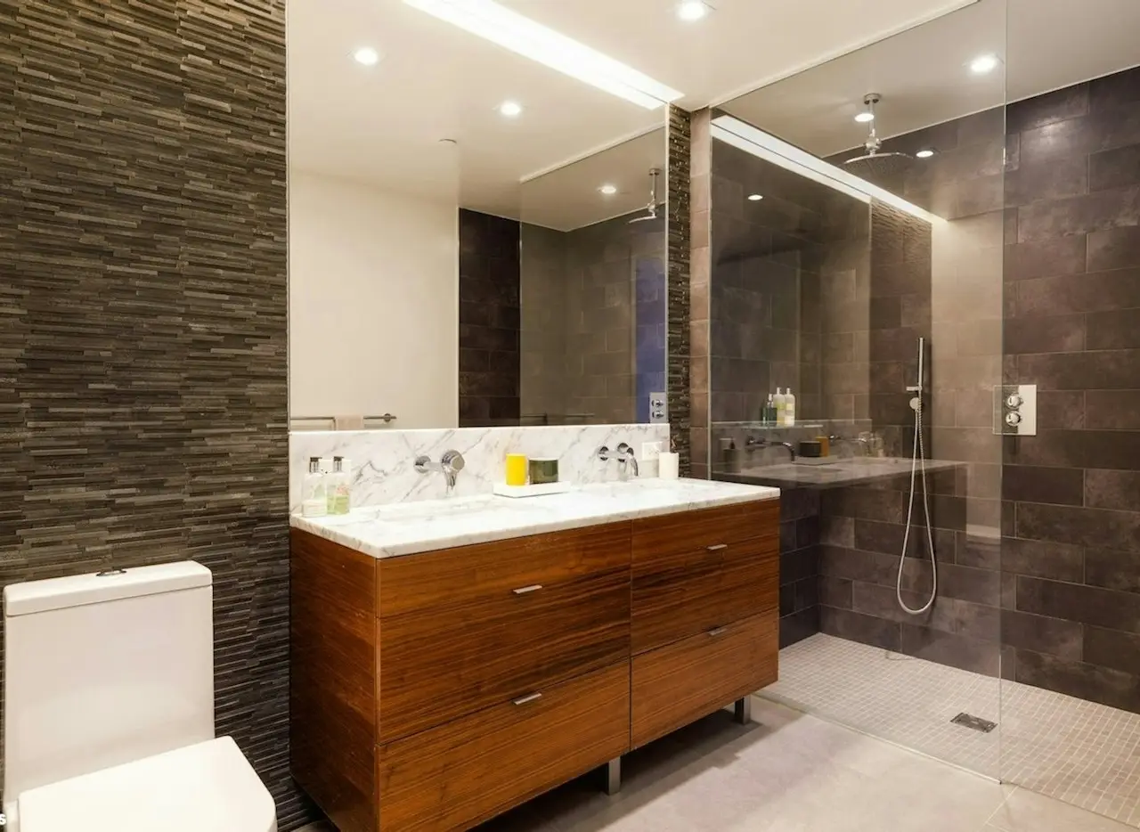Carrera marble bathroom with rain shower