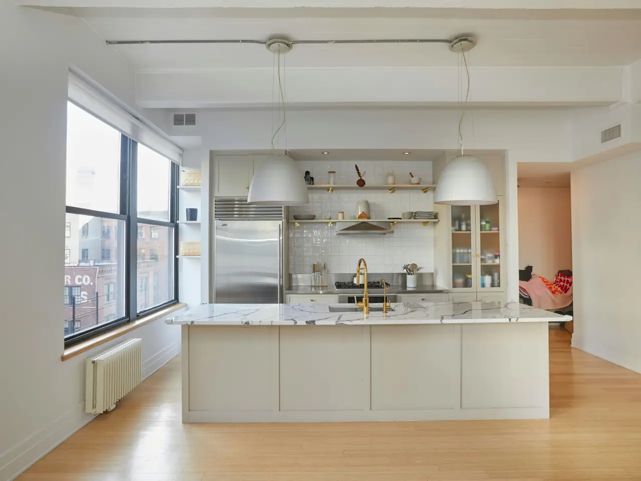 70 Washington Street - 3 Bedroom - Full service loft building in Dumbo. This renovated 1675' corner loft has 11'+ ceilings with huge windows and great light with views North and East. 2 full bedroom plus home office which functions as 3rd bedroom with three full baths is an amazing home in a full service 24-hour concierge building in the heart of Dumbo. Great amenities including new state-of-the-art gym, package room and large beautiful common roof deck. Renovated open kitchen and 3 full bathrooms with separate laundry room with storage and washer/dryer. The open windowed kitchen with fabulous light has Sub-Zero refrigerator, Viking cook-top, Thermador oven, Bosch dishwasher, wine cooler and Dornbracht fixtures. The primary bedroom features an en-suite bath with limestone tiles, a deep-soaking Jacuzzi tub, a separate glass-enclosed shower and a double-sink vanity with custom cabinetry storage below. 2nd bedroom has an en-suite bathroom and full bathroom outside the home office/3rdbedroom. Plenty of storage for strollers, bikes, etc. Oversized closets throughout, central air, bamboo wood floors throughout this spacious sunny home. DUMBO features charming cobblestone streets, Empire Stores, DUMBO market, restaurants, cozy cafes, art galleries, and much more. Proximity to the A/C/F trains, Citi Bike, and the water ferry located in Brooklyn Bridge Park.
