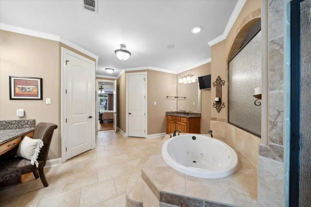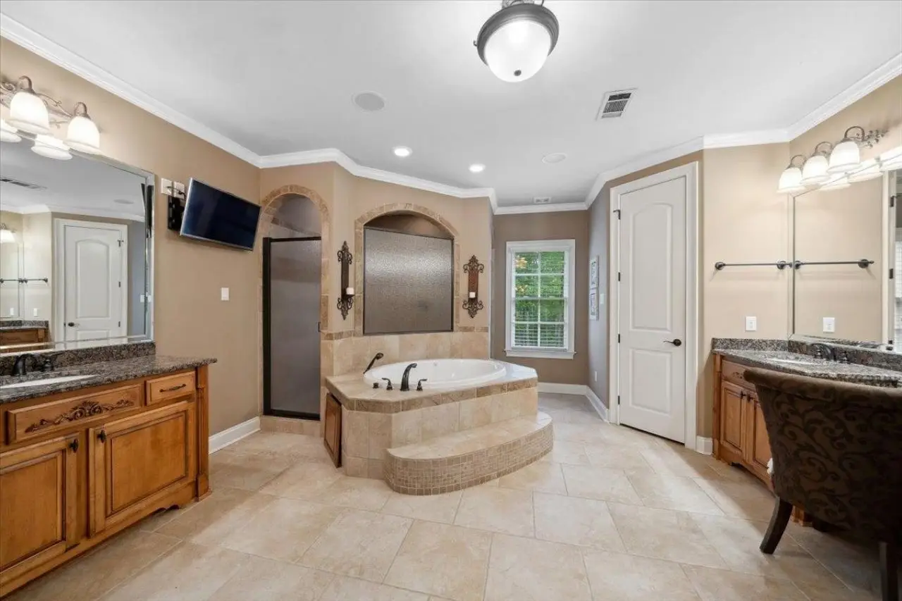 Stunning Resale in Aston Park! Located on a spacious corner lot over 1 acre, this beautifully maintained home offers the privacy and elegance you've been looking for. Built by Southern Serenity, renowned St. Jude Dream Home builder, this property boasts a desirable open floor plan ideal for both everyday living and entertaining. The chef's kitchen is a true showstopper, featuring stainless steel appliances, a custom gas stove with double ovens, and a large center island perfect for gatherings. The inviting primary suite is located on the main level and includes a luxurious bathroom retreat. Upstairs, you'll find 3 additional BRs, a media room, and a bonus room?plenty of space for family, guests, or hobbies. Storage is no issue with 2 walk-in attics, and functionality is key with 2 laundry rooms, central vacuum, and surround sound throughout. Enjoy the private backyard with a wooded backdrop from your covered patio, take advantage of the 4-car garage, perfect for vehicles, tools & toys.