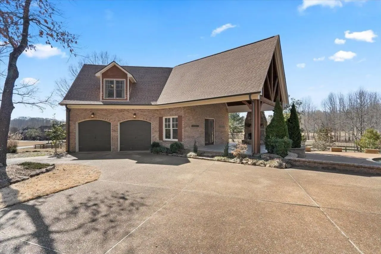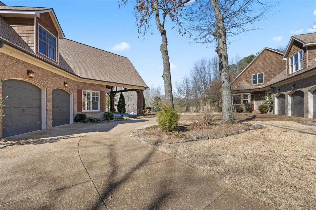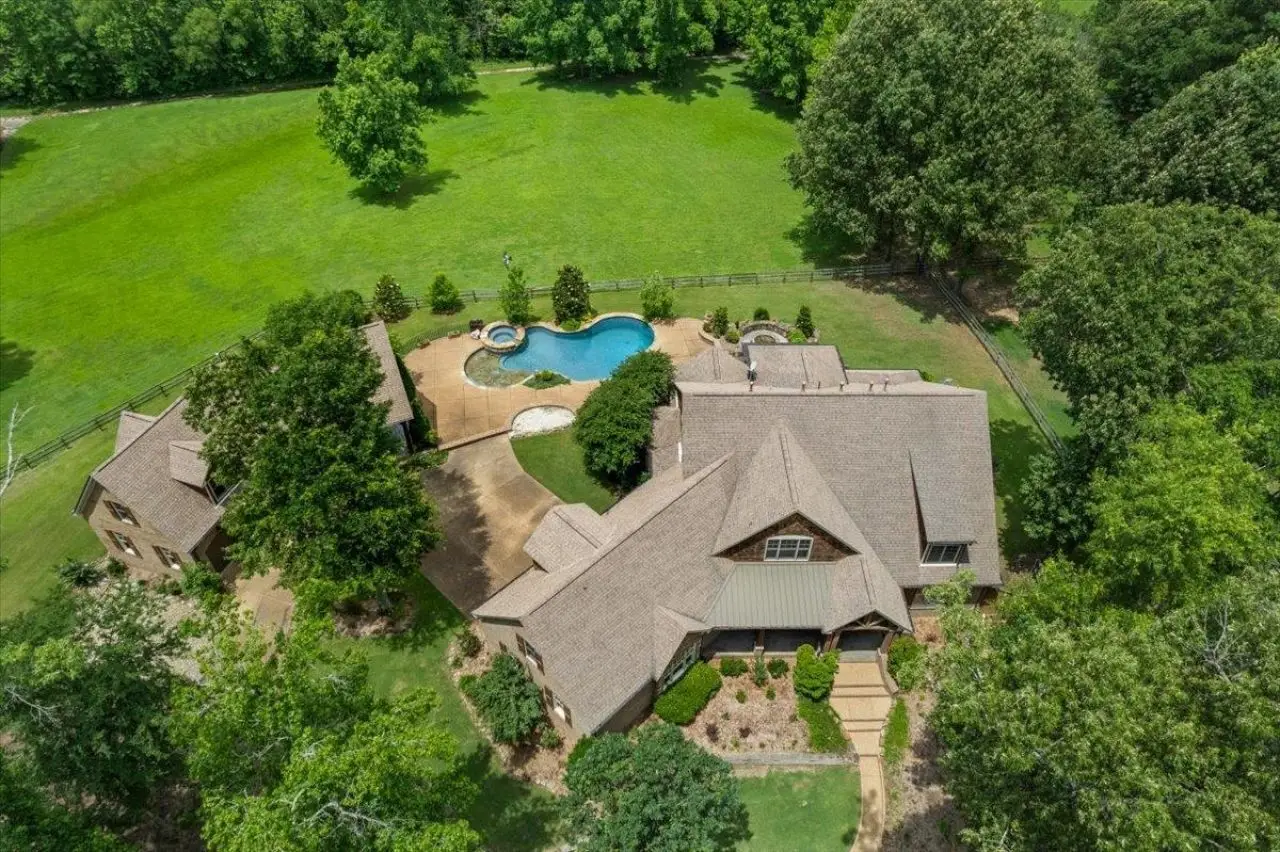 Discover the epitome of luxury living in Aston Park, Eads, TN, where elegance meets resort-style comfort. This stunning custom-built craftsman home offers panoramic walking trail and lake views, specially finished teak floors, and a bright, open-concept design. Designed for both refined living and grand entertaining, the home features a private pool and waterfall hot tub, an outdoor kitchen and fireplaces! Detached guest house has private parking, porch w/fireplace, living room, 2 bedrooms, full bath and kitchenette area. Covered porches provide seamless indoor-outdoor living, while the serene setting in Fayette County ensures privacy and exclusivity. Heated and cooled sqft includes guest house.