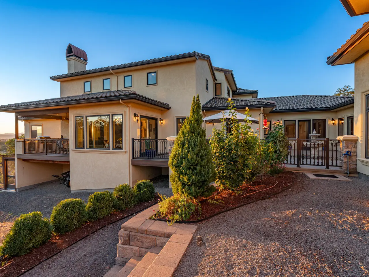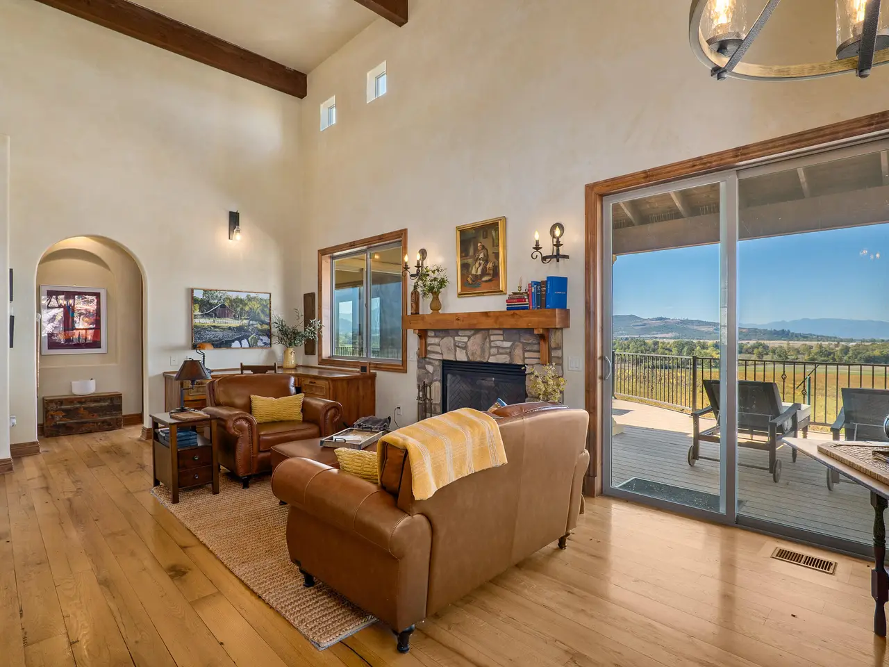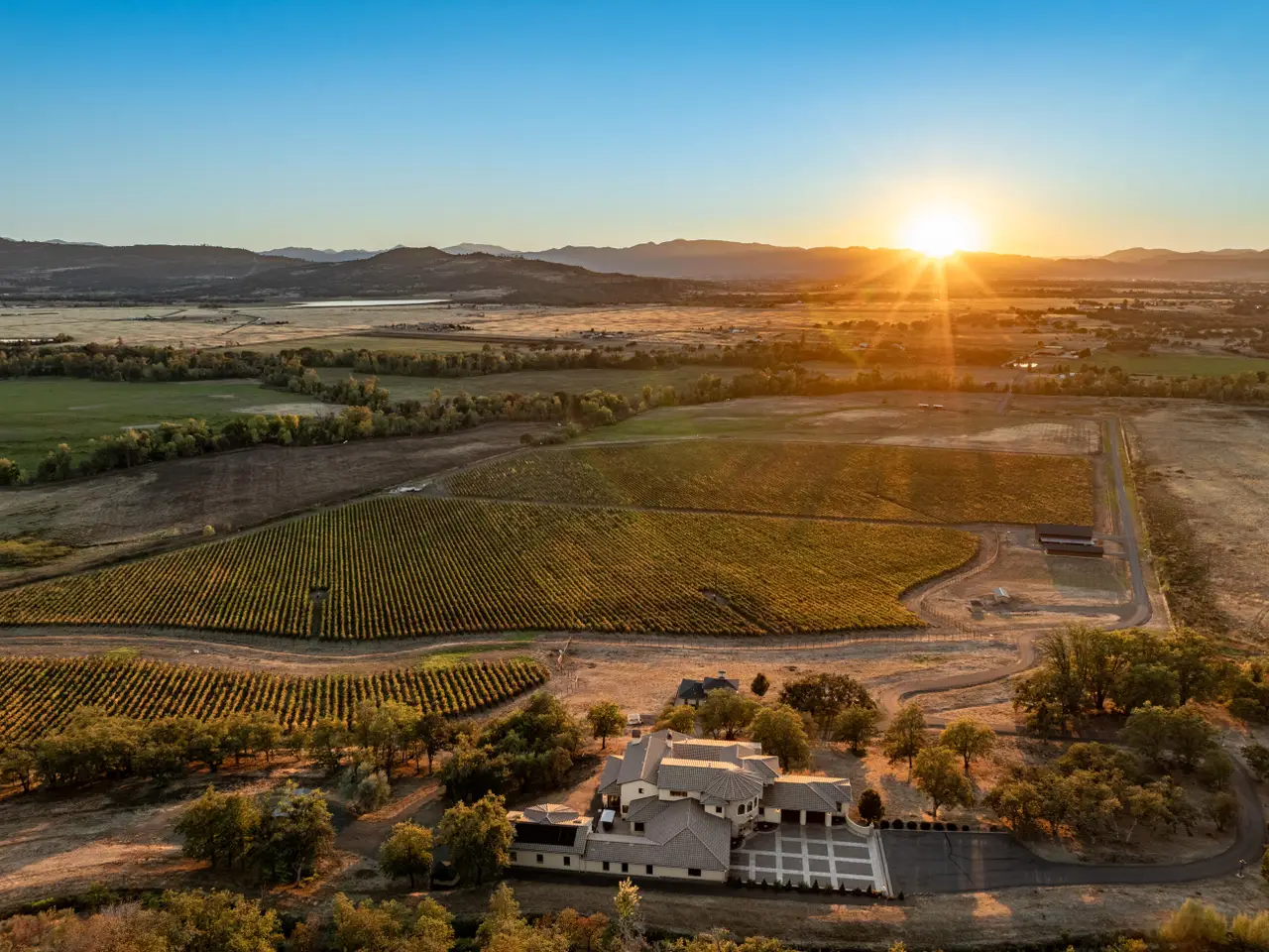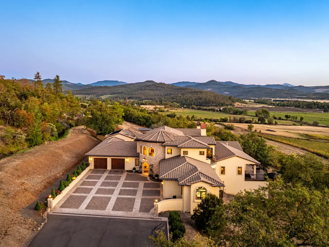 Surrounded by the natural beauty of Southern Oregon's Rogue Valley, this Mediterranean-inspired estate pairs timeless design with agricultural excellence. The 7,256 sq. ft. residence centers around a private courtyard and showcases cathedral ceilings, a grand entry, and a chef's kitchen opening to a grand great room and multiple outdoor living areas. The primary suite offers vineyard views, spa-style bath, and expansive deck, while amenities include an executive office, library, wine room, gym, sauna, and indoor saltwater pool. A matching 851 sq. ft. casita provides a luxurious one-bedroom guest retreat overlooking the vines. The 160-acre property features Celtic Moon Vineyards--42.5? acres of premium vines with 77.44 acres of irrigation rights. Located minutes from Eagle Point and Medford, this private estate captures the essence of Southern Oregon's wine country lifestyle.