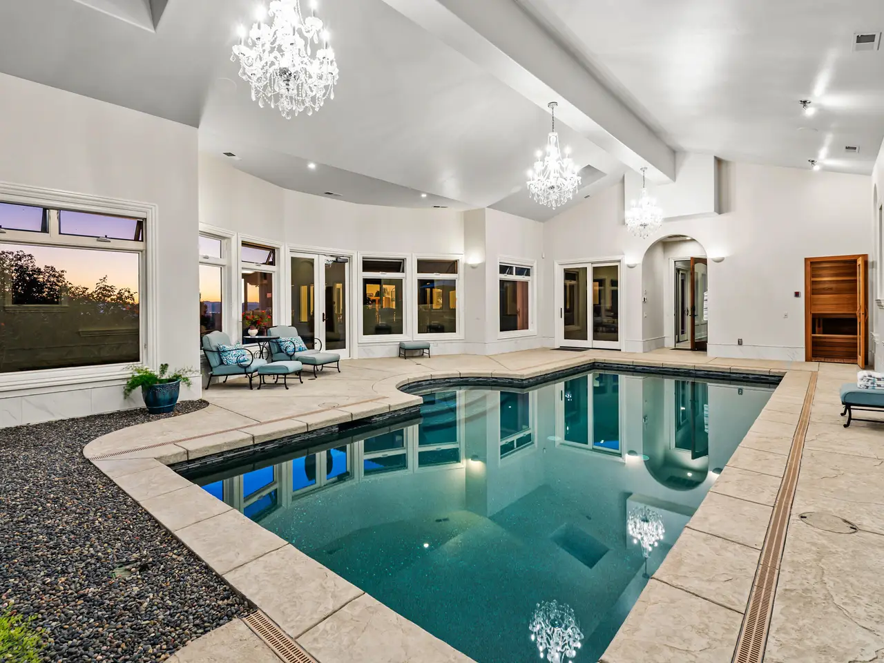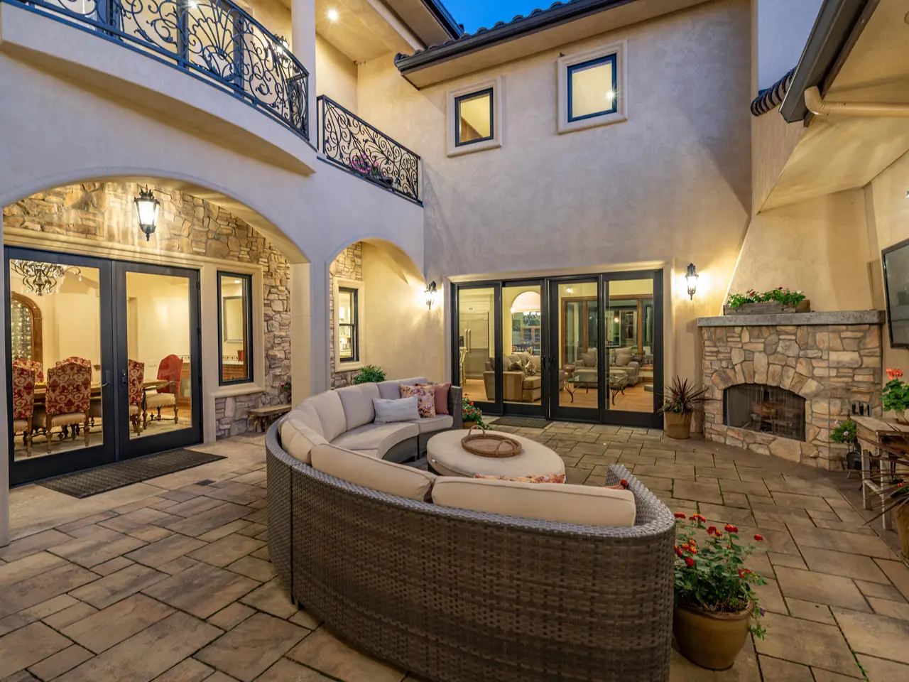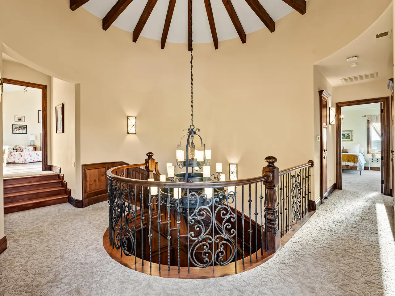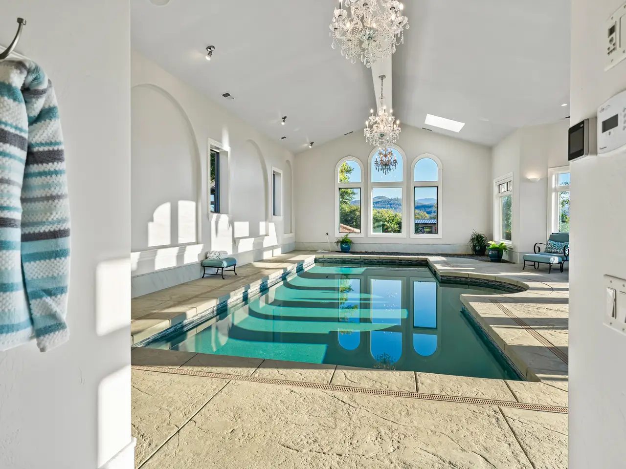 Surrounded by the natural beauty of Southern Oregon's Rogue Valley, this Mediterranean-inspired estate pairs timeless design with agricultural excellence. The 7,256 sq. ft. residence centers around a private courtyard and showcases cathedral ceilings, a grand entry, and a chef's kitchen opening to a grand great room and multiple outdoor living areas. The primary suite offers vineyard views, spa-style bath, and expansive deck, while amenities include an executive office, library, wine room, gym, sauna, and indoor saltwater pool. A matching 851 sq. ft. casita provides a luxurious one-bedroom guest retreat overlooking the vines. The 160-acre property features Celtic Moon Vineyards--42.5? acres of premium vines with 77.44 acres of irrigation rights. Located minutes from Eagle Point and Medford, this private estate captures the essence of Southern Oregon's wine country lifestyle.