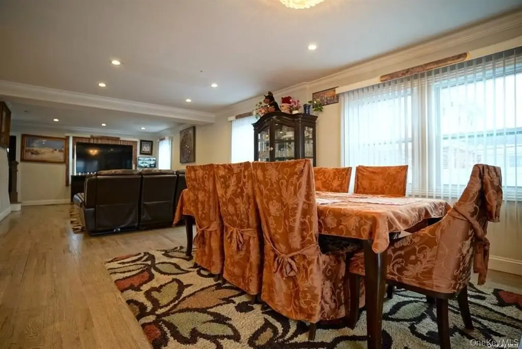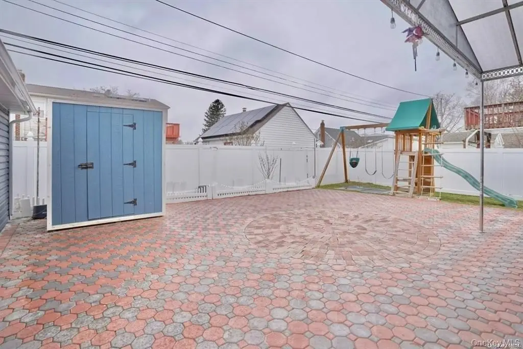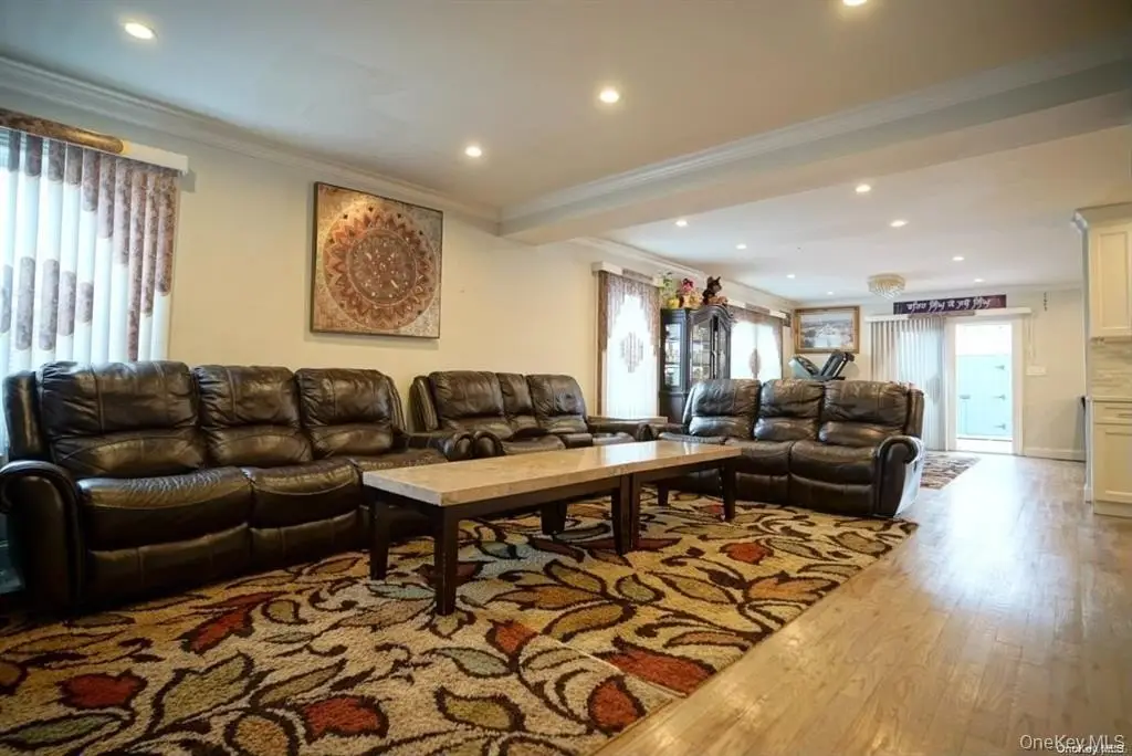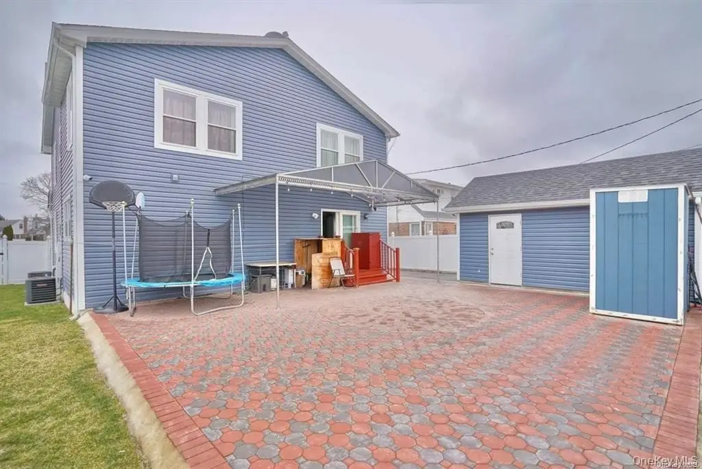Welcome to 2382 Jefferson Street, a beautifully renovated Colonial-style residence in the heart of East Meadow. Fully updated in 2018, this spacious home offers five bedrooms and three full bathrooms across two levels, including a generously sized bedroom and full bath on the main floor. The modern eat-in kitchen features stainless steel ENERGY STAR; appliances, quartz countertops, and custom cabinetry, flowing seamlessly into an open-concept living and dining area with crown molding. Upstairs, the expansive primary suite includes a private full bath and walk-in closet, along with three additional bedrooms and another full bath. Hardwood floors run throughout, and additional highlights include Anderson windows, updated bathrooms, a tankless water heater, and a full finished basement for flexible living or recreation space. The private backyard is fully fenced with PVC fencing and includes a paver patio and deck—ideal for outdoor enjoyment. Located in close proximity to public transportation, shops, and other community amenities, this home blends comfort, convenience, and modern upgrades for Nassau County living.