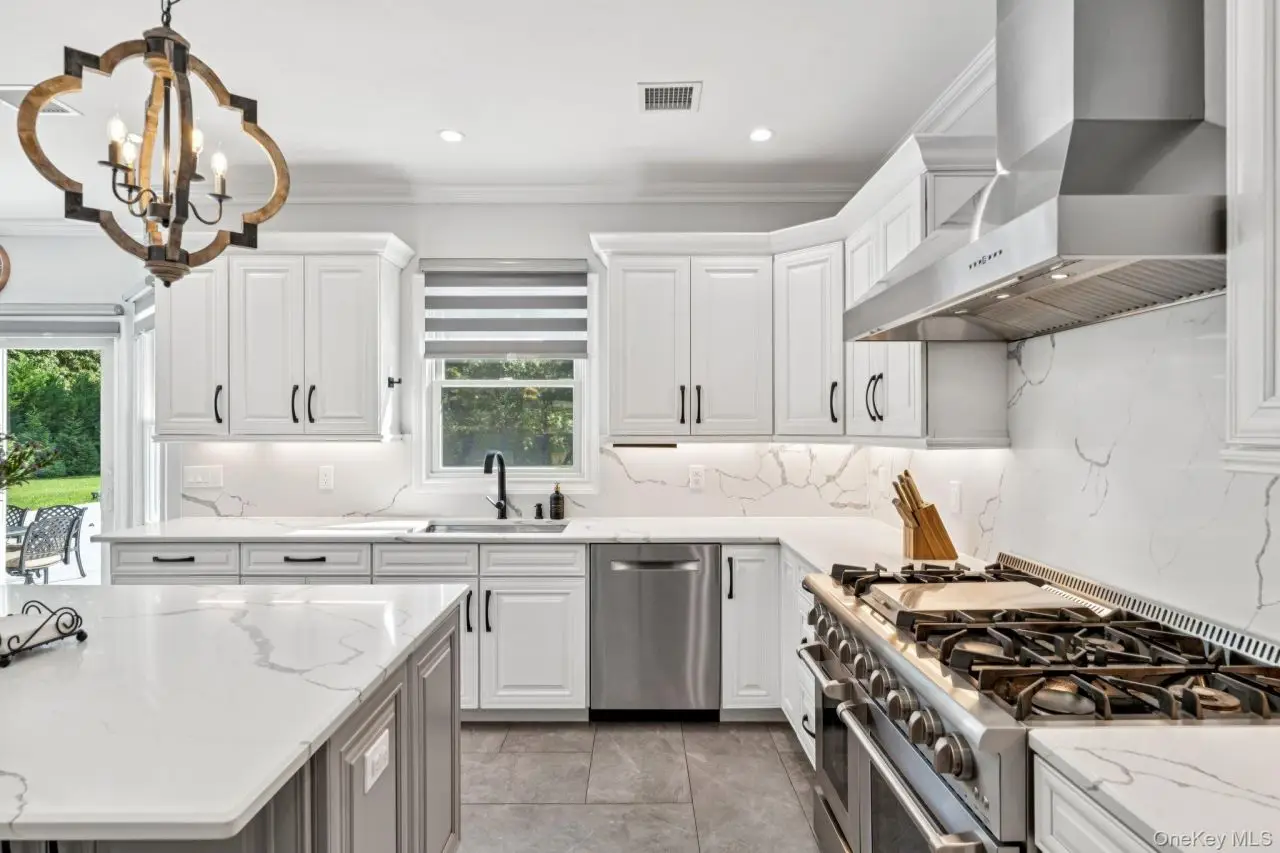 Luxurious newly built custom Colonial on 1.3 acres offers the scale and presence of a true East Northport estate. A long and private drive takes you into a Center Island courtyard and leads you into a three + garage and a welcoming Impressive front approach, with potential unfinished loft over garage for more living space. Wrapped in Stucco and Travertine stone siding. Enter in a double wrought Iron custom doors, soaring ceilings and oversized windows fill the home with light. Chef's Kitchen with a 48 six-burner range, state of the art appliances, Quartz island and custom White cabinetry flows into the family room with natural wood-burning fireplace.The main level features a bedroom suite and full bath for guests or multi-generational living, a large bonus room and access to a full unfinished basement with outside entrance. Central vacuum system provides modern convenience throughout.Upstairs, bedrooms are generously proportioned with walk-in closets, while bathrooms offer spa-quality finishes with floor-to-ceiling designer 3D tile. Second floor full laundry room adds everyday ease.Step out into a backyard designed for resort living, with a natural gas heated saltwater pool, spillover spa, and porcelain decking that stays cool underfoot. Natural gas BBQ, Surround sound Bose speakers, Expansive flat lawns, manicured landscaping surrounded by giant evergreens each with there own water source right down to the drive way entrance for a possible water feature and electric for entry gates. Thoughtful planning on this unparalleled residence right down to an amazing Organic vegetable garden complete the estate.