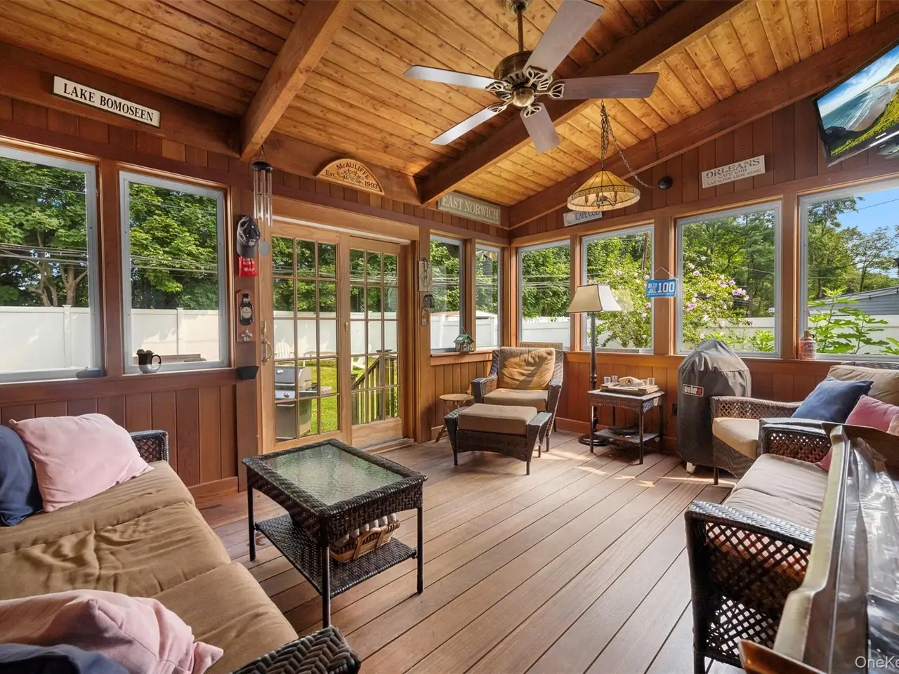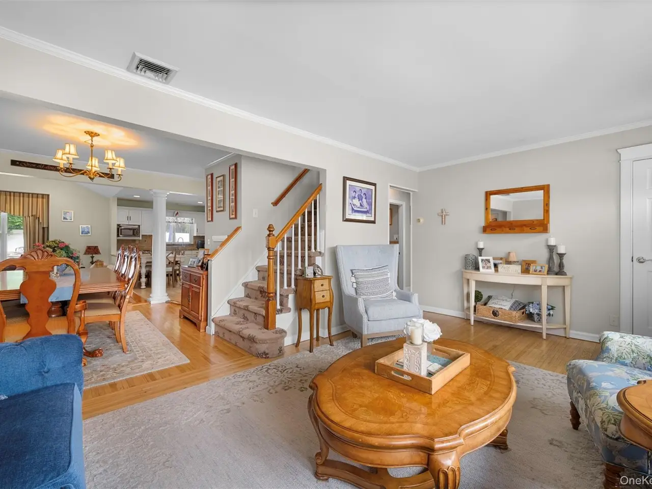 Welcome to this beautiful, updated home in one of the most desirable sections of East Norwich. Large expanded cape filled with natural light. This home features a formal living room and dining room, an open and updated eat-in kitchen and a large step down den with cathedral ceilings and fireplace. There is an enclosed patio that offers views of the yard and is a great place to enjoy all four seasons through the walls of windows. There is great flow for entertaining. There is a first floor primary bedroom and a full bath. The second floor has three spacious bedrooms and another full bath. Beautiful yard with outdoor kitchen and hot tub. Convenient to shops, restaurants and schools. Meticulously maintained. This house is a must see!