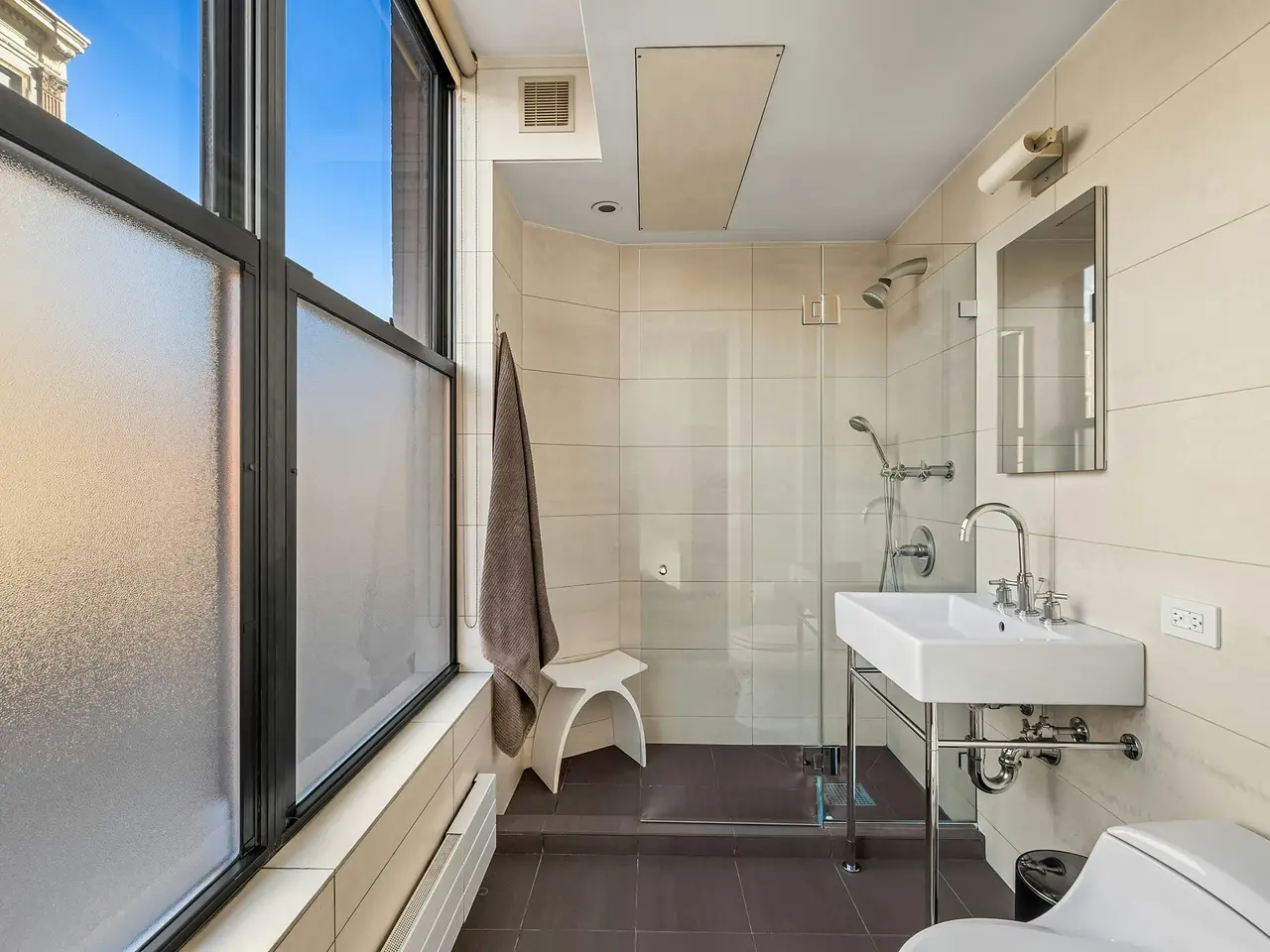 A rare find in the East Village: Full floor loft in a boutique, pre-war condo building, with key-lock elevator, wood-burning fireplace, and corner exposure with 17 windows offering magnificent light and vibrant street views of this lively corner of the lower East Village/LES. This two-bedroom, with two full bathrooms and an attractive blend of modern and industrial design, is in excellent move-in condition and offers a level of comfort that matches the level of convenience of this East Village location. Entering directly from the elevator, past the windowed guest bathroom, into this bright and generously sized loft, the sense of comfort and calm is immediately felt. The expansive living area is perfectly proportioned and anchored by a fully-appointed open chef's kitchen with breakfast bar, premium appliances - SubZero fridge, GE Monogram stove with a vented Bosch hood, Asko dishwasher, Insinkerator disposal - and a copious amount of custom oak cabinetry storage. A wood-burning fireplace is set into a wall of exposed brick opposite from a run of north-facing windows that provide pleasant even light throughout the day. Gleaming refinished pine wood floors, Venetian plaster walls and the exposed brick lend a subtle feeing of distinctive texture to this modern home. Down the hallway, beyond the guest bedroom and a hidden alcove of display shelving and deep closet storage, is a luxurious primary bedroomsuite occupying the corner space, with two walls of oversized windows and a striking view of the surrounding buildings. A massive spa-like en-suite bathroom, with ceramic and limestone tiling, features a large Zuma dual air Jacuzzi deep-soaking tub, separate rain head shower stall and towel warmer. Additional features include dual-zoned, Nest controlled central HVAC, Runtal radiator system, Miele washer/dryer and basement storage space. Built in 1900, this former commercial building was converted into six full floor residential condos in 2008. Great (and real!) neighborhood location: welcoming tree lined block; mom and pop stores; supermarket at your doorstep; a run of fantastic restaurants and bars up and down Avenue B; Subway only 3 blocks away. Citibike station across the street. Dog run at Tompkins Square Park, 5 blocks away. Easy access to East Village and Lower East Side nightlife.