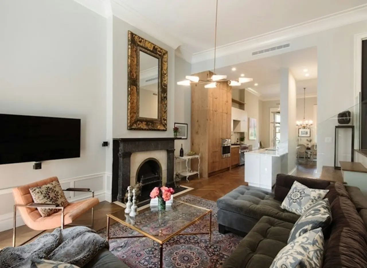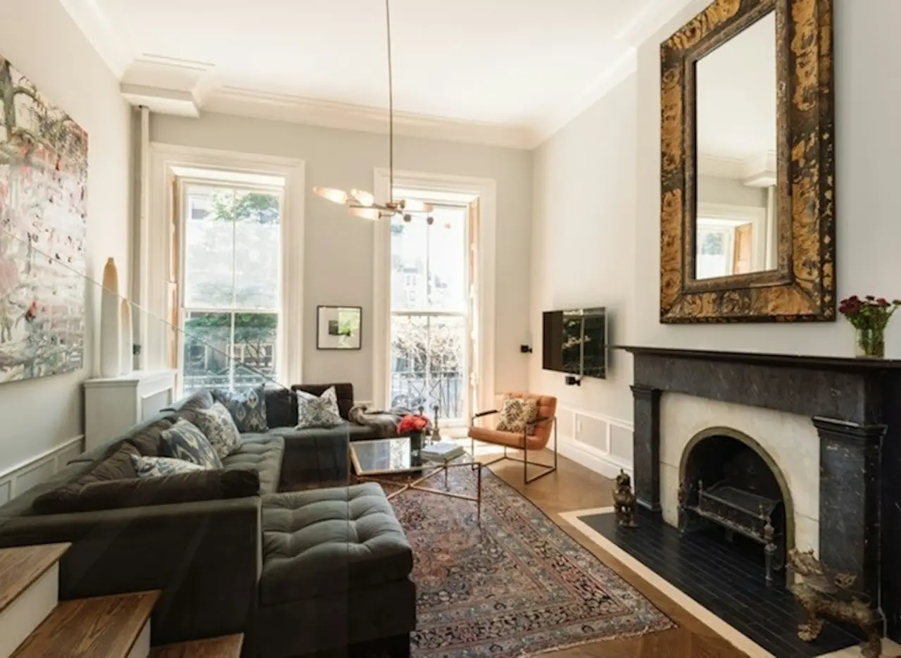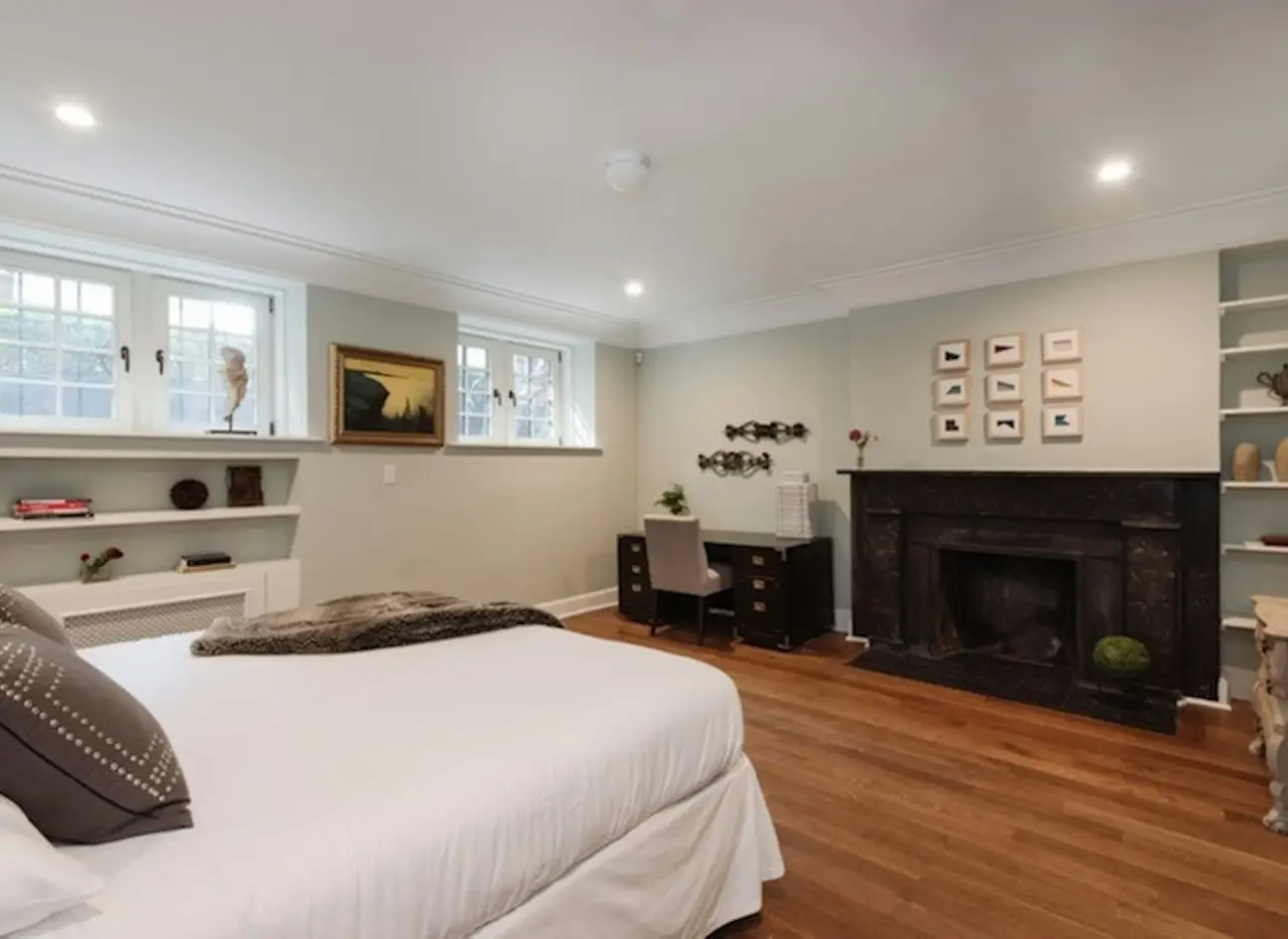 This beautiful garden apartment located in an elegant townhouse has been fully renovated and converted to a 4 bedroom, 3.5 bath home. The parlor floor has a spacious living room, bright dining room, chef's kitchen, bedroom and bath, cozy library with additional powder room and all with modern Chevron floors, 13" foot ceilings, central air & massive windows. French doors off the library to your private balcony leading to the lush garden. The Italian, Aster kitchen with breakfast table, Sub-Zero fridge, 2 ovens, 36" Viking range & wine cooler is open to the living room and formal dining room which faces the garden. Two of the four bedrooms are en-suite and a primary has French doors leading to the original, sunken garden from 1920 with mature plantings. Another primary bedroom has a double sink, mosaic & marble tiles & a walk-in closet. This home is perfect for those looking for both a mix of old & new world charm all in the convenience of the heart of Greenwich Village just off the Gold Coast.