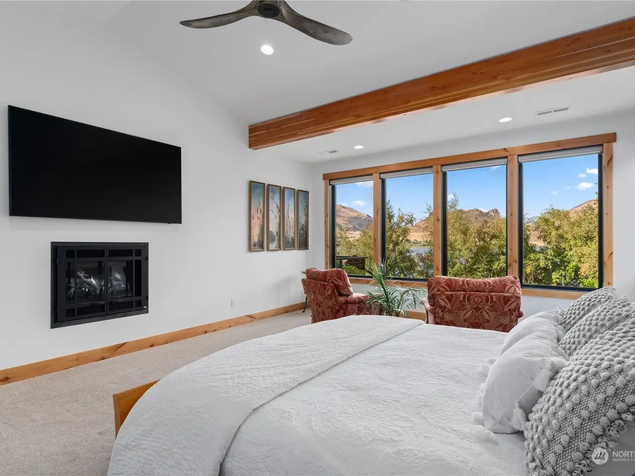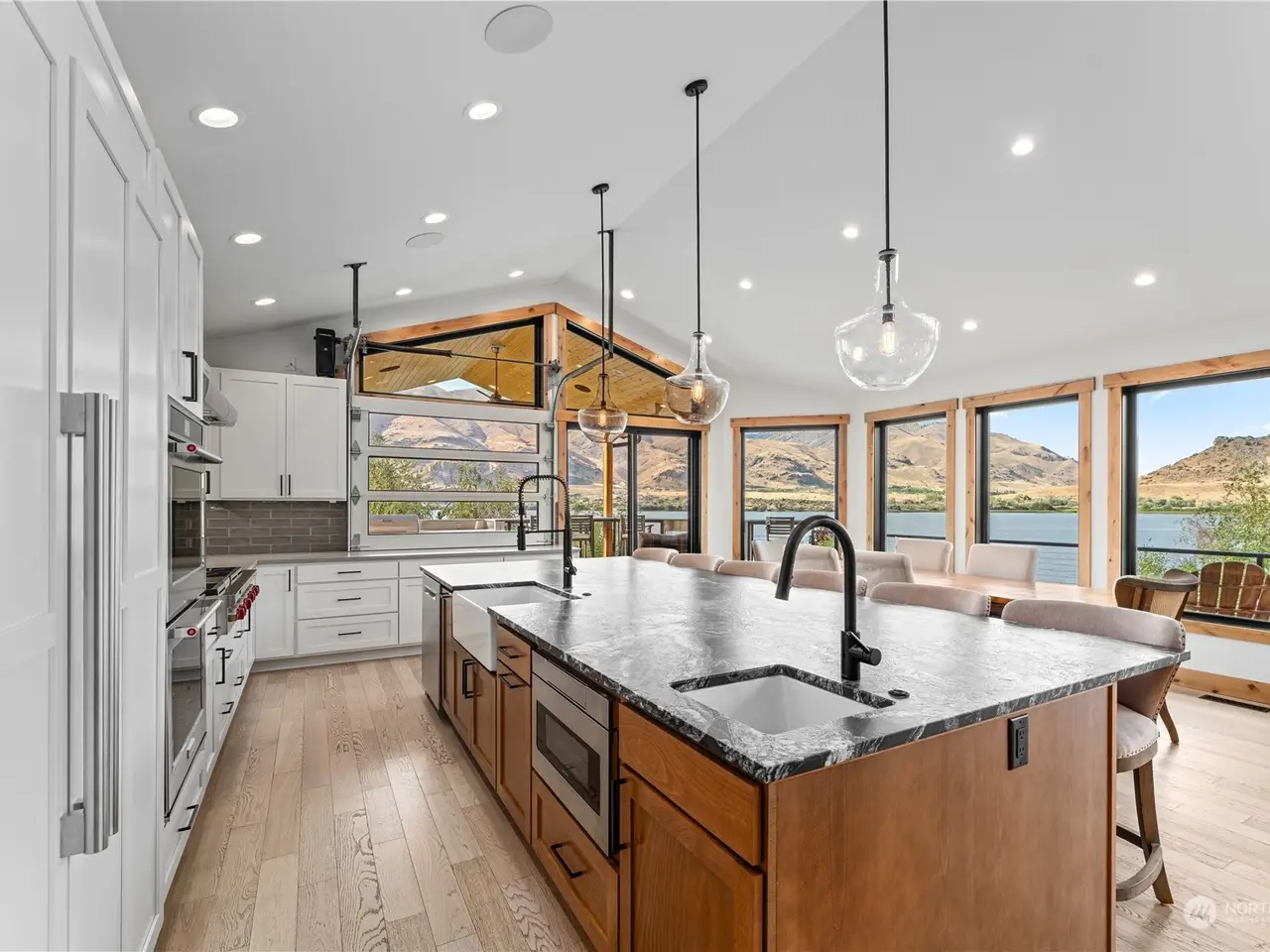 One-of-a-kind, 3bd/6bth 5,247sf home w/ 535' of waterfront on the Columbia River; thoughtfully designed for indoor/outdoor living & entertaining. The main level features a spacious great room w/ high ceilings, fireplace, dining room & a kitchen w/ high-end appliances, walk-in pantry, quartz countertops & granite island. Glass sliding doors open to wraparound deck & outdoor kitchen w/ fireplace, lounge & dining area. Primary suite w/ fireplace, spa-like bath, radiant heated floors & walk-in closet. 2nd bedroom w/ on-suite bath. Upper level loft w/ open office, bath & view balcony. Lower level w/ media room & kitchenette/bar, 3rd bedroom, bath, gym & swim spa/hot tub combo. Elevator, EV charger. Private dock w/ boat lift. Turn-key, furnished.