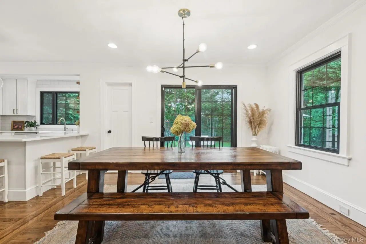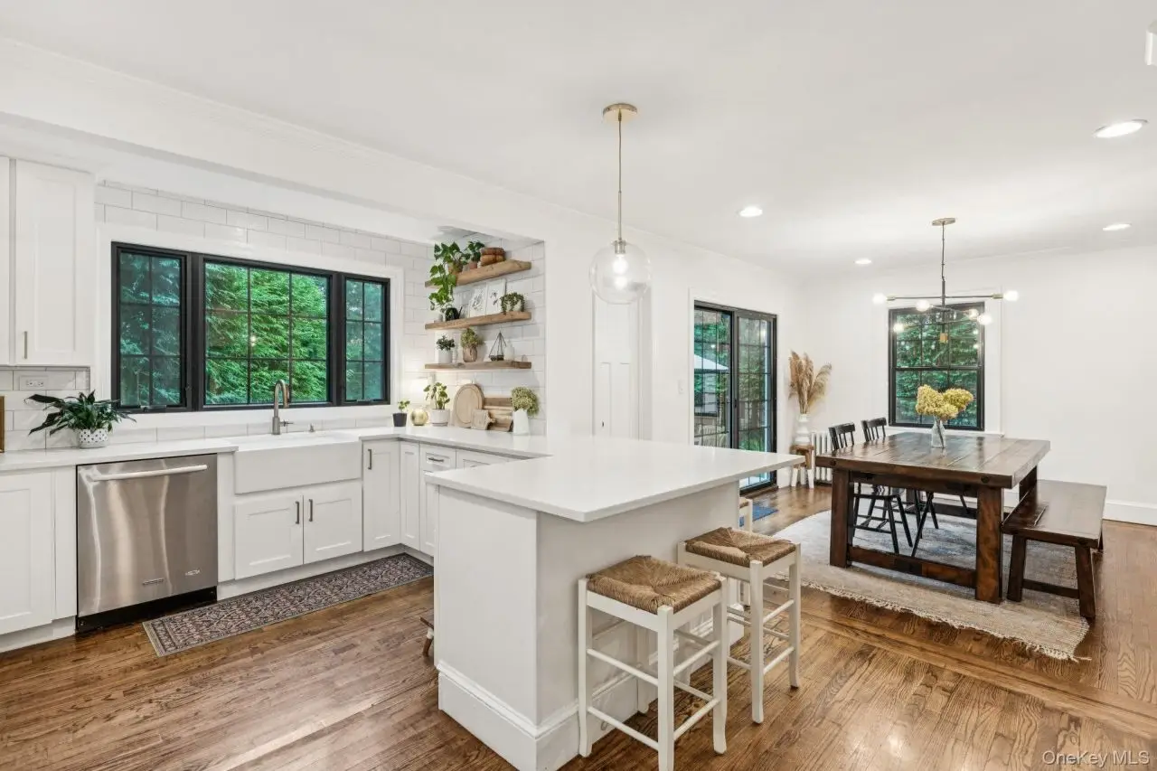 Welcome to this charming Tudor style home, in the heart of East Williston, offering 3 bedrooms and 1.5 baths in pristine, move in ready condition. The inviting living room features a cozy fireplace and sun-filled sunroom, while the beautiful kitchen with breakfast bar flows seamlessly into a dining and living spaces. Hardwood floors run throughout the home, adding warmth and elegance. Upstairs you'll find three generously sized bedrooms and a full bath. Outdoor entertaining is a breeze with a private cozy patio-perfect for relaxing or hosting.