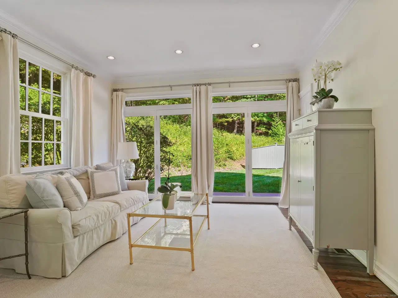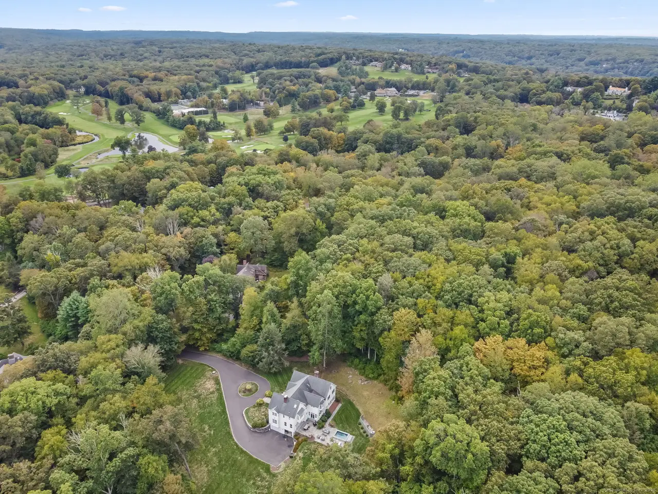 Exceptional 6 bedroom colonial with custom 12-person spa in a private, tranquil setting. Make your way past the 4th hole of Aspetuck Valley CC then turn down the driveway. Pass classic stone pillars as you arrive at this elegant oasis. Be wowed by the timeless curb appeal & extensive masonry. Light streams in through the 2-story window in the welcoming foyer. The formal living & dining rooms share an impressive back-to-back fireplace as well as walls of windows & French doors. The gourmet kitchen is a show-stopper featuring inset custom cabinetry, top-of-the-line appliances, quartz tops, 2 drink drawers, & endless storage. Gather by the stone hearth in the family room or relax in the sunny back den (w/ full bath). Work from home in the handsome front office with its built-in bookshelf wall. Very practical mud/laundry room & charming half bath complete the main level. Head out back through one of the many French doors and spend hours all year round on the elegant bluestone patio sitting by the hardwired gas firepit and relaxing in the in-ground 8x12 gunite spa. Upstairs retreat to the phenomenal primary suite with its oversized dressing room, additional walk-in closet, cathedral ceiling, fireplace, & out-of-this-world spa-like bath. 5 more good-sized bedrooms, 2 more full baths, & an upstairs hang-out space with a 5th fireplace round out the 2nd floor. The basement offers a finished space with built-ins as well as tons of storage & a home gym. 14 miles of hiking trails nearby.