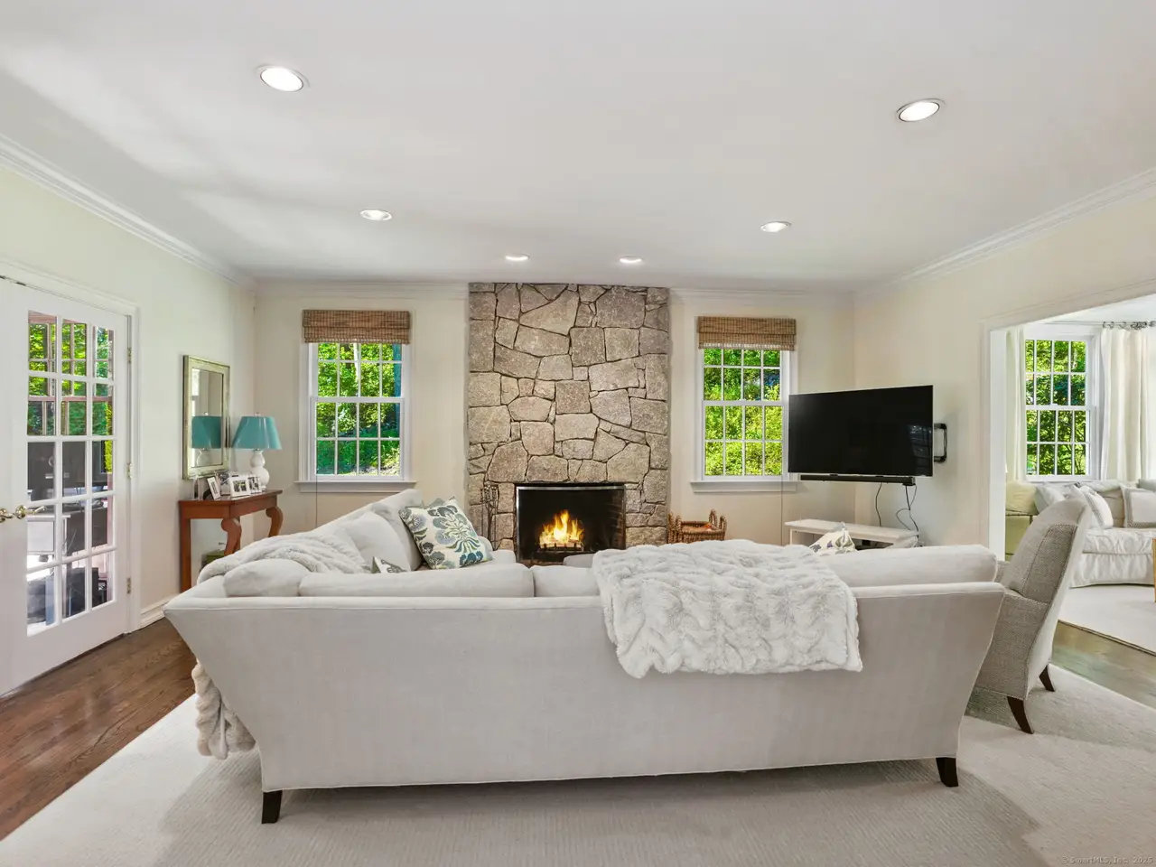 • Stone hearth in family room