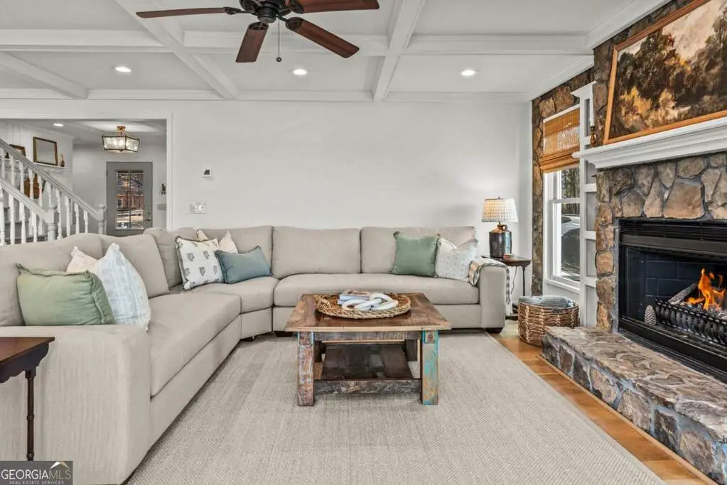 Stone fireplace in the beautiful living area
