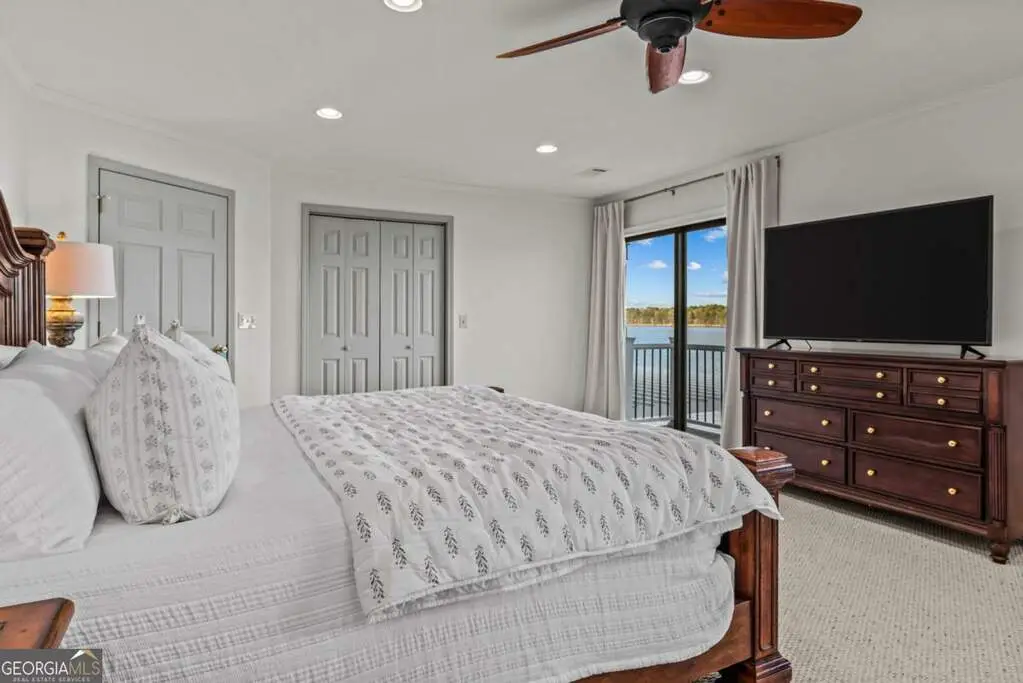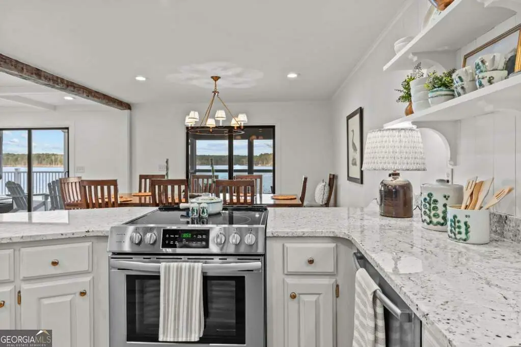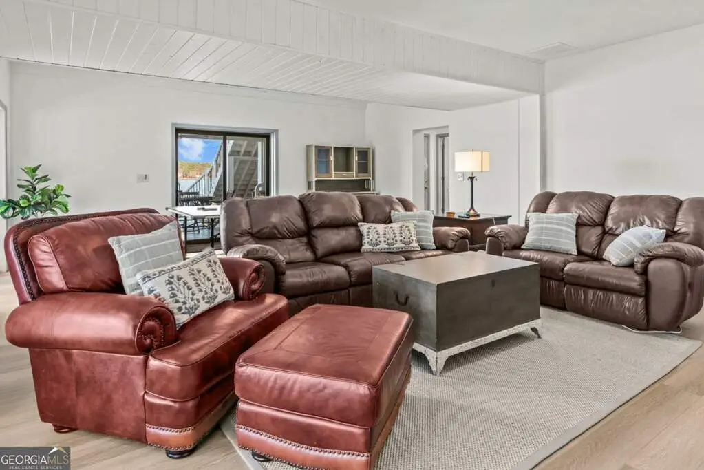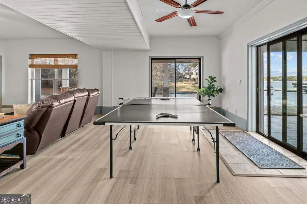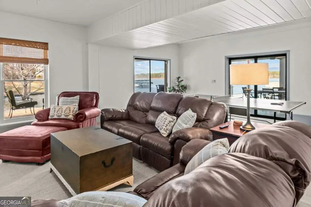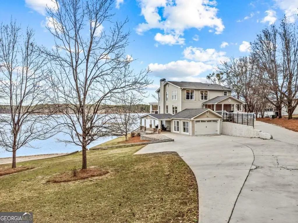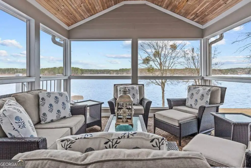 Welcome to this breathtaking 4-bedroom, 3.5-bathroom lakefront home, perfectly situated on a spacious lot with over 250 feet of pristine water frontage in Martin Oaks on the coveted shores of Lake Oconee. Offering unparalleled, panoramic views of the sparkling lake and surrounding natural beauty, this exceptional property is a true haven for waterfront living. The spacious living areas are designed to take full advantage of the lake views, with expansive windows that flood the home with natural light and provide stunning views from nearly every room. The open concept plan offers a beautiful living area with stone fireplace, gourmet kitchen with granite and stainless steel appliances, spacious pantry, dining room and inviting screen porch, all overlooking the lake! Finishing the main level is a generous guest bedroom and half bath. Upstairs you will find the owner's suite, a peaceful retreat where you can watch the sunrise from your bed. Offering a private balcony overlooking the lake, spa-like en-suite bath, and generous closet space, it is ideal for relaxing. Two additional bedrooms and full bath provide plenty of space for family or guests on the second floor along with a laundry room. On the terrace level you will find an oversized living space - perfect for an additional living room, bunk room or recreation room for everyone to enjoy! There is another full bath and laundry room plus extra storage for all of your boat and lake items. Step outside to your own private paradise. The property boasts a max dock with 10 feet of water depth along with two PWC lifts. It offers deep water access perfect for boating, fishing, and all your water activities. Enjoy the adjacent beach and cove, ideal for relaxing with family and friends by the water's edge. The home offers multiple outdoor entertainment areas - upper deck with pergola that has expansive views, two lower level porches, one overlooking the private cove and one with Main Lake views. Whether you're seeking a year-