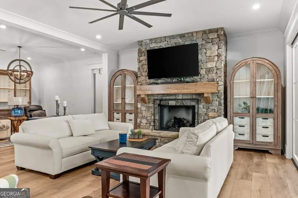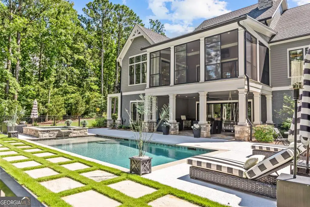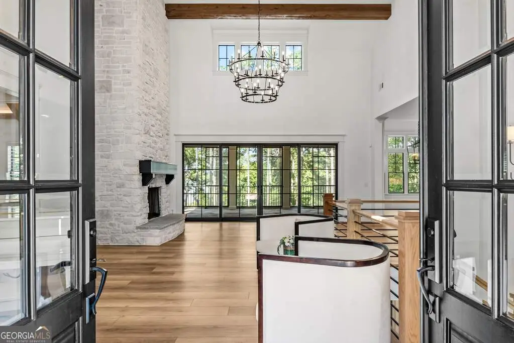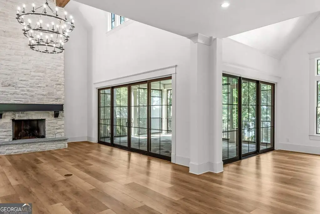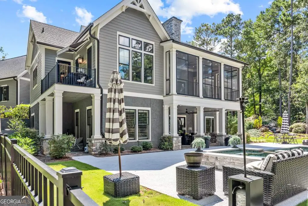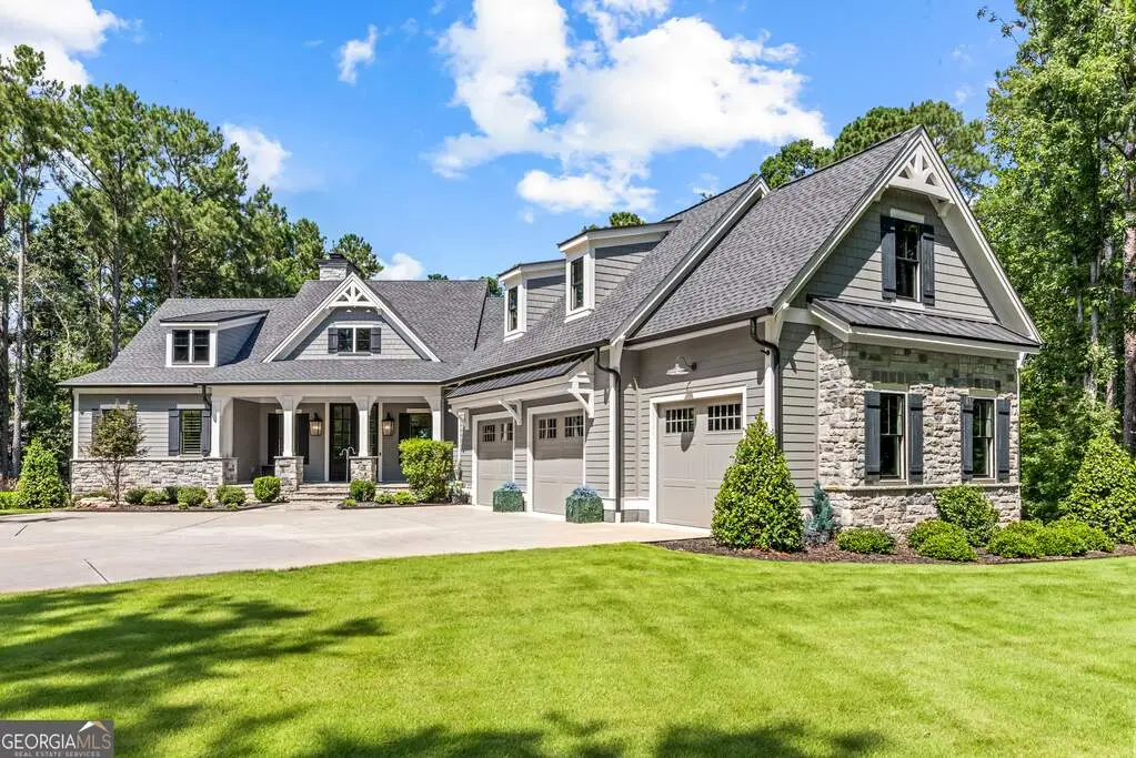 Exquisite Custom Home Overlooking Lake Oconee Nestled on a 1.45-acre flawlessly manicured lot, this magnificent custom-built home exemplifies premier craftsmanship and luxurious living. Perfectly designed to capture both sophistication and comfort, this property is a sanctuary for those seeking a home that stands apart in elegance and prestige. Welcome to Your Dream Home Experience expansive lakeside residence, featuring 4 spacious bedrooms and 3.5 meticulously designed bathrooms. Stepping through the front door, you are greeted by an airy open floor plan and soaring ceilings adorned with wood beam accents and a stunning floor-to-ceiling stone fireplace. A Culinary Haven The gourmet chef's kitchen is the epitome of luxury, outfitted with custom cabinetry and a porcelain island. It's well-equipped with premium appliances, including an adjacent wet bar complete with a Miele built-in coffee maker and a wine cooler, perfect for entertaining guests. Effortlessly extend your gatherings to the all-season screened patio through multi-slide glass doors that merge the great room and dining area with the natural beauty of the outdoors. Private Retreat The main floor is home to the stunning primary bedroom, and a spa-like primary bathroom that features timeless fittings and a custom closet tailored. Additional organized storage solutions are included in the spacious laundry and mudroom, designed with built-in cabinets and cubbies for convenience and style. Elegance Across Levels An elegant staircase leads to the terrace level, offering another open floor plan with a second captivating stone fireplace. This space hosts a versatile great room, dining area, and three impeccably appointed bedrooms. The outdoor experience continues to a summer kitchen exemplifying both functionality and beauty. Luxury Amenities The home's outdoor oasis includes a breathtaking pool with a sun deck, spa and an exquisite water feature that cascades into a Koi fish pond. Children and pets can