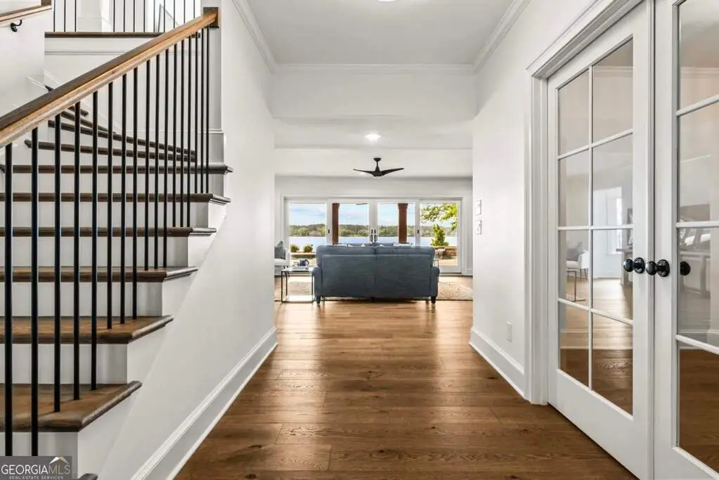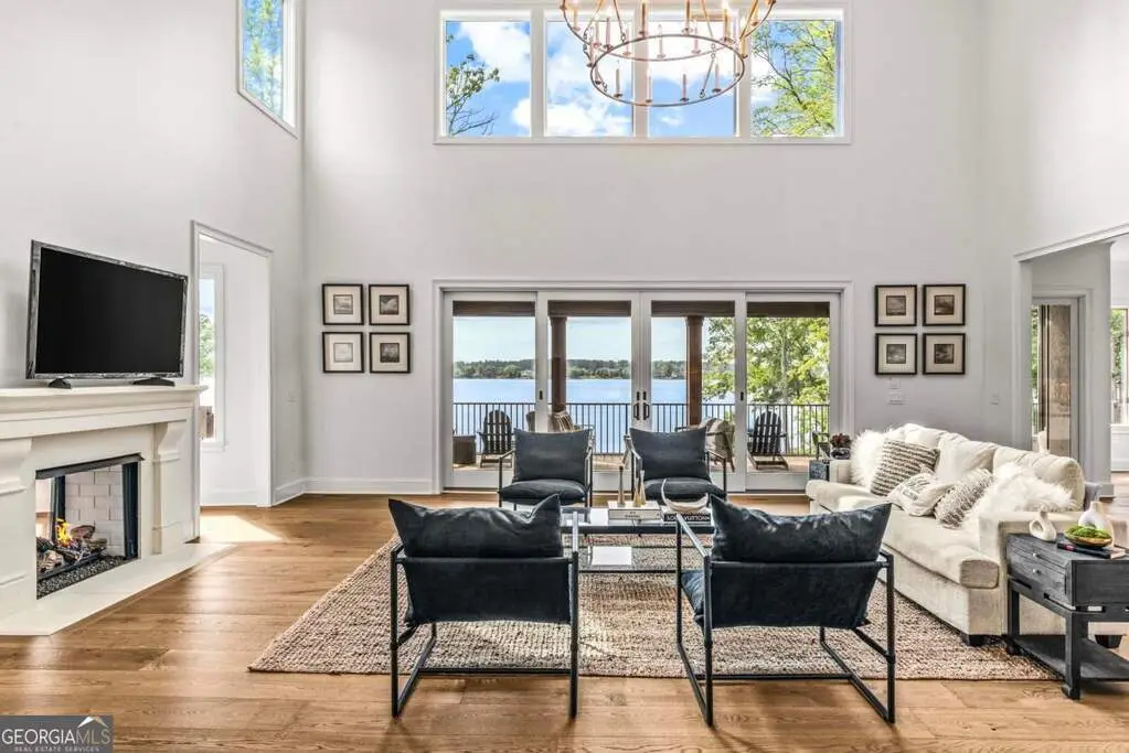 OUTSTANDING PANORAMIC VIEWS - 6BR/6.5BA LAKEFRONT HOME IN REYNOLDS AT GREAT WATERS!! WELCOME TO YOUR STUNNING LAKESIDE RETREAT, COMPLETELY REMODELED IN 2024 AND BOASTING OVER 325 FT OF LAKEFRONTAGE WITH UNPARALLELED VIEWS. THIS EXCEPTIONAL HOME FEATURES AN OPEN FLOOR PLAN DESIGNED FOR MODERN LIVING AND ENTERTAINMENT. WITH SOME OF THE BIGGEST VIEWS OF THE LAKE AND AMPLE SPACE FOR ENTERTAINING, THIS HOME IS A MUST-SEE FOR THOSE SEEKING LUXURY, COMFORT, AND UNPARALLELED LAKESIDE LIVING. DISCOVER YOUR NEW OASIS WHERE EVERY DETAIL EXUDES SOPHISTICATION AND RELAXATION. UPON ENTRY, YOU ARE GREETED WITH A TWO-STORY FOYER AND A GREAT ROOM WITH SLIDING DOORS AND A WALL OF WINDOWS THAT PROVIDES PANORAMIC LAKE VIEWS!! STEP OUTSIDE ONTO THE SCREENED PORCH OVERLOOKING THE NEWLY BUILT POOL AND FIRE-PIT AREA, PERFECT FOR AL FRESCO DINING AND RELAXATION. PREPARE CULINARY DELIGHTS IN THE GOURMET KITCHEN WITH TOP-OF-THE-LINE WOLF AND SUB-ZERO APPLIANCES, A LARGE QUARTZ-TOPPED ISLAND, LAKESIDE DINING, AND A WALK-IN PANTRY. HARDWOOD FLOORS FLOW THROUGHOUT, COMPLEMENTING THE ELEGANT AESTHETIC. THE OWNER'S PRIVATE WING FEATURES A SPACIOUS FIRESIDE BEDROOM, A PRIVATE STUDY, AND A LAKESIDE SITTING AREA. THE LUXURIOUS BATHROOM HAS DOUBLE VANITIES, HIS/HER CLOSETS, AN OVERSIZED WALK-IN SHOWER, AND A RELAXING GARDEN TUB. UPSTAIRS PROVIDES TWO ADDITIONAL EN-SUITE BEDROOMS AND A COZY SITTING AREA WITH 1/2 BATH. THE MAIN HOUSE HAS 6, 796 SQFT AND ABOVE THE 3-CAR GARAGE IS AN EXPANSIVE BUNK ROOM/IN-LAW SUITE WITH A FULL BATH IDEAL FOR GUESTS OR EXTENDED FAMILY. THE TERRACE LEVEL IS AN ENTERTAINER'S DREAM FEATURING TWO BEDROOMS, 2 BATHS, AN EXERCISE ROOM, YOGA/FLEX ROOM, AND A FULL BAR COMPLETE WITH REFRIGERATOR, DISHWASHER, AND ICE MAKER. LARGE SLIDING DOORS PROVIDE EASY WALK-OUT ACCESS TO THE LAKESIDE OASIS, INCLUDING A GORGEOUS POOL, JACUZZI, FIREPIT, A MAX DOCK WITH DEEP WATER, AND OVER 325 FEET OF WATERFRONTAGE WITH A NEW SEA WALL. DON'T MISS THE OPPORTUNITY TO OWN THIS MAGNIFICENT LAKEFRONT RETREAT IN REYNOLDS AT GREAT WATERS!! GOLF MEMBERSHIP IS AVAILABLE.