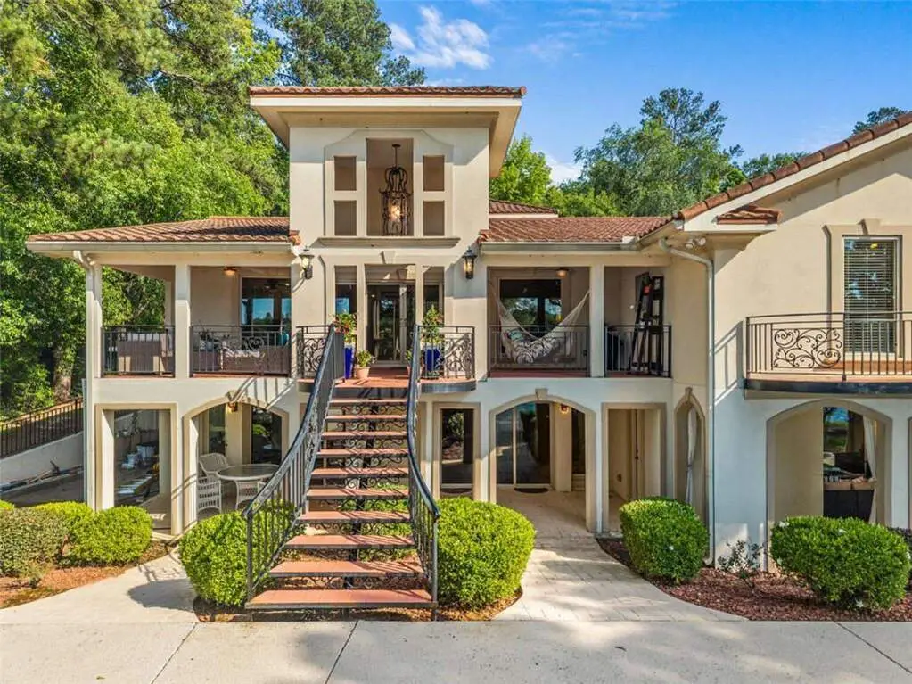 Mediterranean-Inspired Lakefront Retreat Designed for Seamless Indoor-Outdoor Living! On Approach, it's clear: this was never built to be ordinary. Nestled on a private point with sweeping lake views, this stunning estate shows off craftsmanship & practicality. Featuring an expansive three car garage, Metal Roof resembling Spanish Terracotta tiles, lush landscape & arched entry ways to start. Enter to a light filled foyer as you tour a floorplan with entertainment in mind. The kitchen is loaded with custom cabinetry, granite & stainless steel finishes. Opens to a dining space with expansive lake views. The formal living features a beautiful stone fireplace and french doors that lead to you a lakeside terrace with soaring ceilings. The primary suite is a showstopper and features a windowed seating area w/abundant lake views. The basement boasts a secondary den, pool room, bar, office & guest suite. Enjoy a saltwater pool & Double boathouse for play! To Top it off LOCATION LOCATION LOCATION! Forest Lake Village is just off 441 convenient to all amenities.