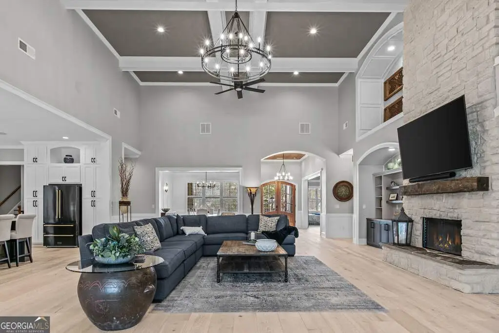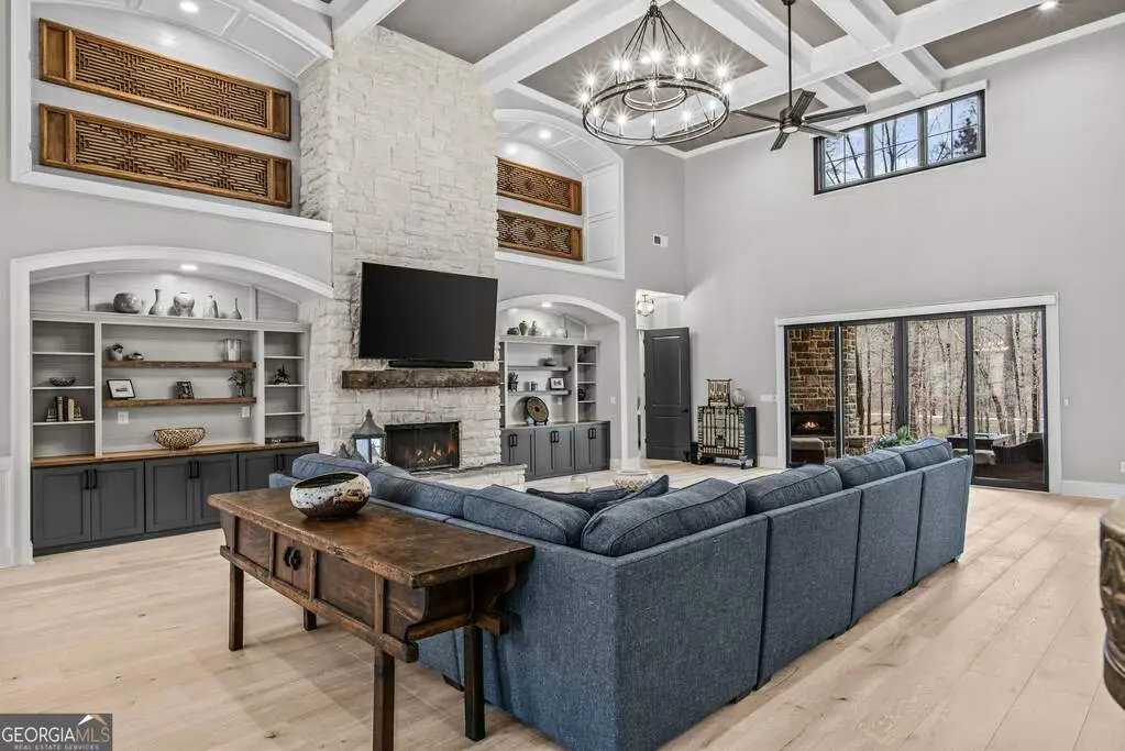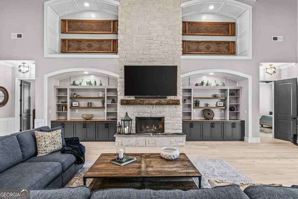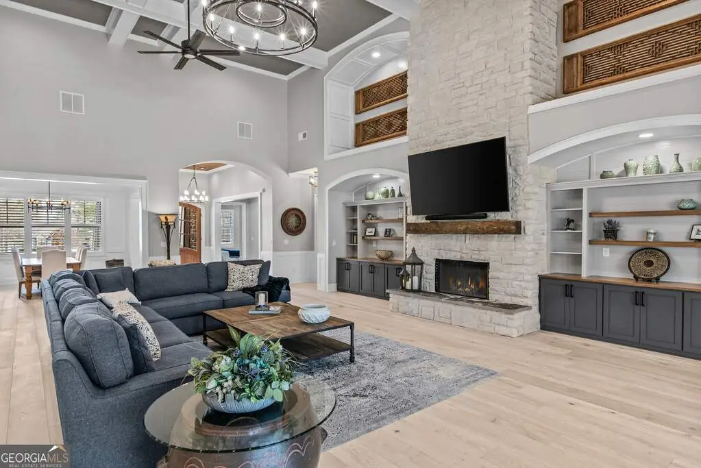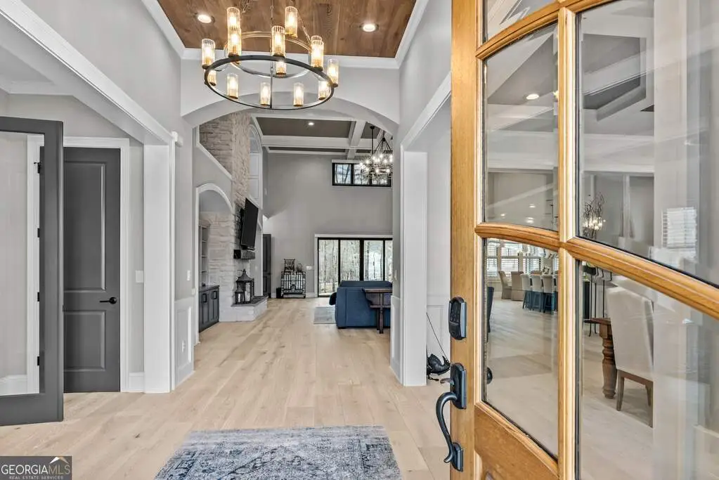 THIS EXQUISITE CUSTOM-BUILT HOME AWAITS YOU AT HARMONY BAY ON LAKE OCONEE! This nearly new home was constructed in 2023 on a .72-acre lake view lot with gorgeous year-round lake views, and your deeded assigned boat slip is just a few steps away. Designed to elevate your lifestyle, this sprawling one-story home boasts over 5, 900 sqft and is ideal for luxurious living and effortless entertaining. The attention to detail is evident in the quality of construction and the thoughtful selections and finishes throughout the house. The two-story Great Room has a floor-to-ceiling fireplace with custom built-ins and coffered ceilings. The spacious primary suite provides a luxurious bathroom with dual vanities, a glass-enclosed massaging shower & tub with waterfall tile, separate water closets, double custom closets, and a dressing area. Three additional guest suites are on the opposite side of the house, offering ultimate privacy and comfort. The chef's kitchen is adorned with stylish Z-Line black stainless-steel appliances, abundant custom cabinetry with pull-out cabinets for ease of use and storage, and gorgeous quartz countertops. The butler's pantry has a glass door entry with custom cabinets and shelving to store your countertop appliances and daily essentials. Additional features of this home include the study with glass French doors and a cozy fireplace, the dining room/living room with intricate ceiling details and custom lighting, a spacious laundry room with abundant cabinets and a utility sink, a half bath, and a mud room just off the garage. A large bonus room/guest suite over the garage is the perfect flex space to meet your desired needs. Additional storage is provided in the walk-in attic with upgraded foam insulation. This house would not be complete without outdoor living, and this one is sure to satisfy. The sliding glass doors in the great room open to a covered porch with multiple fans, a brick-faced fireplace, and a built-in grilling area. The 3-car garage has an electric car charging station, epoxy flooring, abundant custom storage cabinets, and a large utility closet. Harmony Bay is a Gated Community with a private boat ramp, assigned slips, and daily-use docks. Conveniently located to all local amenities. The majority of the furniture is negotiable on a separate bill of sale. The seller also owns a lot in Reynolds with a golf membership and is willing to sell separately. Call us today to schedule your private tour of this amazing property!!