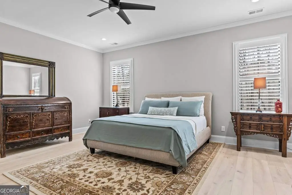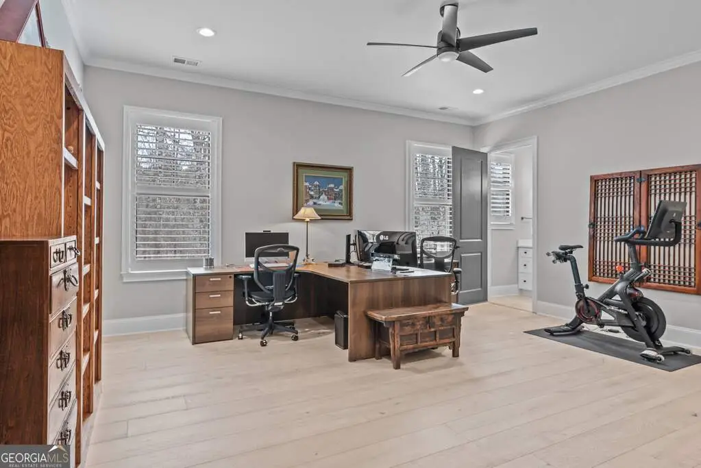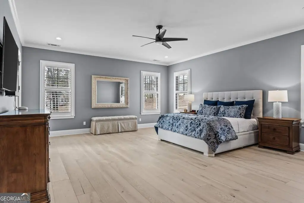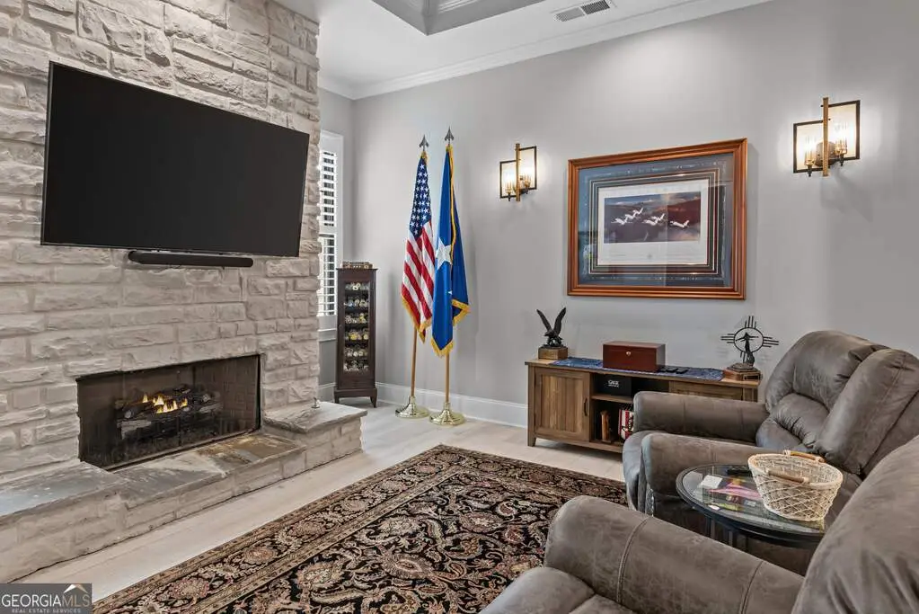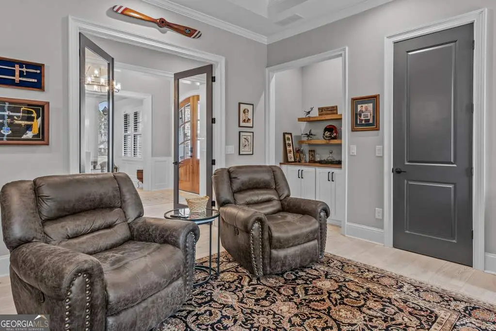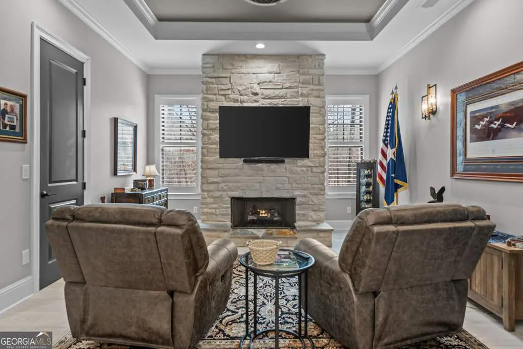 THIS EXQUISITE CUSTOM-BUILT HOME AWAITS YOU AT HARMONY BAY ON LAKE OCONEE! This nearly new home was constructed in 2023 on a .72-acre lake view lot with gorgeous year-round lake views, and your deeded assigned boat slip is just a few steps away. Designed to elevate your lifestyle, this sprawling one-story home boasts over 5, 900 sqft and is ideal for luxurious living and effortless entertaining. The attention to detail is evident in the quality of construction and the thoughtful selections and finishes throughout the house. The two-story Great Room has a floor-to-ceiling fireplace with custom built-ins and coffered ceilings. The spacious primary suite provides a luxurious bathroom with dual vanities, a glass-enclosed massaging shower & tub with waterfall tile, separate water closets, double custom closets, and a dressing area. Three additional guest suites are on the opposite side of the house, offering ultimate privacy and comfort. The chef's kitchen is adorned with stylish Z-Line black stainless-steel appliances, abundant custom cabinetry with pull-out cabinets for ease of use and storage, and gorgeous quartz countertops. The butler's pantry has a glass door entry with custom cabinets and shelving to store your countertop appliances and daily essentials. Additional features of this home include the study with glass French doors and a cozy fireplace, the dining room/living room with intricate ceiling details and custom lighting, a spacious laundry room with abundant cabinets and a utility sink, a half bath, and a mud room just off the garage. A large bonus room/guest suite over the garage is the perfect flex space to meet your desired needs. Additional storage is provided in the walk-in attic with upgraded foam insulation. This house would not be complete without outdoor living, and this one is sure to satisfy. The sliding glass doors in the great room open to a covered porch with multiple fans, a brick-faced fireplace, and a built-in grilling area. The 3-car garage has an electric car charging station, epoxy flooring, abundant custom storage cabinets, and a large utility closet. Harmony Bay is a Gated Community with a private boat ramp, assigned slips, and daily-use docks. Conveniently located to all local amenities. The majority of the furniture is negotiable on a separate bill of sale. The seller also owns a lot in Reynolds with a golf membership and is willing to sell separately. Call us today to schedule your private tour of this amazing property!!