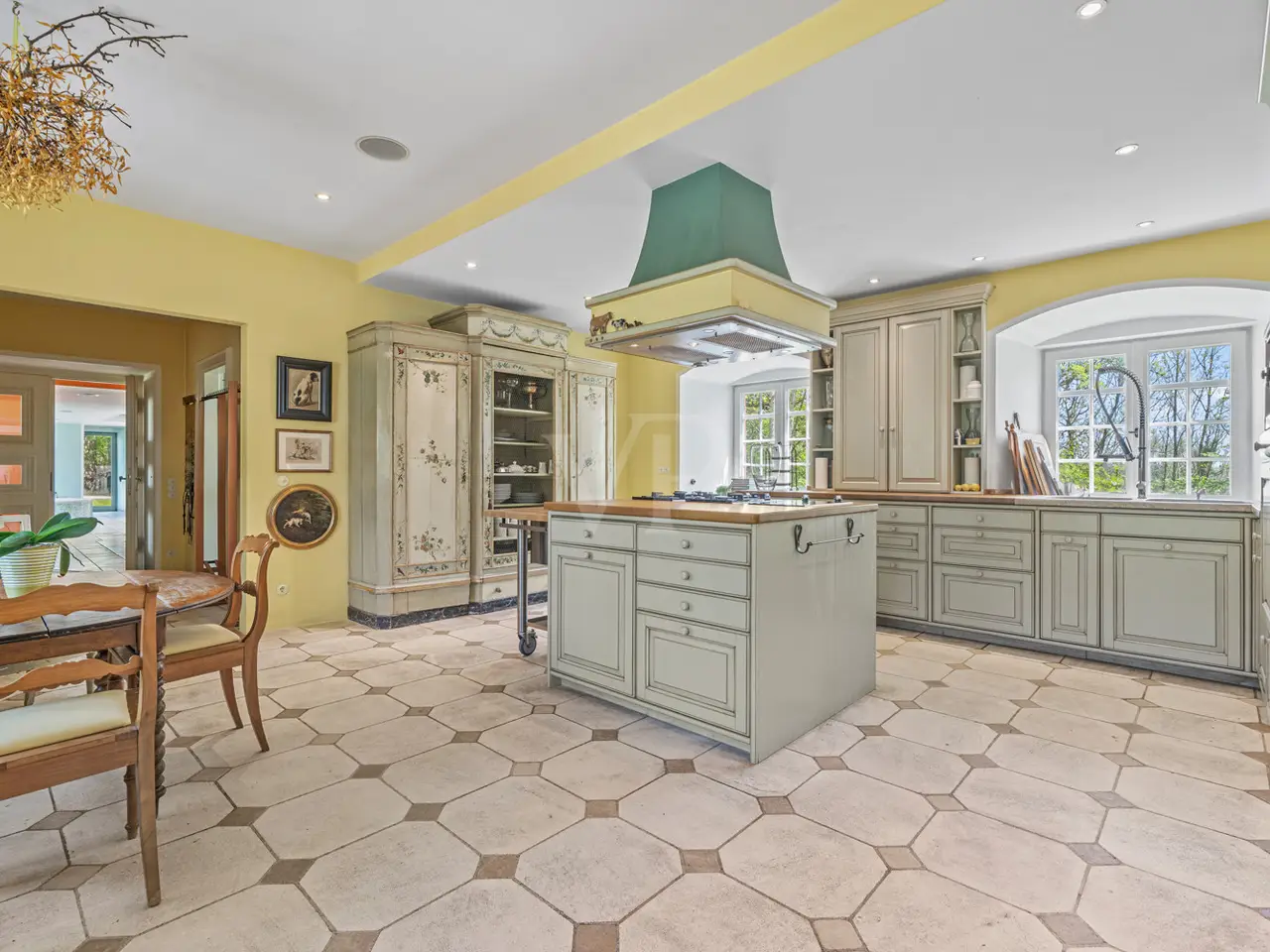 Welcome to an incomparable real estate offer that represents the pinnacle of luxury and exclusivity: a magnificent castle with an adjoining forester's house, surrounded by a variety of high-quality outbuildings and first-class equestrian facilities. The castle and forester's house At the heart of the property is the impressive castle from 1609, which is characterized by its majestic architecture and historical elegance. The main apartment extends over a generous approx. 850 square meters and offers the highest level of living comfort. A private wellness area with sauna, whirlpool and an outdoor pool (approx. 9.5 mx 4.5 m) invite you to relax. The connection to the underground car park, which offers space for 14 vehicles, ensures maximum convenience. In addition to the main apartment, there are two exquisite maisonette apartments in the castle, which offer ideal retreats with a living space of approx. 270 square meters and approx. 174 square meters. Manager's house The manager's house on the property combines functionality and living comfort. It includes an office, a workshop and a spacious apartment with around 140 square meters of living space, which provides stylish accommodation for the property manager. Semi-detached house for horse groomers A charming semi-detached house is available to accommodate the horse grooming staff. The two residential units offer enough space and comfort with around 123 square meters and around 75 square meters. Equestrian facilities A paradise for horse lovers: the extensive stables and paddocks, complemented by a riding hall in tournament dimensions, leave nothing to be desired. Here you can enjoy your passion for equestrian sports to the fullest. Other facilities The property also has various storage buildings and carports that offer additional functionality and storage space. A picturesque chapel from 1616 completes the picture of this unique property and offers a quiet place for reflection. Conclusion This extraordinary castle property offers a unique combination of luxurious living space, first-class equestrian facilities and extensive outbuildings. It is the perfect place for all those who are looking for something special and place the highest value on exclusivity and comfort. Be enchanted by the historic splendor and modern amenities of this property and discover your new home. Contact us today for more information and to arrange a viewing. Position The exclusive castle estate is located in one of the most sought-after regions in Germany, nestled between Stuttgart and Lake Constance. This picturesque area offers an ideal combination of natural idyll and excellent accessibility to urban centers. The region between Ulm and Ravensburg impresses with its scenic diversity and numerous leisure opportunities. Extensive forests, rolling hills and picturesque valleys stretch out here, inviting you to take long walks, hikes and bike tours. The nearby Lake Constance offers a wide range of water sports activities such as sailing, swimming and boat trips, while in winter the Swabian Alb and the Allgäu offer excellent conditions for winter sports enthusiasts. Golf lovers will get their money's worth in nearby Bad Waldsee. The renowned golf course offers challenging fairways and greens amidst a breathtaking natural backdrop. Here you can perfect your golf skills while enjoying the peace and beauty of the surroundings. Excellent transport links and helipad The property benefits from excellent transport links. The A7 and A8 motorways provide fast connections to Stuttgart, Ulm and towards Lake Constance. There is also a freely usable helipad right next to the property. This exclusive advantage ensures a quick and convenient arrival by helicopter, whether for private or business purposes. The region also has a lot to offer in terms of culture and cuisine: numerous historic towns such as Ulm and Ravensburg invite you to explore. Stroll through medieval alleys, visit museums and galleries or enjoy regional specialties in the numerous first-class restaurants and traditional inns. The location of this castle estate combines the best of nature, leisure and luxury. Whether you appreciate the tranquility of the rural surroundings, take advantage of the numerous leisure opportunities or make use of the excellent connections and the exclusive helipad - here you will find the perfect balance between relaxation and activity. Discover the diversity and quality of life of this unique region and make this exceptional property your new home. Furnishing Unique castle complex consisting of: 1) Main apartment in the castle - built around 1609; renovated in 1999 with representative living and dining rooms, seven bedrooms, three bathrooms (approx. 850 m²) Highlights: - Wellness area and outdoor pool approx. 9.5 mx 4.5 m - Passenger elevator - Dumbwaiter - Open-plan kitchen-living room - Three fireplaces - Direct access to the underground car park Forsthaus (side wing of the castle) 2) Maisonette apartment on the ground floor / ground floor - built around 1620; renovated in 1999 with representative living and dining rooms, three bedrooms, two bathrooms (approx. 270 m²) Highlights: - High-quality fitted kitchen - Additional kitchenette - Two fireplaces - Own vaulted cellar - Direct access to the underground car park 3) Maisonette apartment on the first and second top floor - built around 1620; Renovation in 1999 with representative living and dining rooms, two bedrooms, two bathrooms (approx. 174 m²) Highlights: - high-quality fitted kitchen - open gallery in the second attic floor - fireplace Manager's house office, workshop, garages, social rooms (approx. 137 m²) 4) Manager's maisonette on the first floor / top floor - built approx. 1960; Renovation in 1999 with high-quality and bright living and dining rooms, 2 bedrooms, 2 bathrooms (approx. 140 m²) - fireplace - fitted kitchen Horse groomer's semi-detached house 5) Semi-detached house (WE 1) - built around 1999 with high-quality